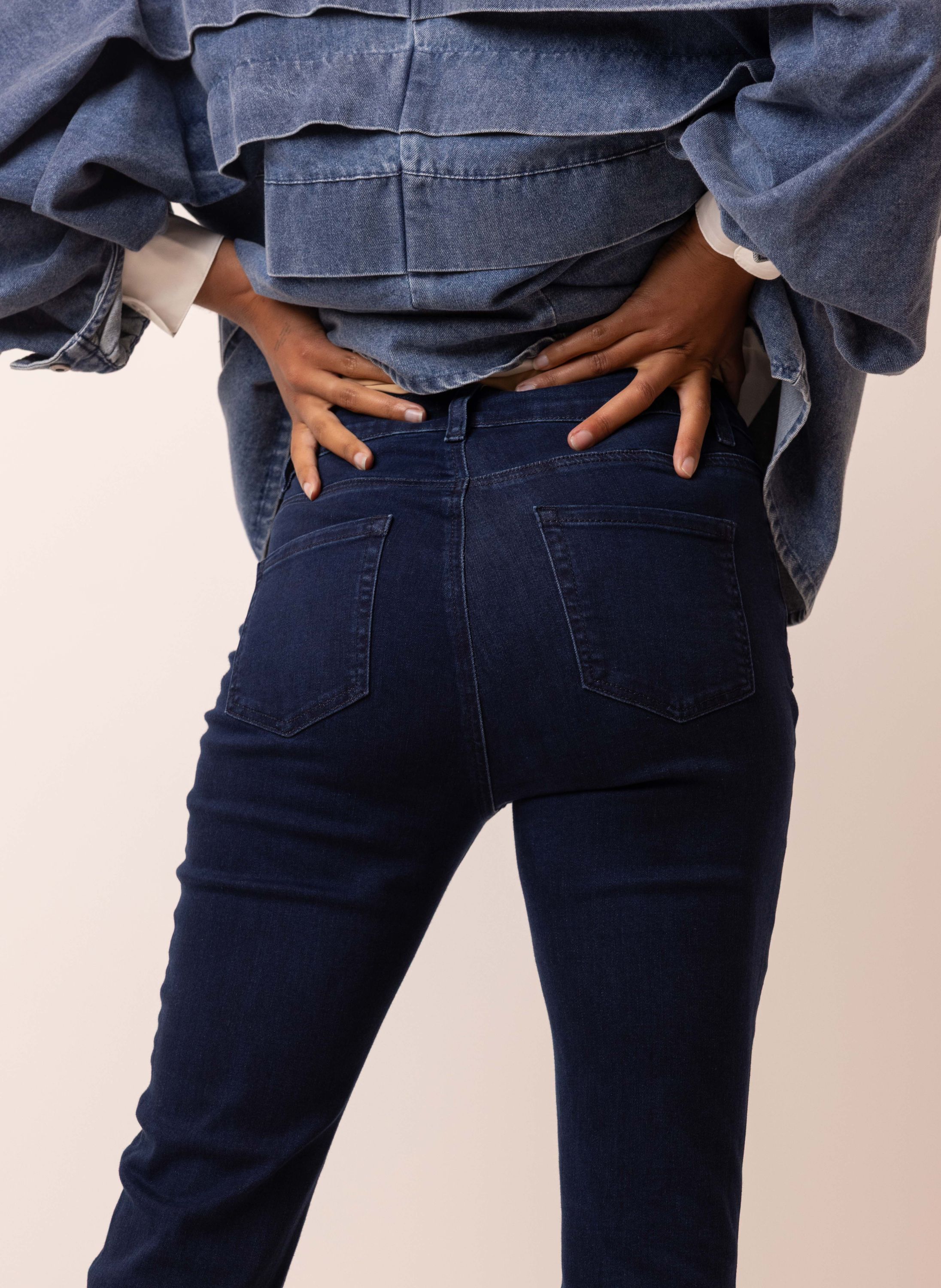 5-pocket high waist flared fit denim jeans met rits- en knoopsluiting in lengtemaat 32. Deze jeans is ideaal voor vrouwen met een lengte tussen de 1.70 en 1.75 meter. Deze jeans is ook verkrijgbaar in lengtemaat 30, lengtemaat 34 en lengtemaat 36.