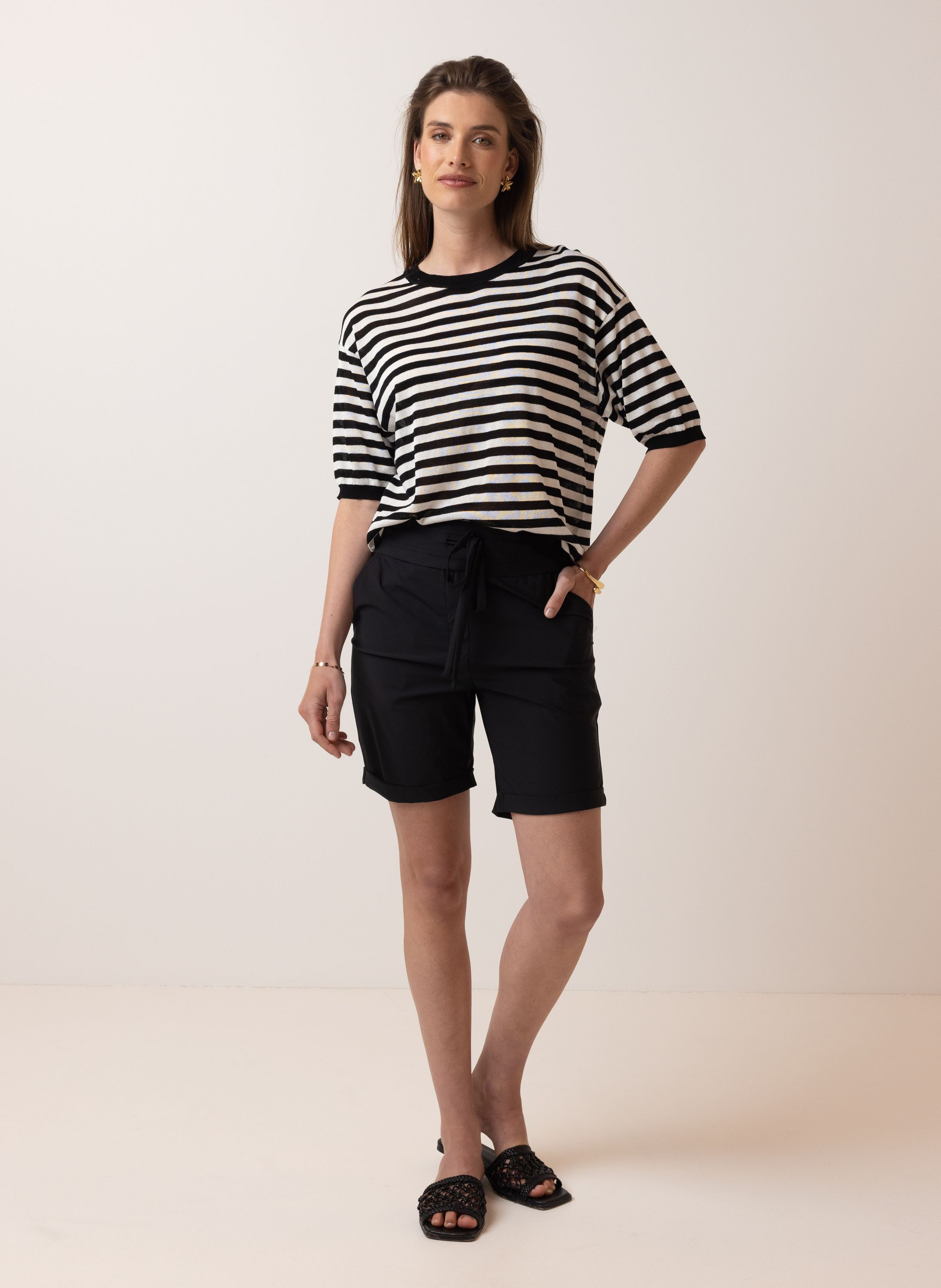 Deze korte broek met hoge taille is voorzien van een trekkoord, steekzakken en omslag aan de broekspijpen. De stretchy stof zorgt voor extra draagcomfort.
