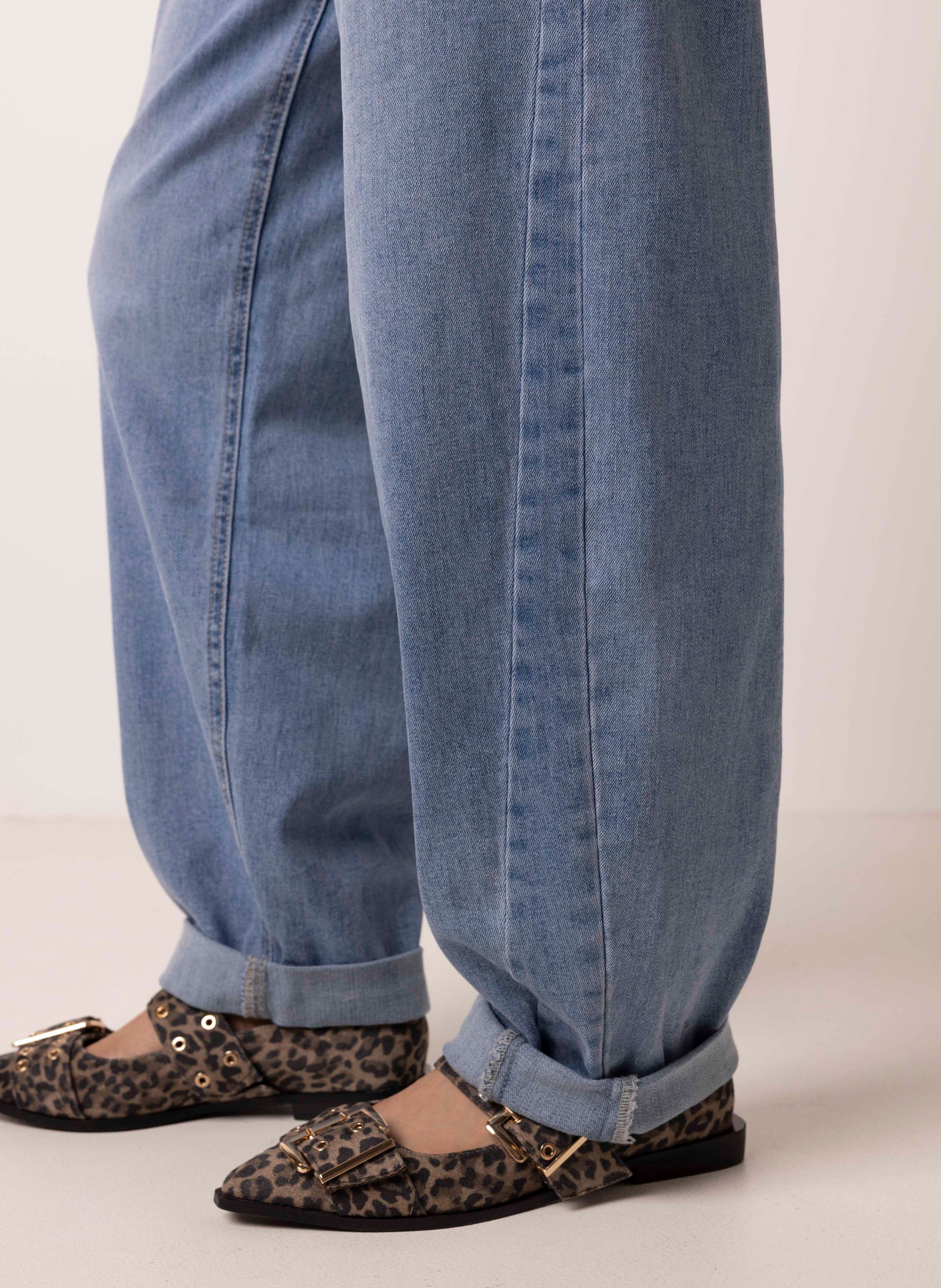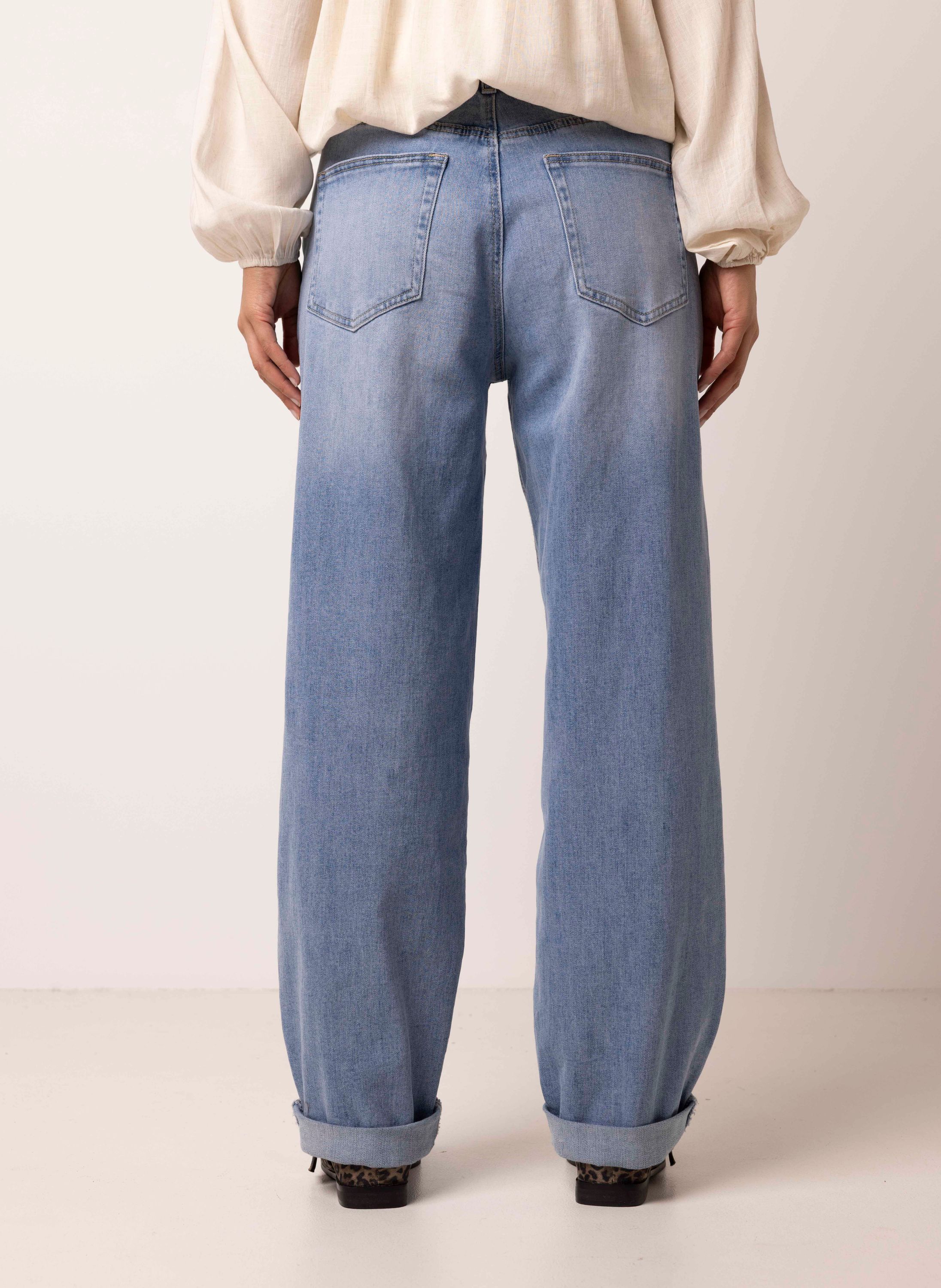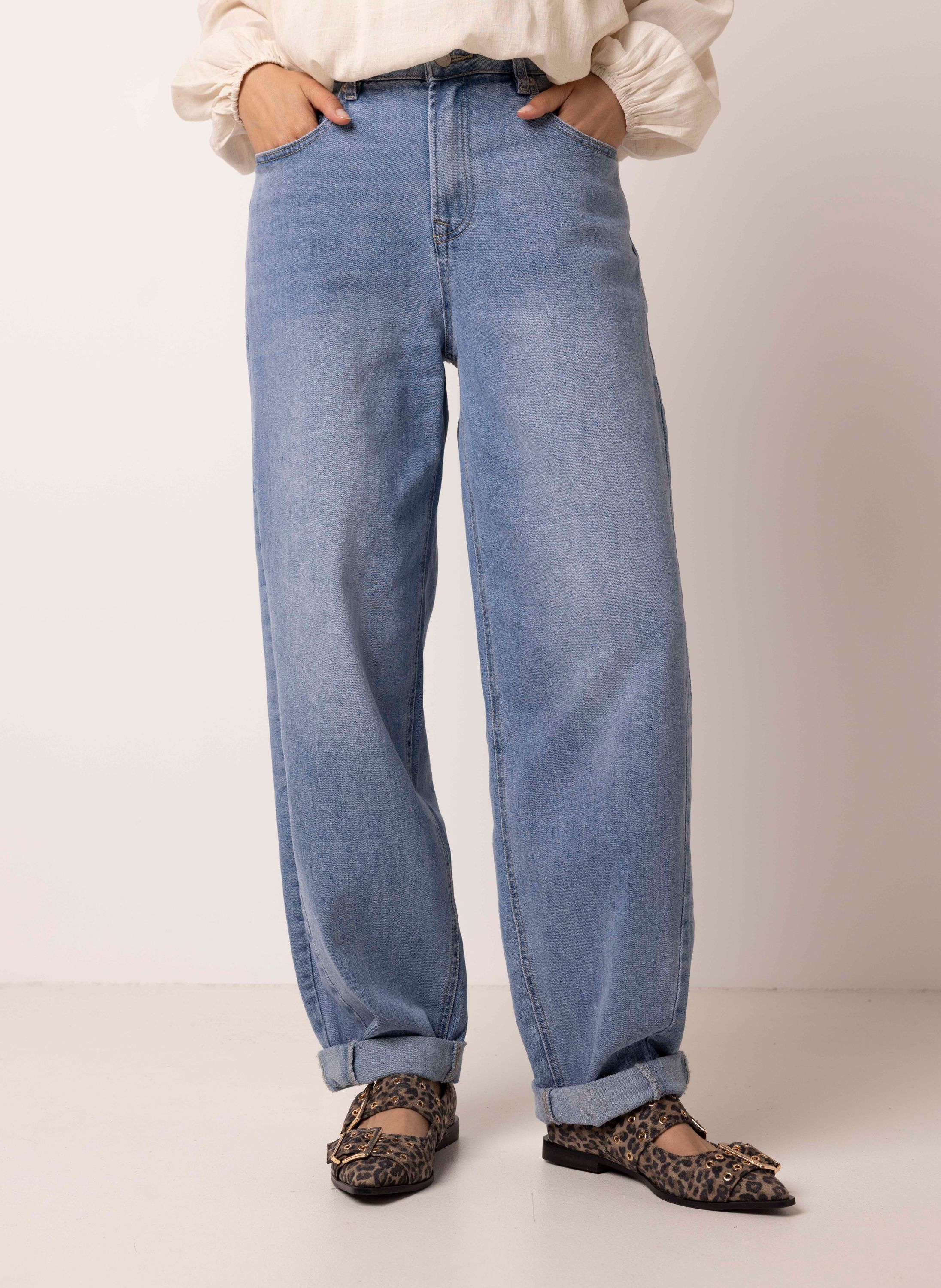 High waist barrel fit jeans van een stevige maar zachte denim. De afgeronde deelnaad aan de voorzijde benadrukt de barrel pijp extra en geeft ook een slank effect. Combineer deze jeans met sneakers voor een sportieve look of combineer met een laars of sandaal met hakje voor een vrouwelijk stoere look.