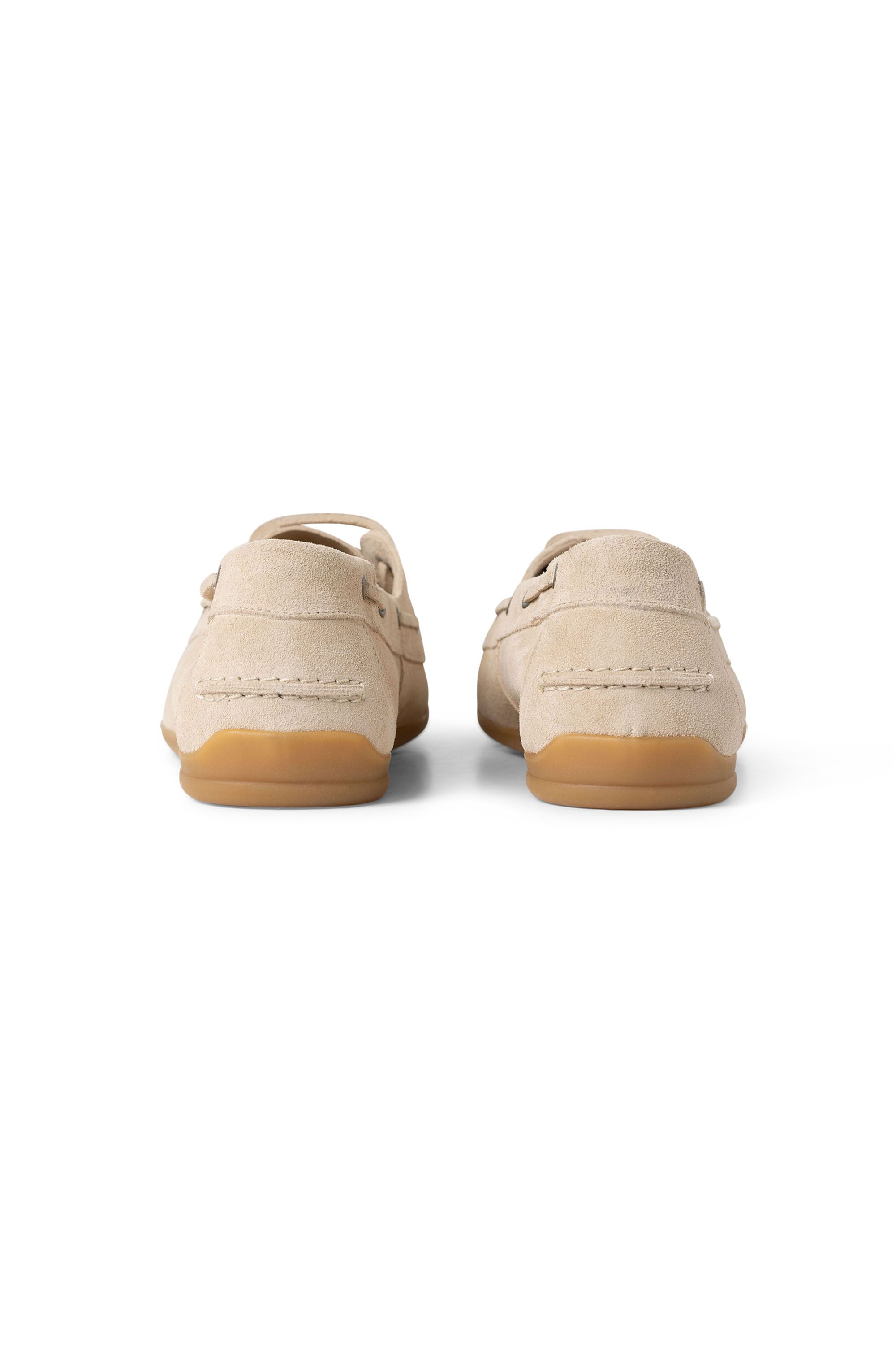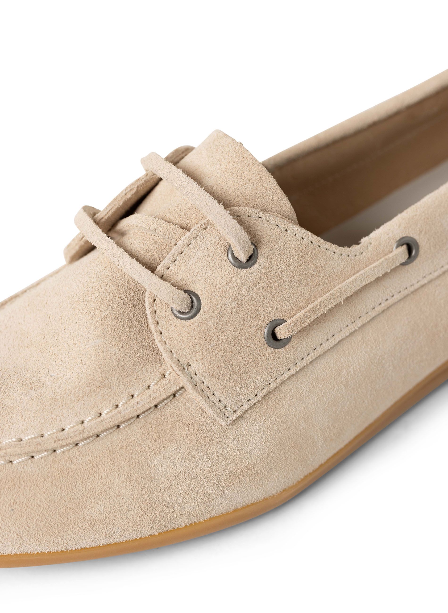 Bootschoen van suède met een flexibele zool en een comfortabele pasvorm. Deze suède schoen vormt zich na verloop van tijd naar je voet. Omdat suède van nature iets soepeler is dan gewoon leer, raden we aan om de schoenen eerst ongeveer 15 minuten binnenshuis te dragen. Zo krijgt het materiaal de kans zich aan te passen en zul je merken dat de pasvorm snel comfortabel aanvoelt. Ideaal voor een ontspannen maar stijlvolle look.
