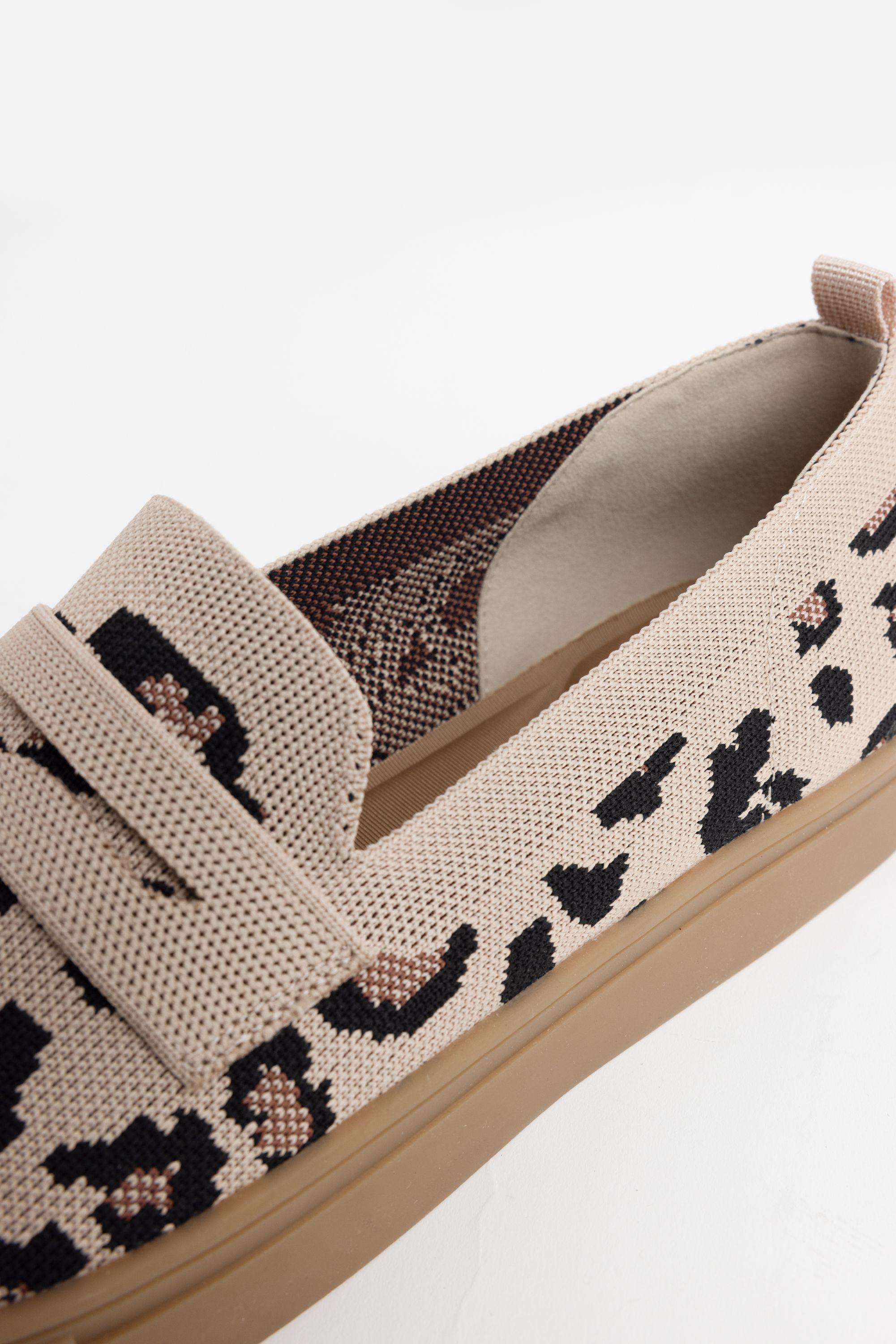 Beige instapsneaker met luipaardprint