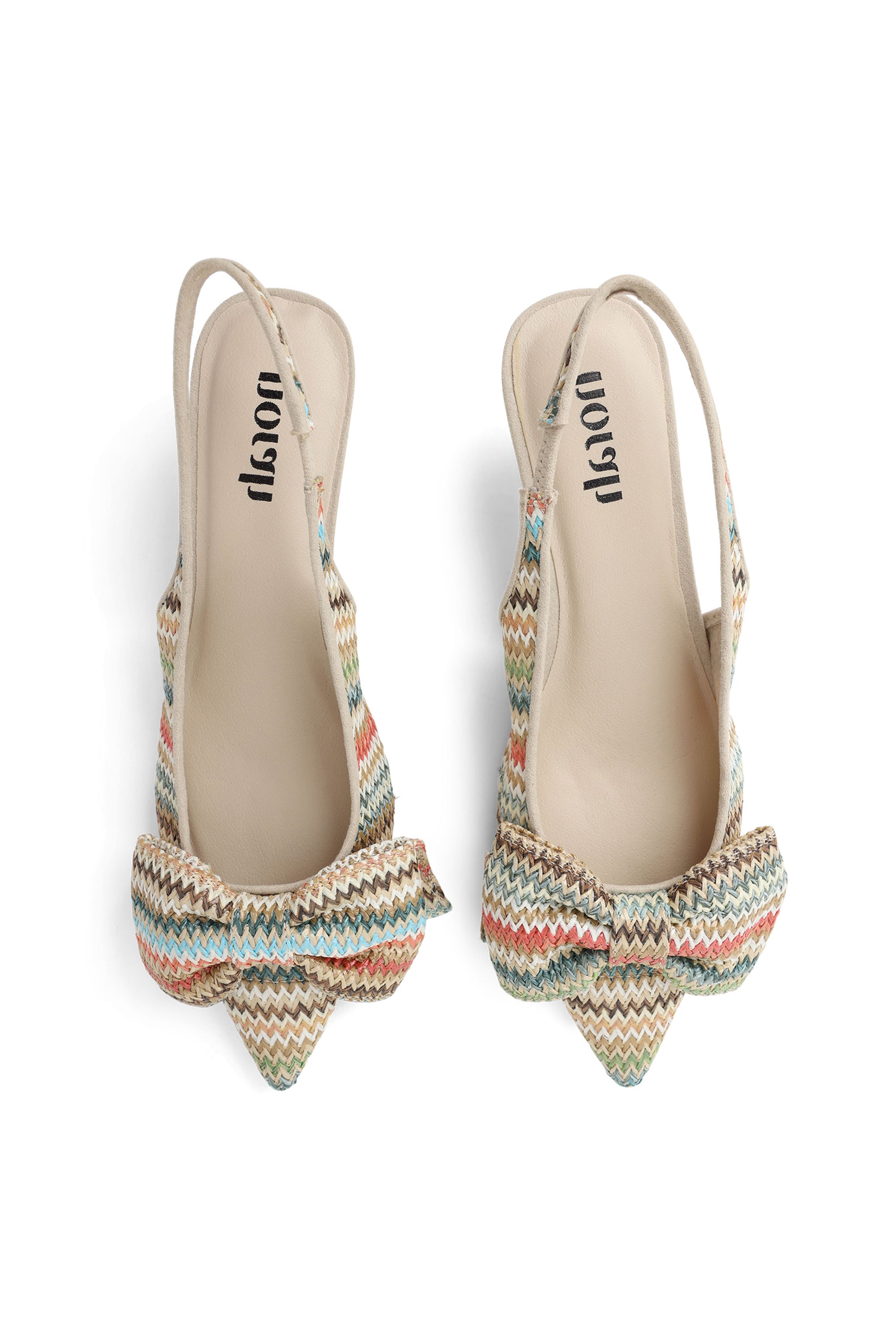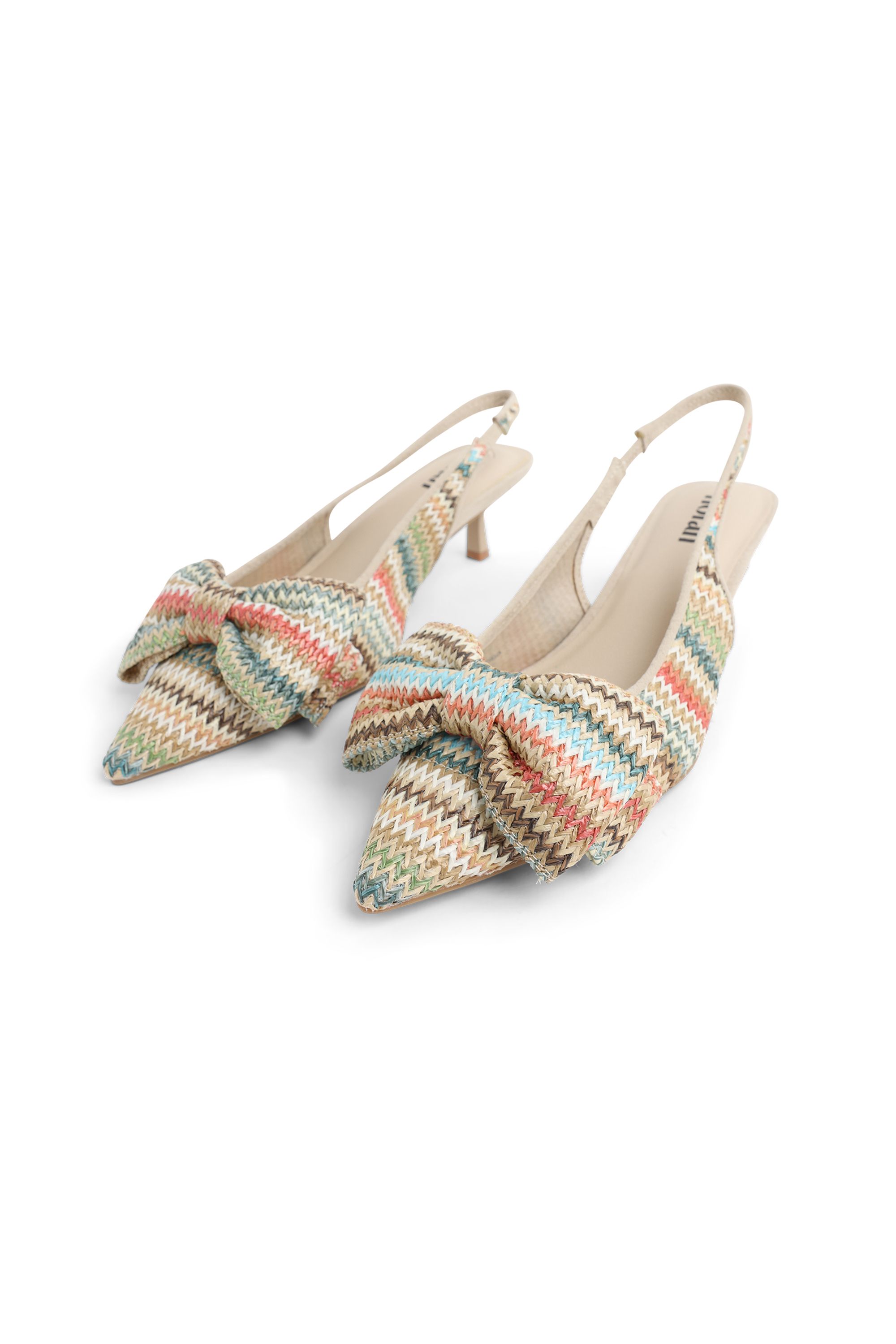 Deze slingback heeft een puntige neus, een gevlochten band met knoopdetail en een elegante lage hak. De open hielband zorgt voor een verfijnde uitstraling en een comfortabele pasvorm, waardoor dit model perfect is voor zowel een casual als een geklede look.