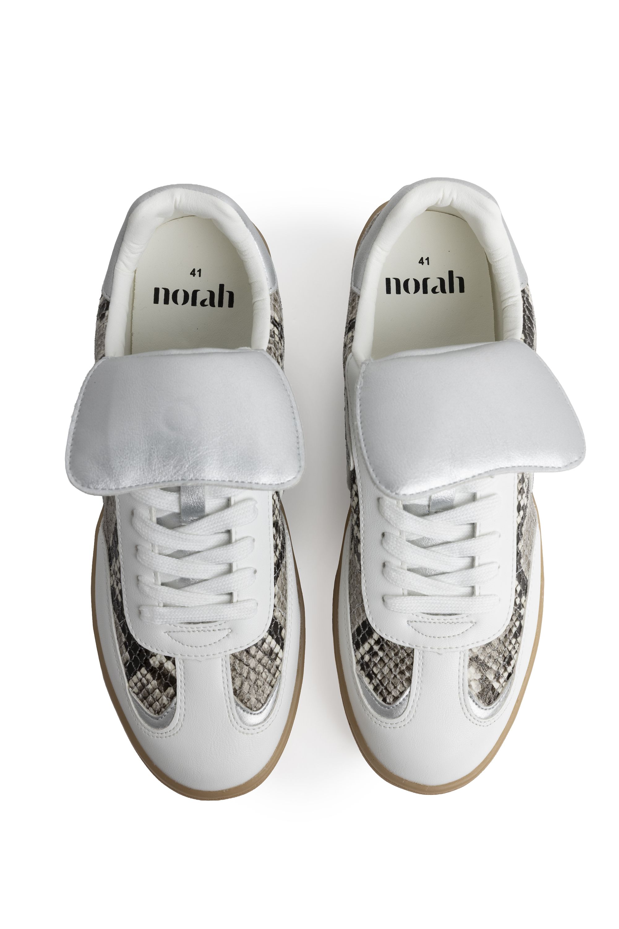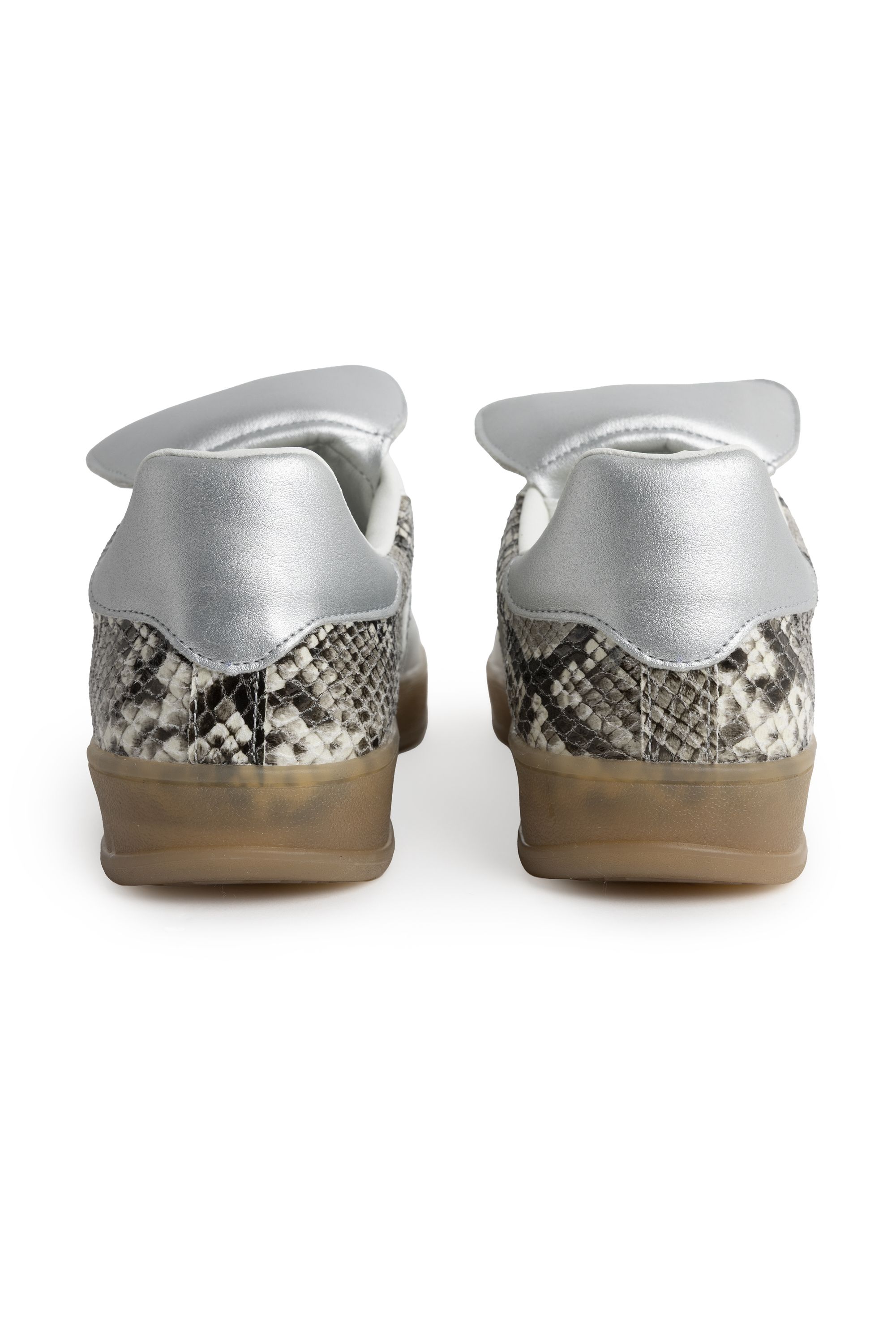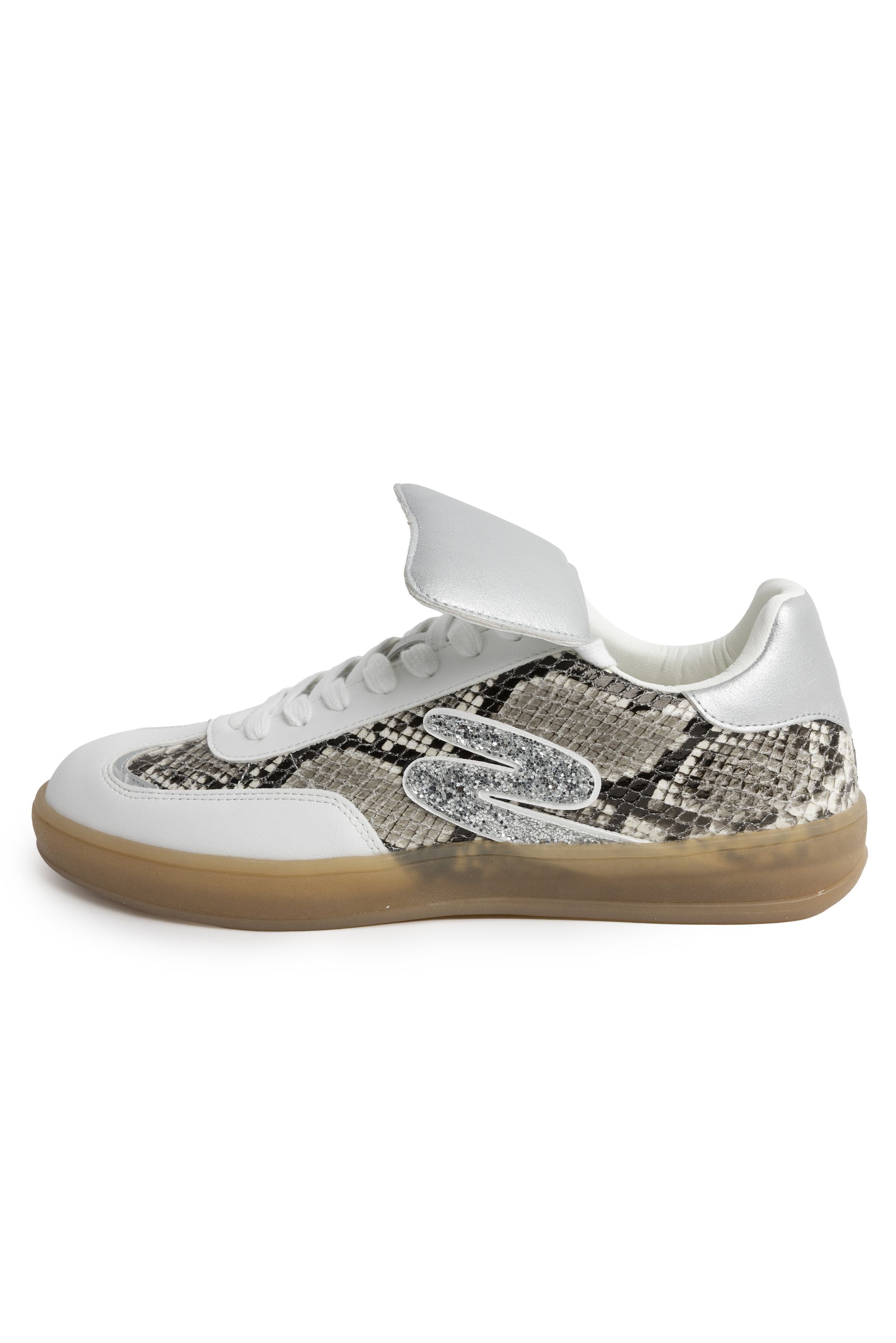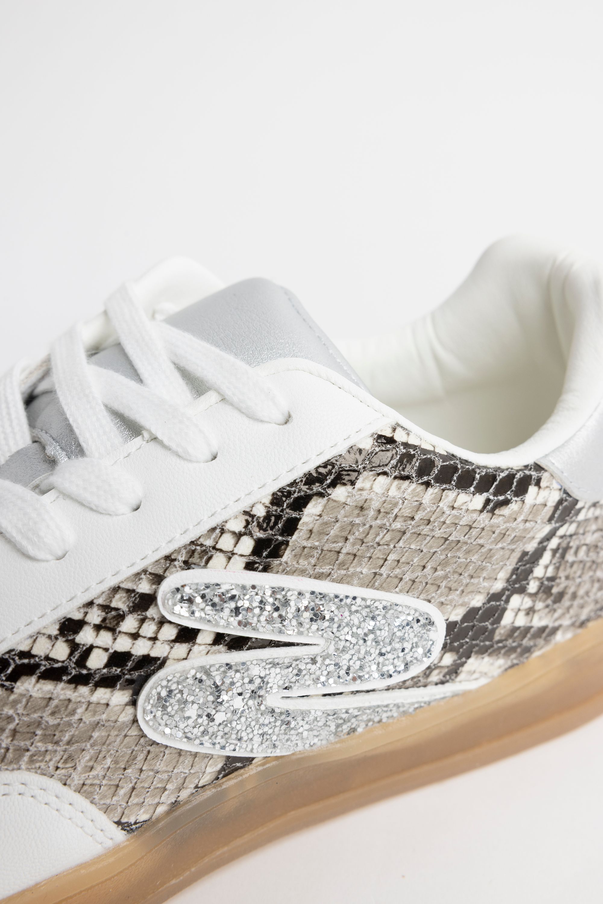 Deze sneaker is uitgevoerd met een slangenprint en heeft een sportief, laag model. De comfortabele zool en vetersluiting zorgen voor prettig draagcomfort, terwijl de print de sneaker een modieuze en vrouwelijke uitstraling geeft. Makkelijk te combineren met zowel jeans als jurken voor een casual look. Let op: deze sneaker valt één maat groter en smal.