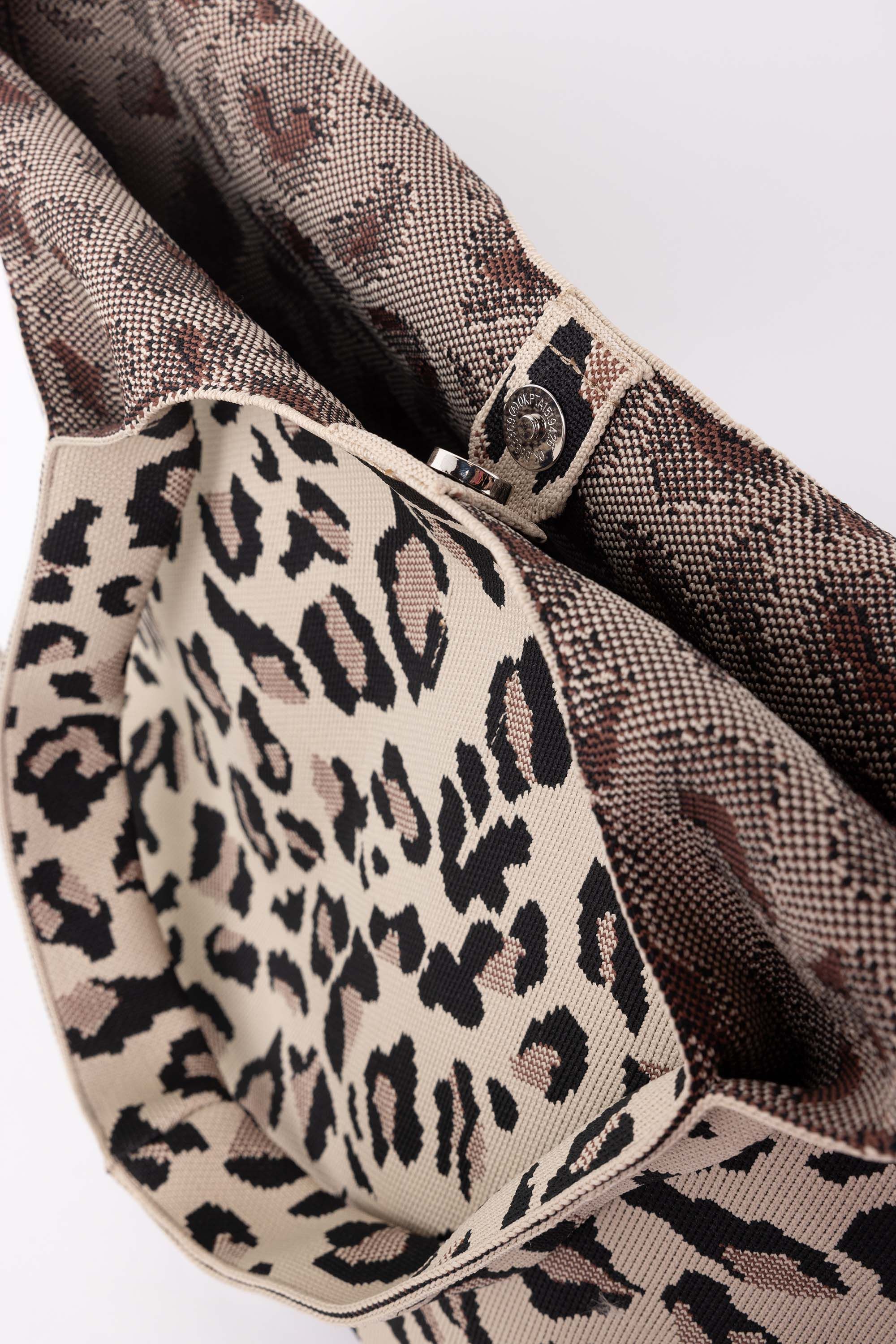 Deze tas is uitgevoerd in een stevige stof met luipaardprint en heeft twee hengsels. Het ruime model maakt het een ideale tas voor dagelijks gebruik met een trendy uitstraling. Afmetingen: Hoogte: 30 cm, Breedte: 48 cm, Diepte: 13 cm.