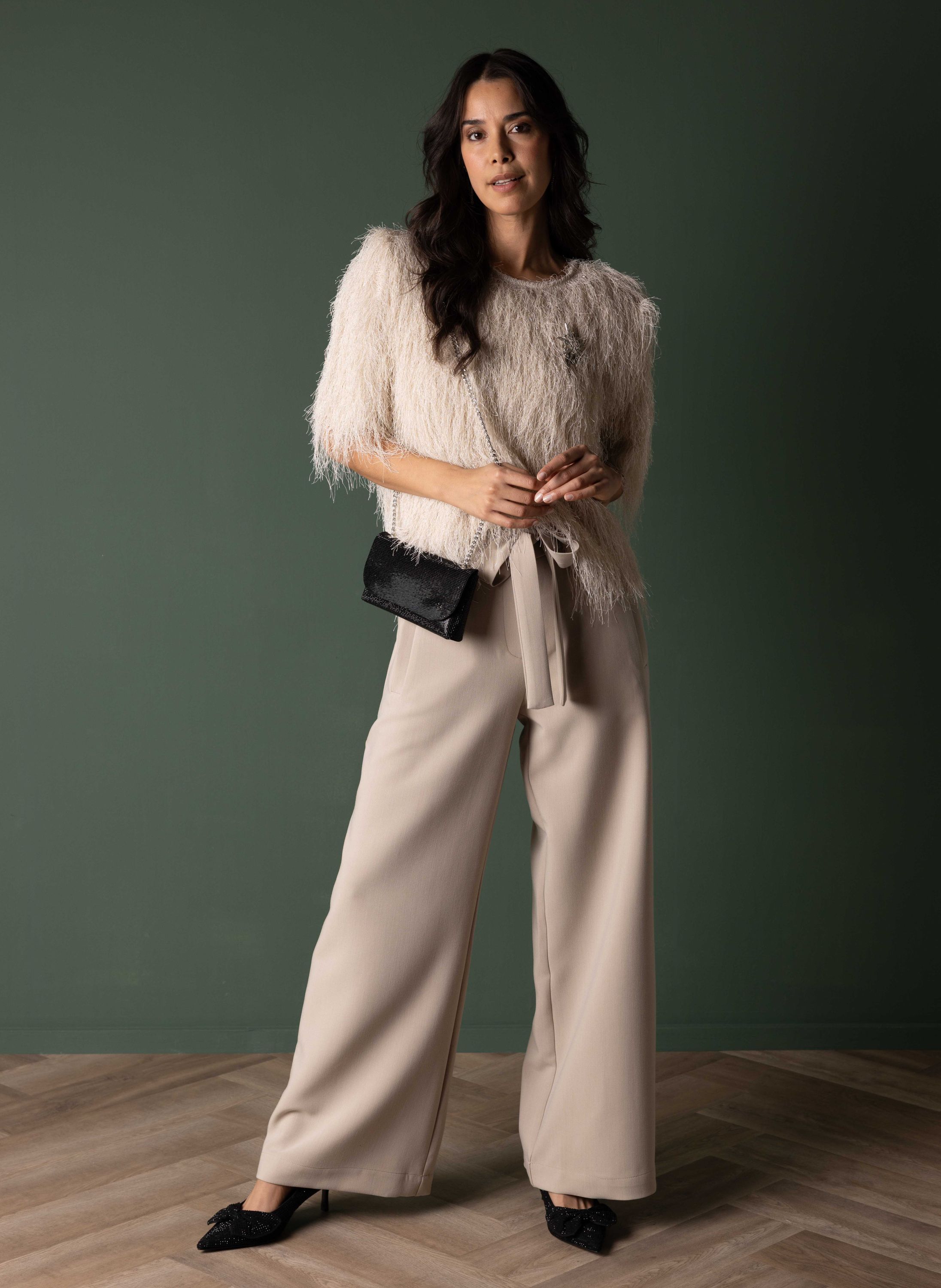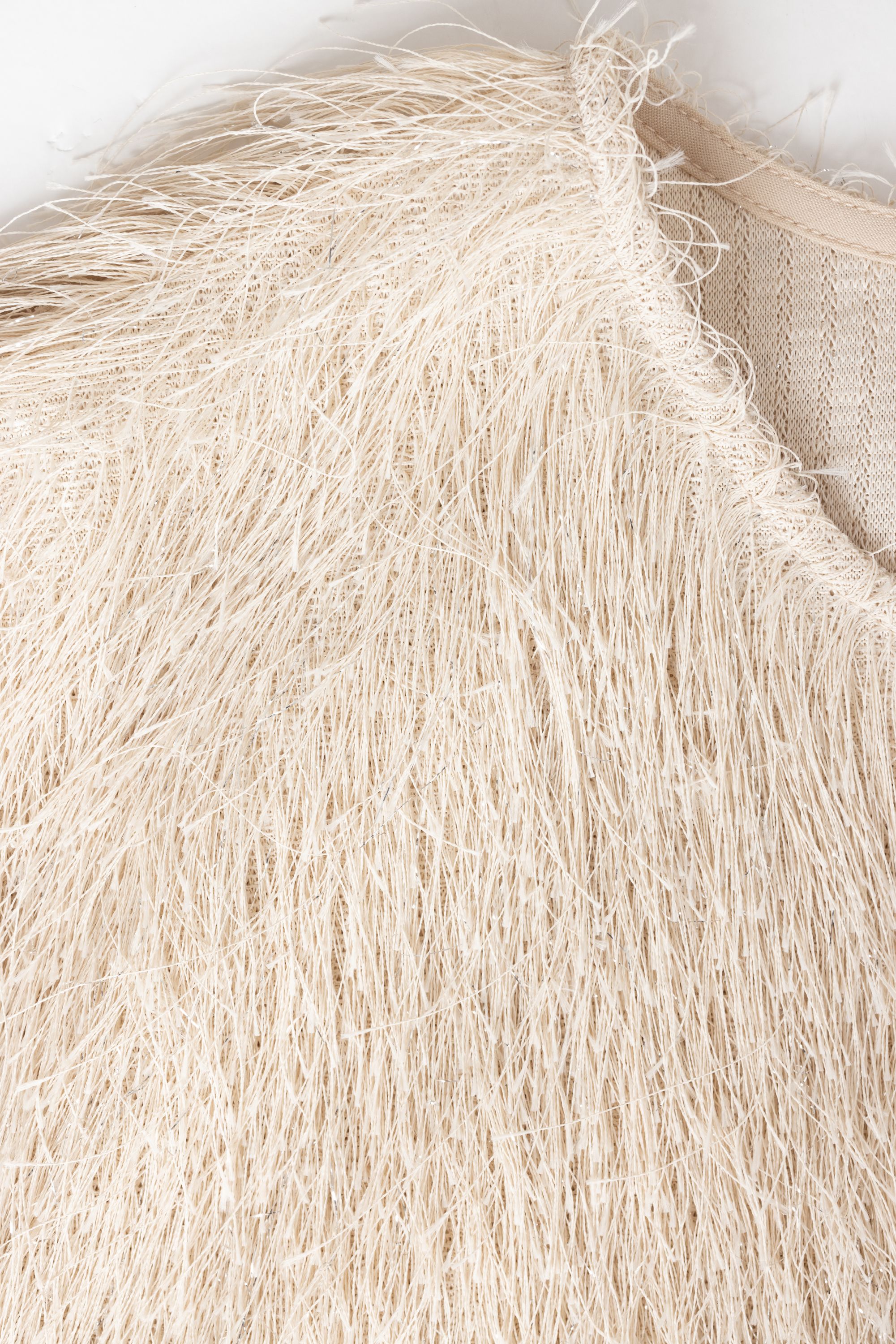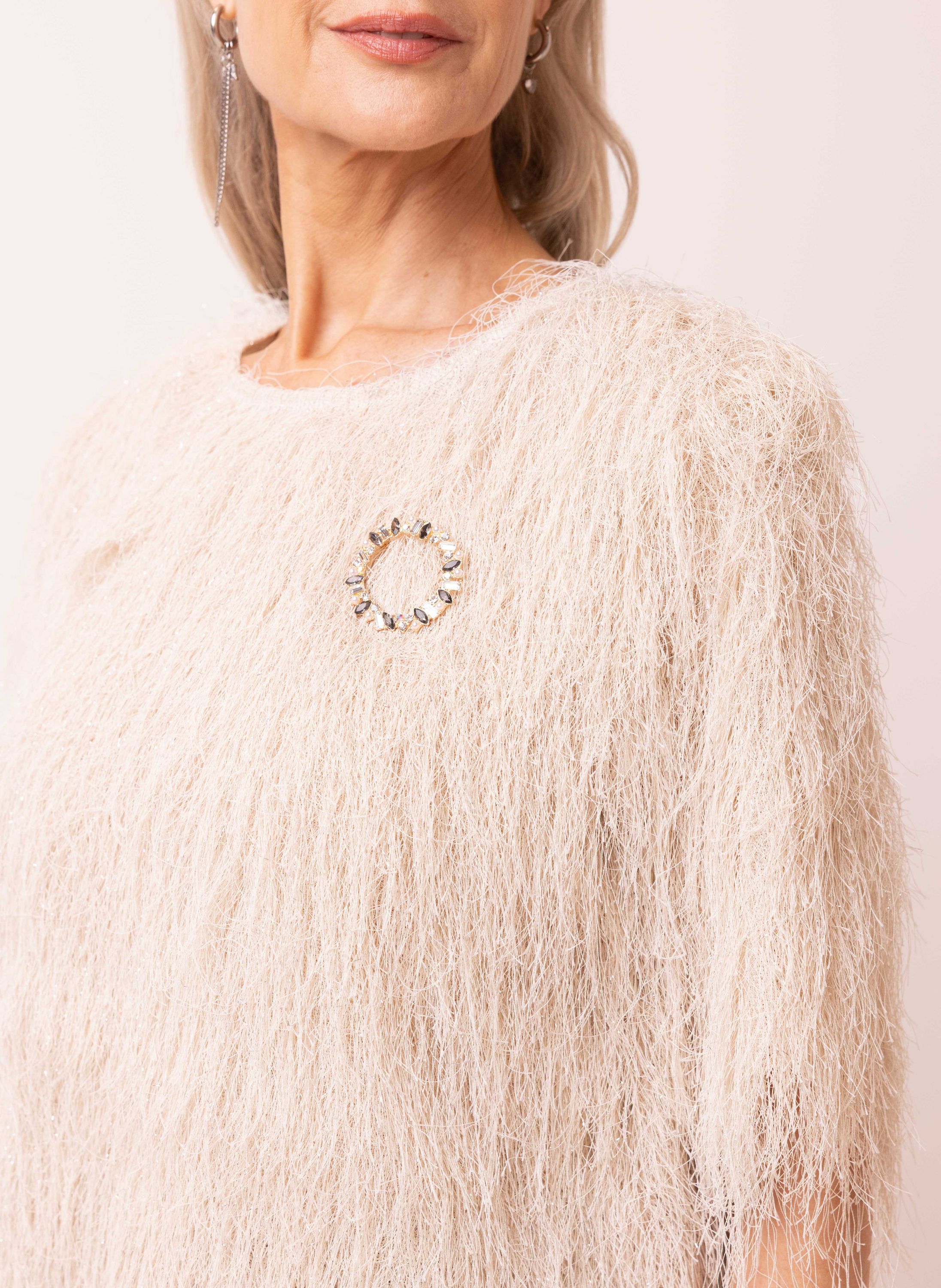 Deze feestelijke top met ronde hals, halflange mouwen, franjes en zilverkleurige lurex zorgt voor een sprankelende uitstraling. Let op: het waslabel in de top is niet correct. Wij adviseren de volgende wasinstructies: Doe het item binnsnste buiten in een waszakje. Was hem vervolgens p een fijn wasprogreamma van maximaal 30 graden en 600 toeren. Hang het item na het wassen op om hem te laten drogen. Strijk het item niet.