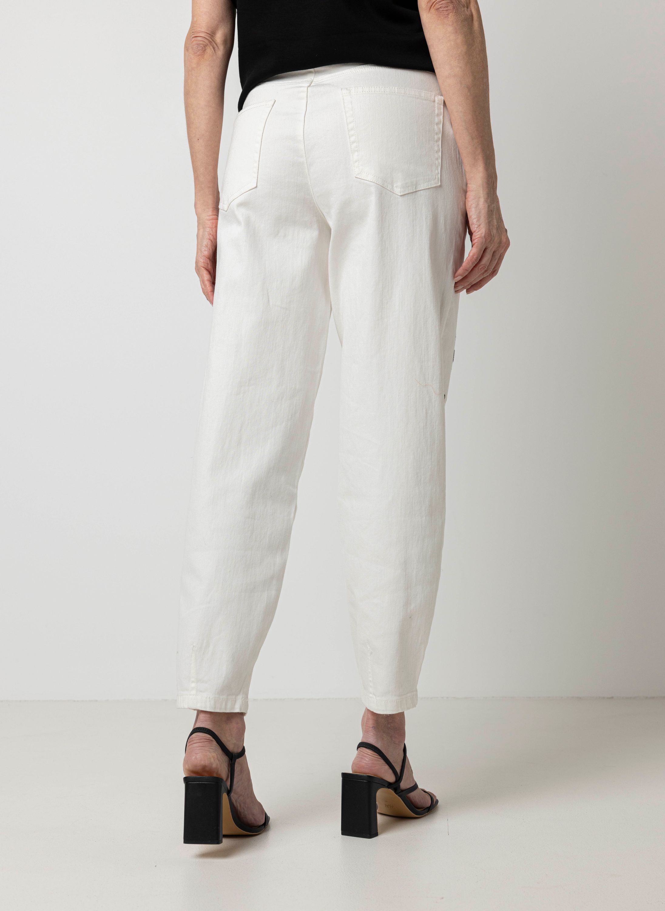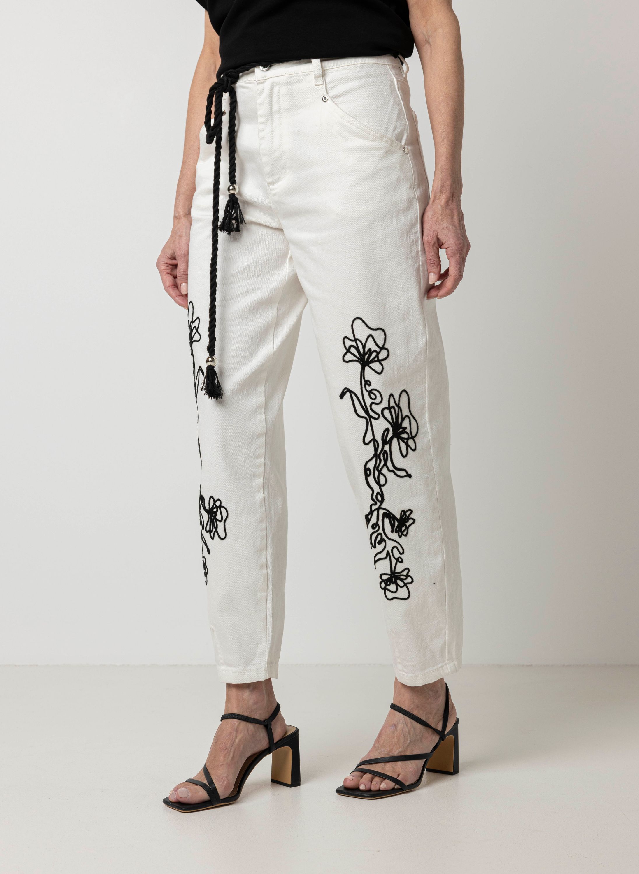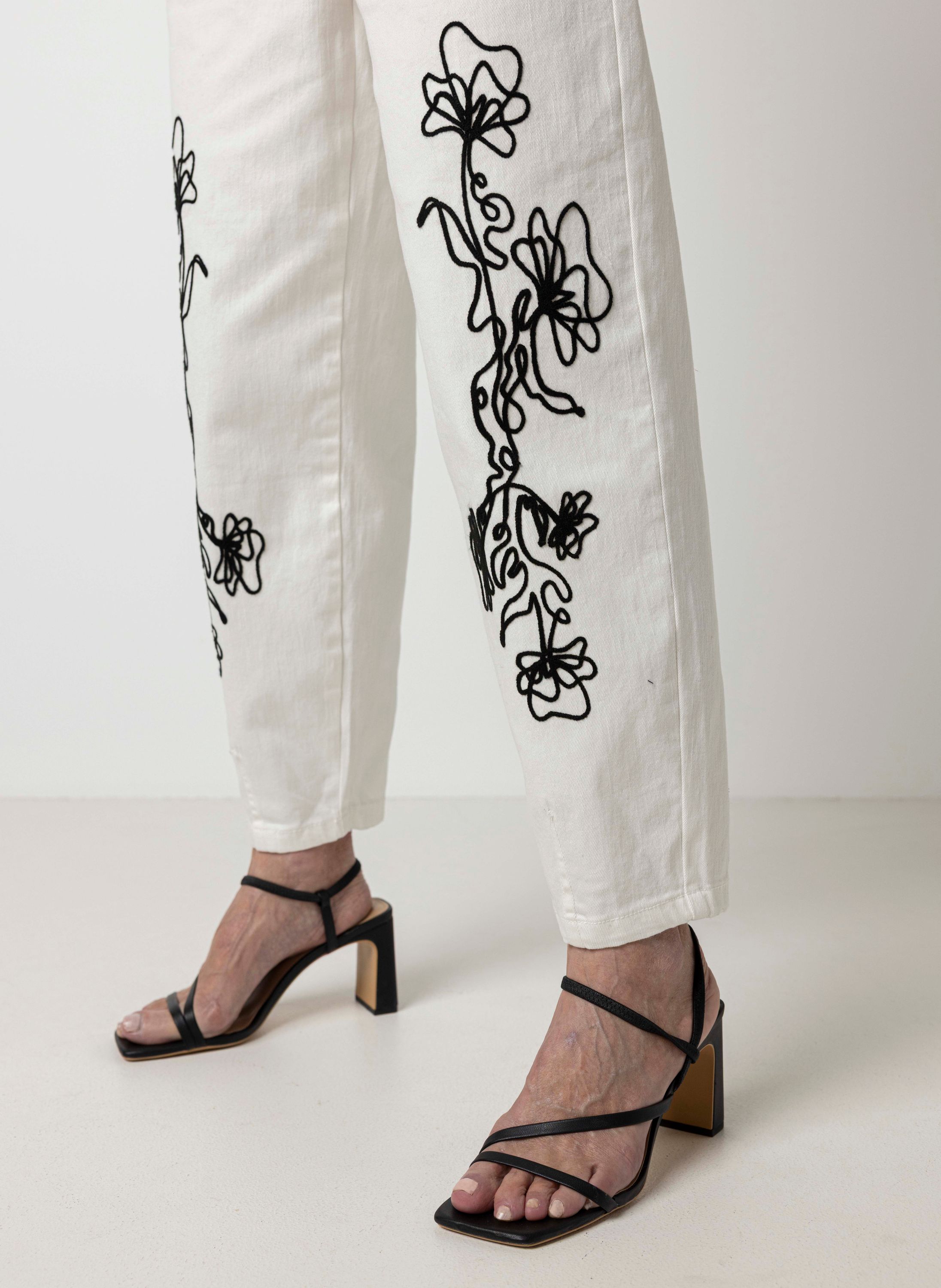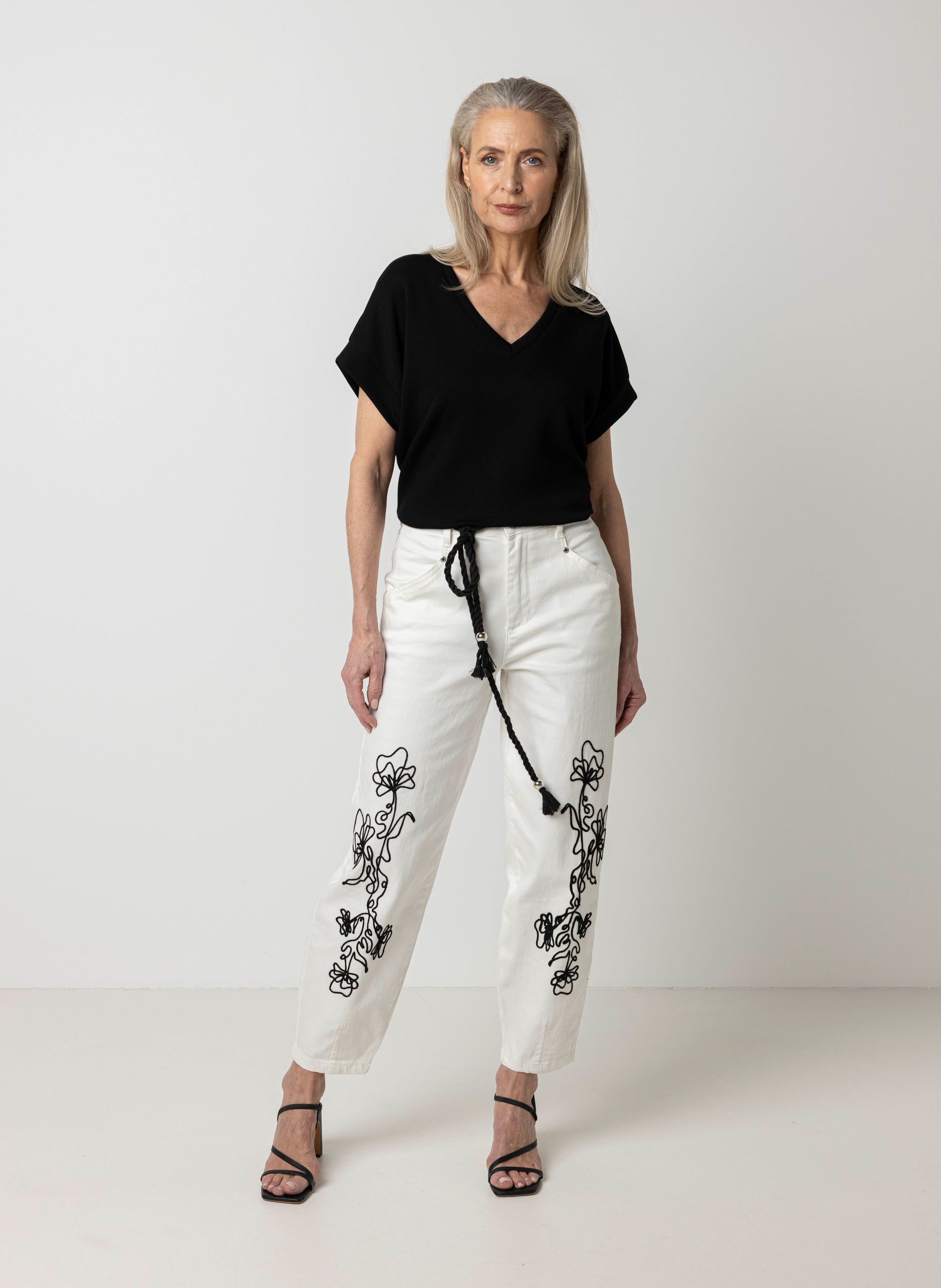 Deze high waist barrel fit jeans heeft een cropped lengte en een subtiel rond gevormde pijp voor een speels effect. De soepele denim met verfijnde borduursels geeft het model een moderne uitstraling. De iets kortere lengte laat je enkels mooi uitkomen. Perfect om kennis te maken met de barrel trend voor een vrouwelijke look. Er zit een ceintuur bij deze jeans.