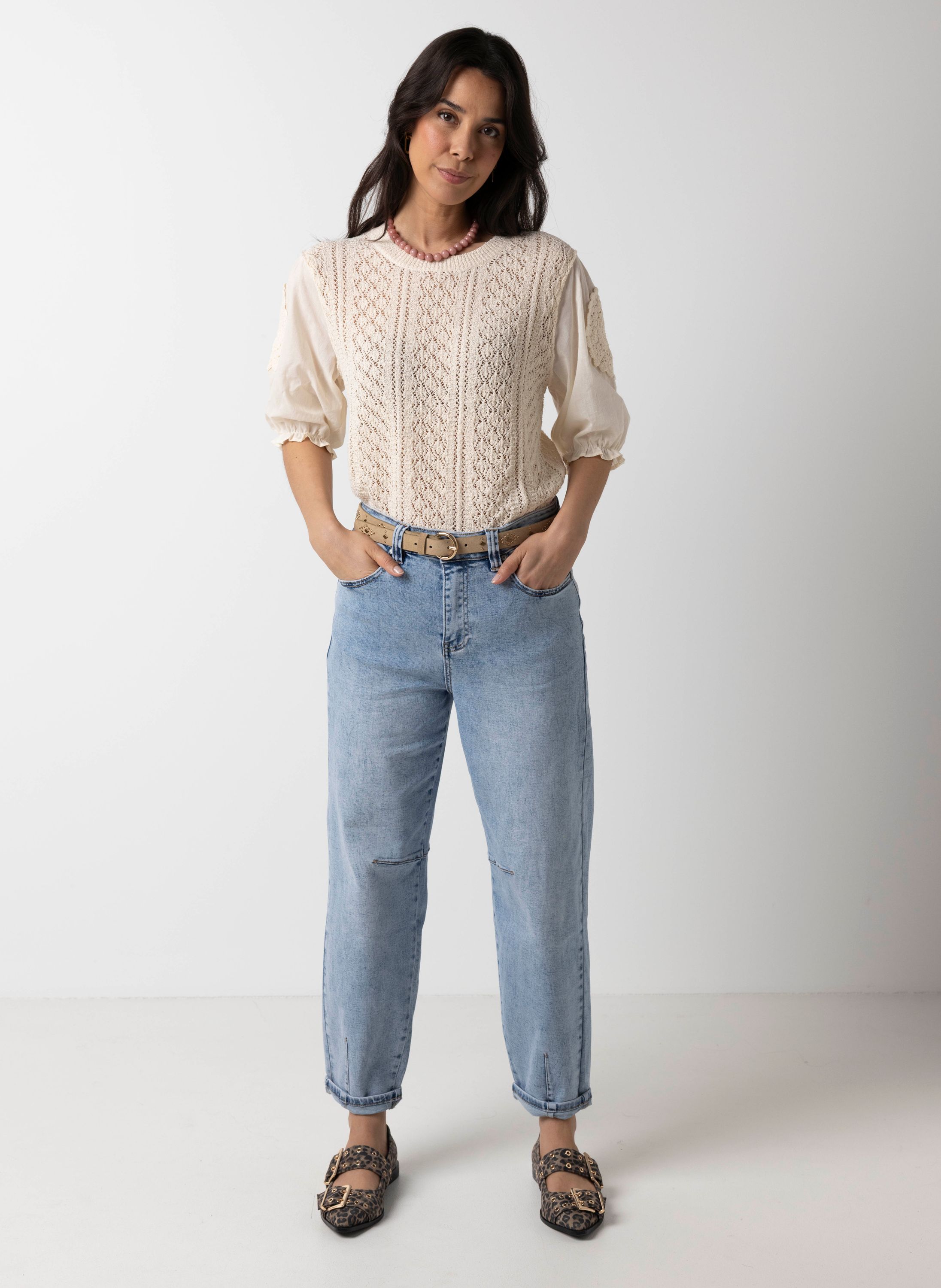De hight waist barrel fit jeans heeft een iets rond gevormde pijp die niet té uitgesproken is, perfect als je de barrel trend eens wilt proberen. Gemaakt van een zachte denim met fijne stretch. De cropped lengte geeft een moderne twist en laat je enkels mooi uitkomen. Draag met sneakers en een basic shirt voor een relaxte look.