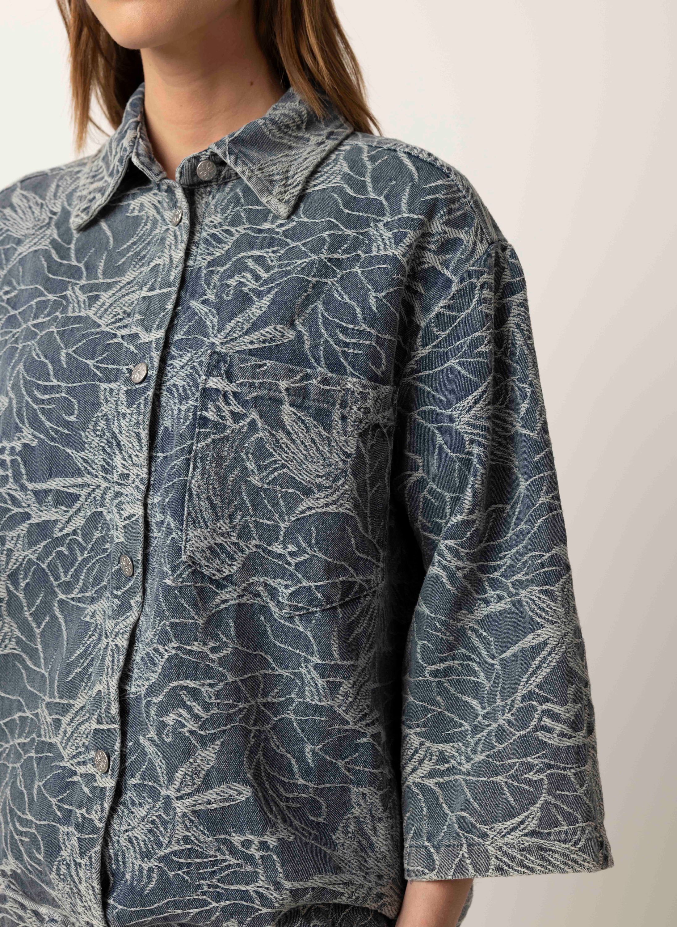 Blauw denim jasje met print