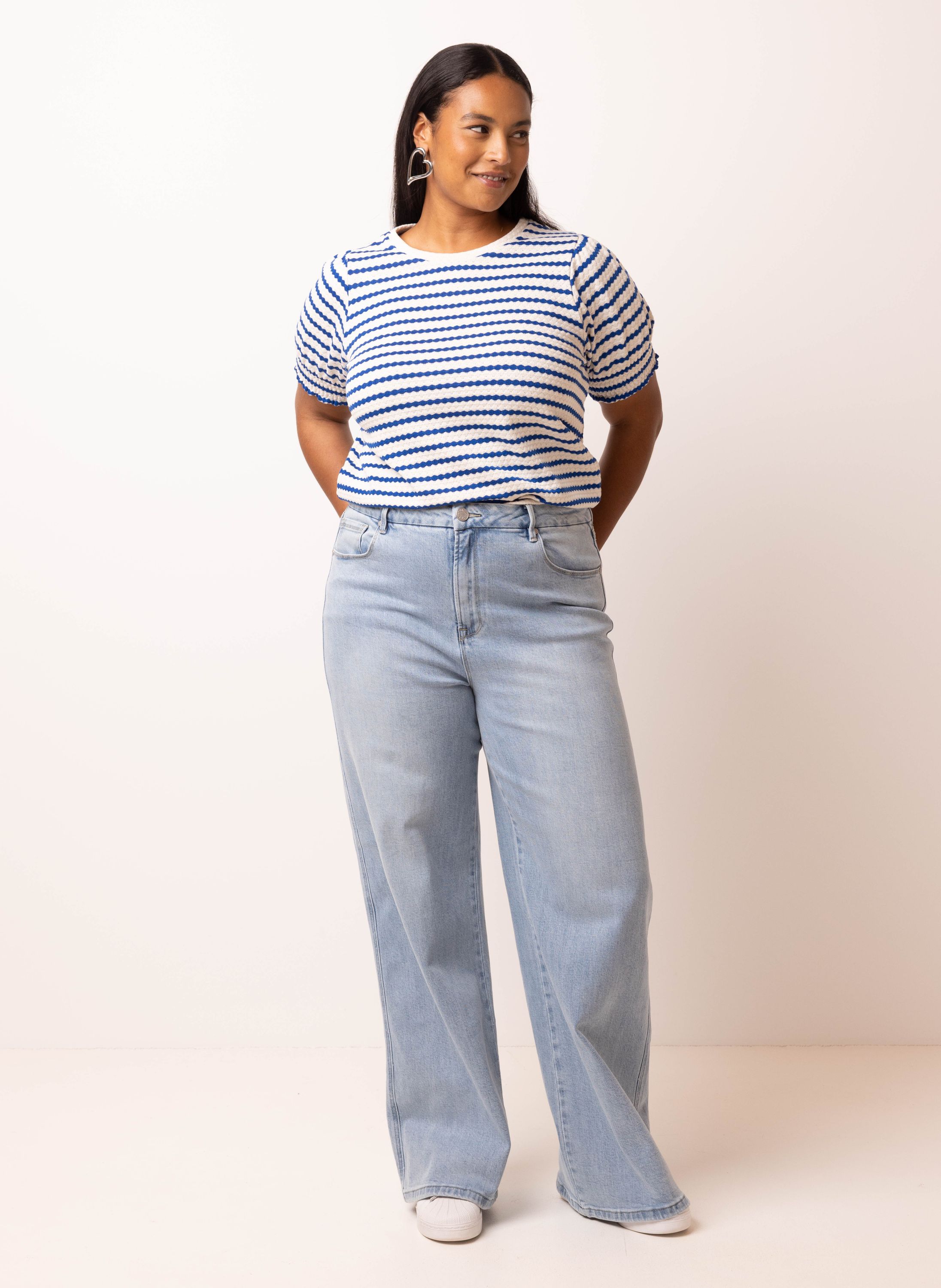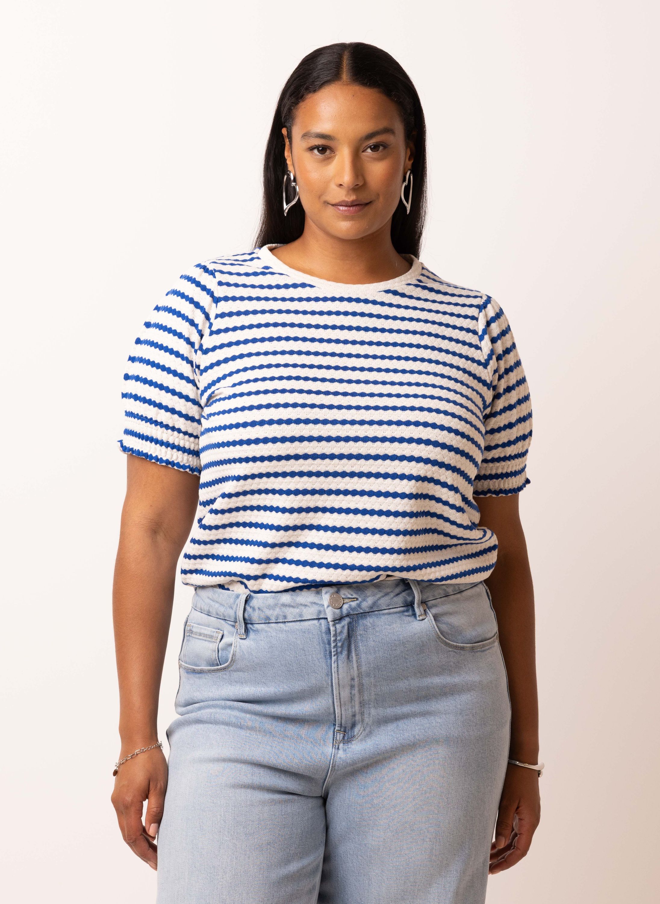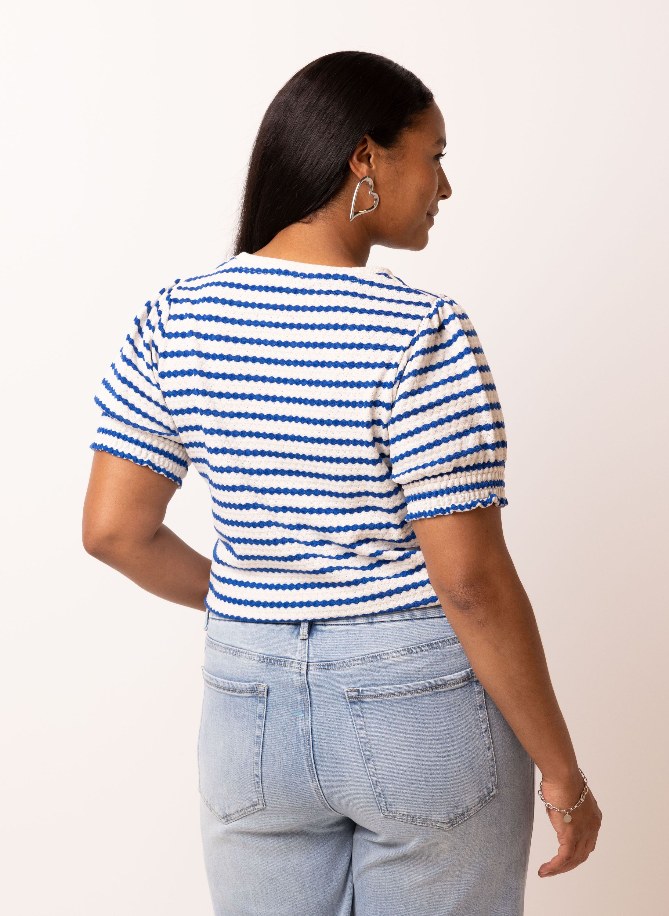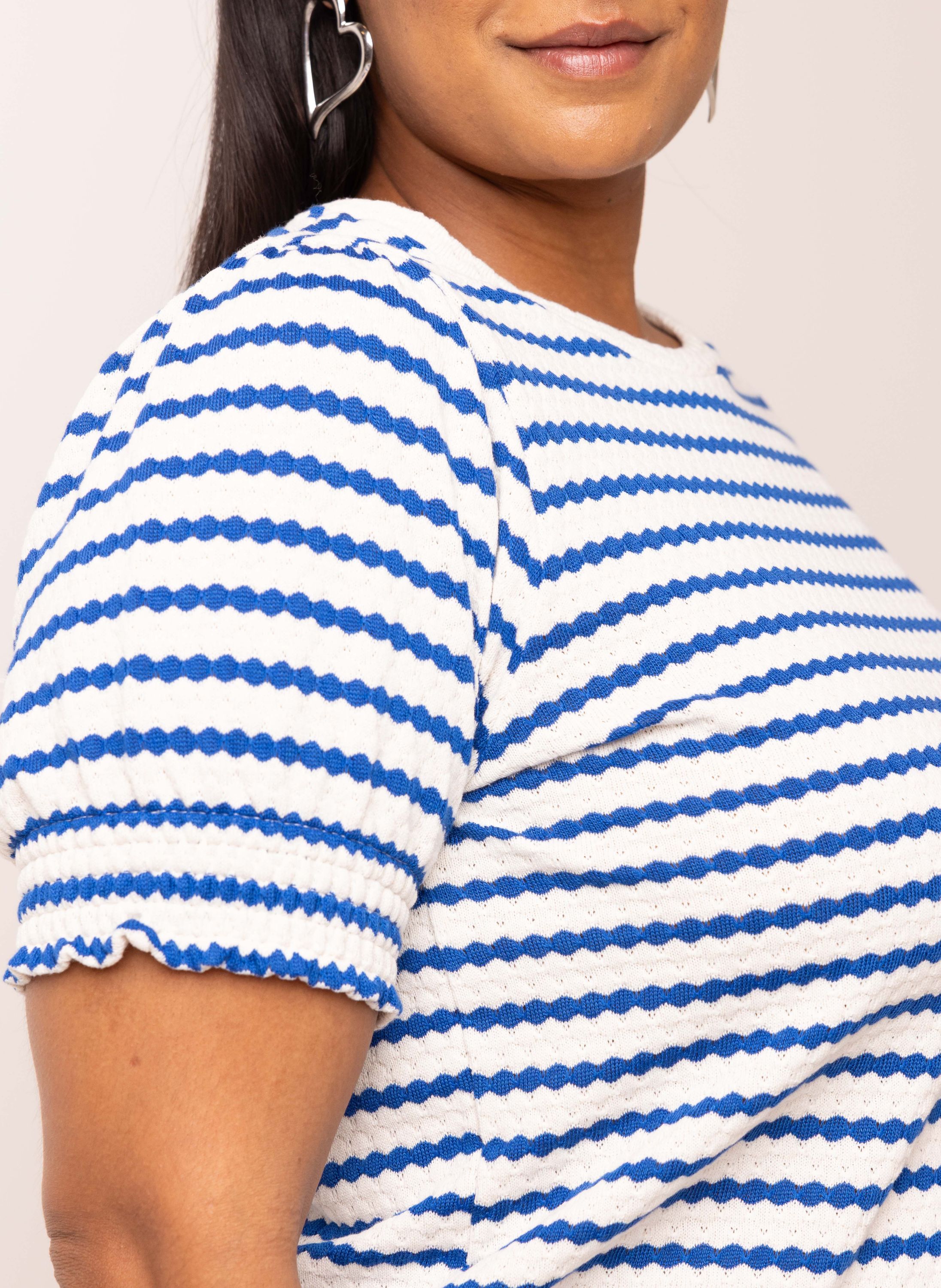 Blauw/ecru gestreept shirt