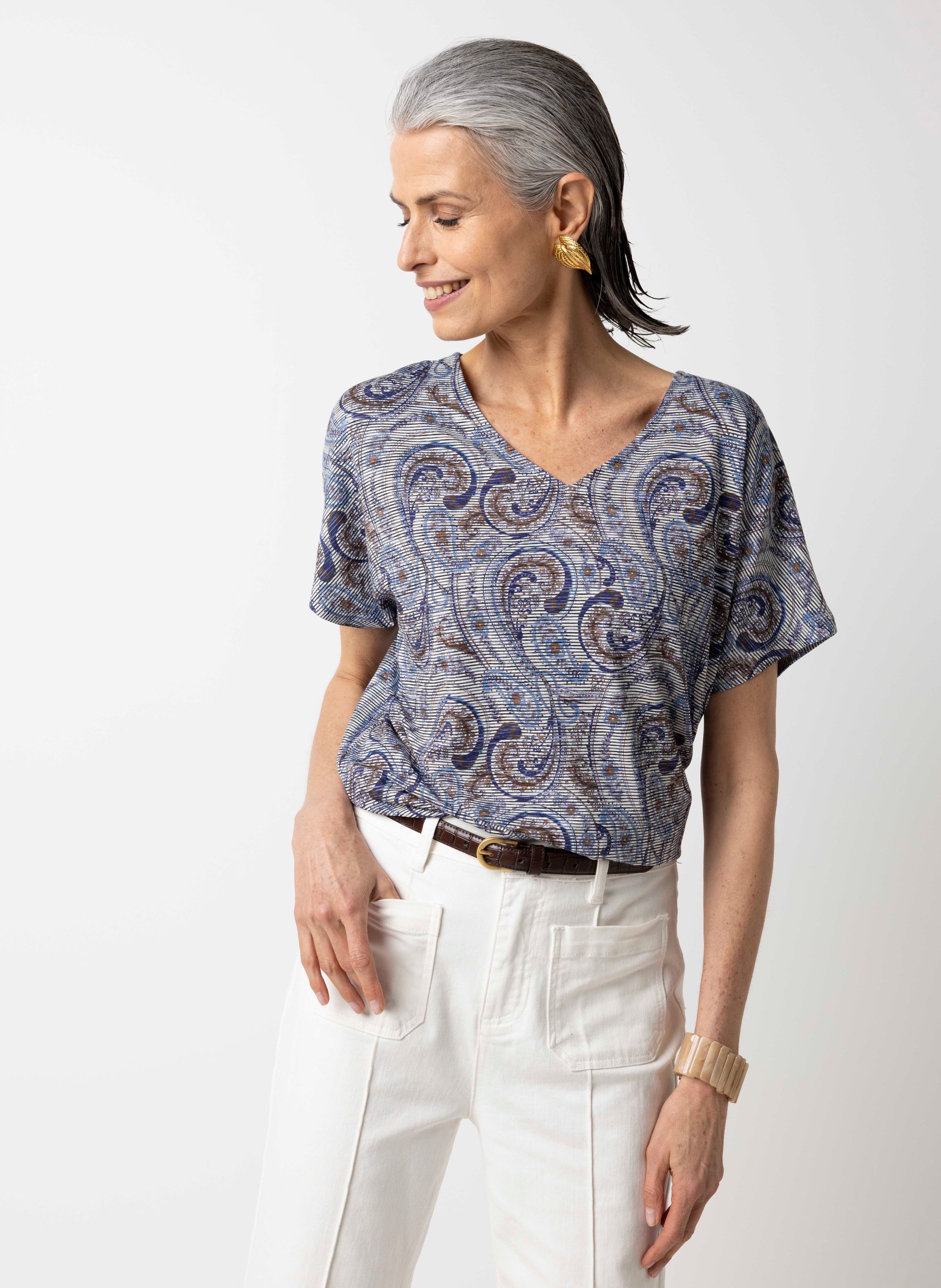 Blauw shirt met paisley print
