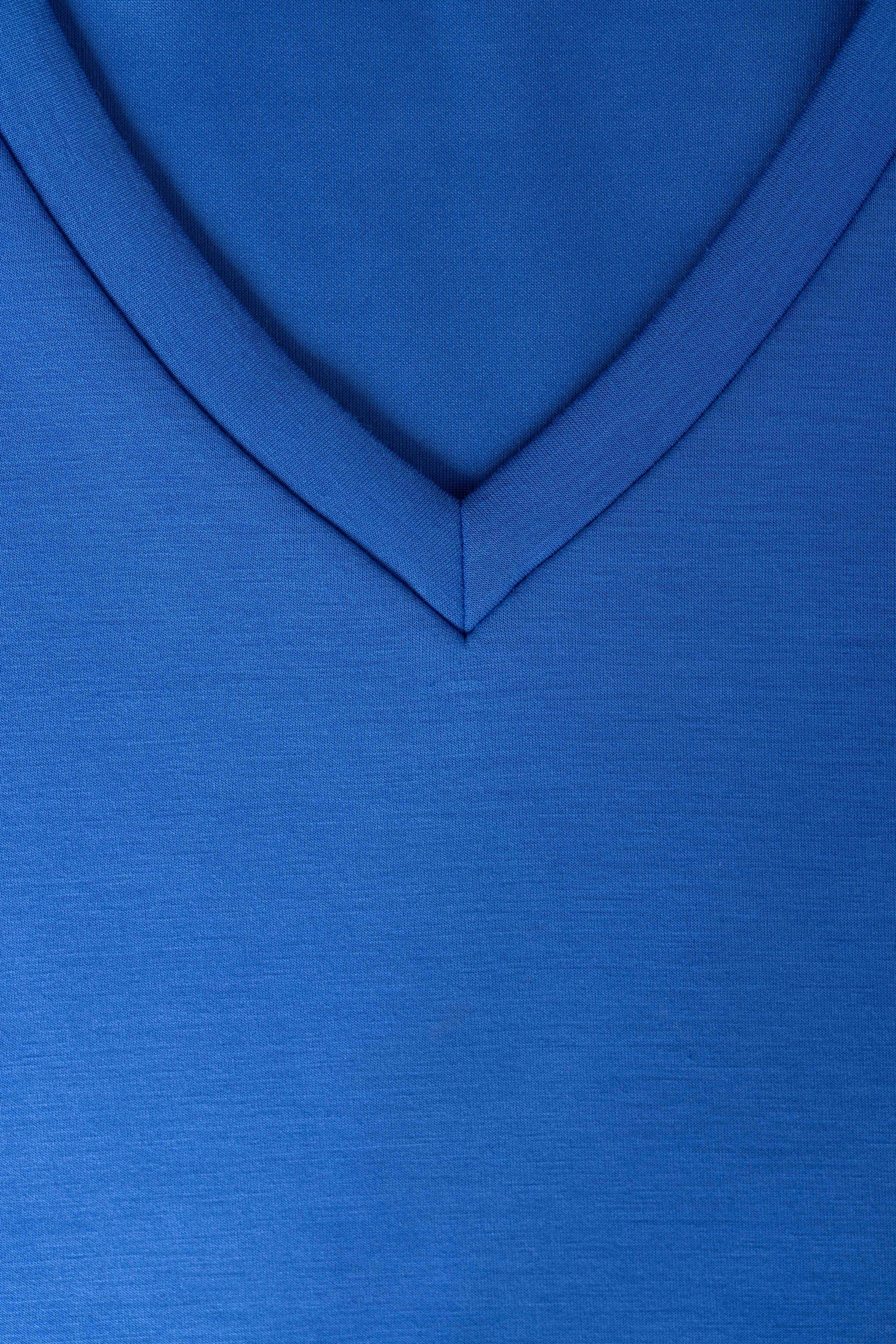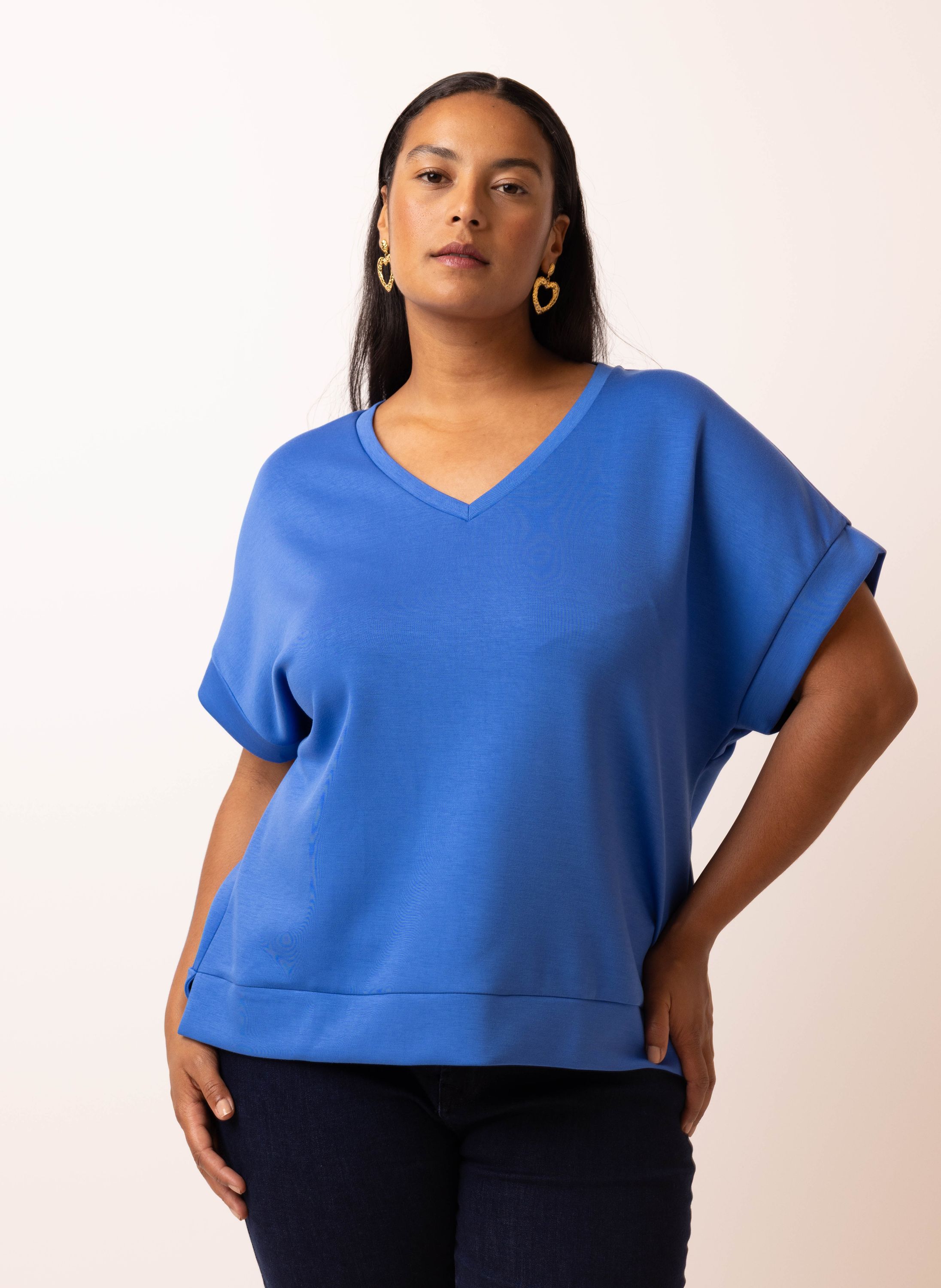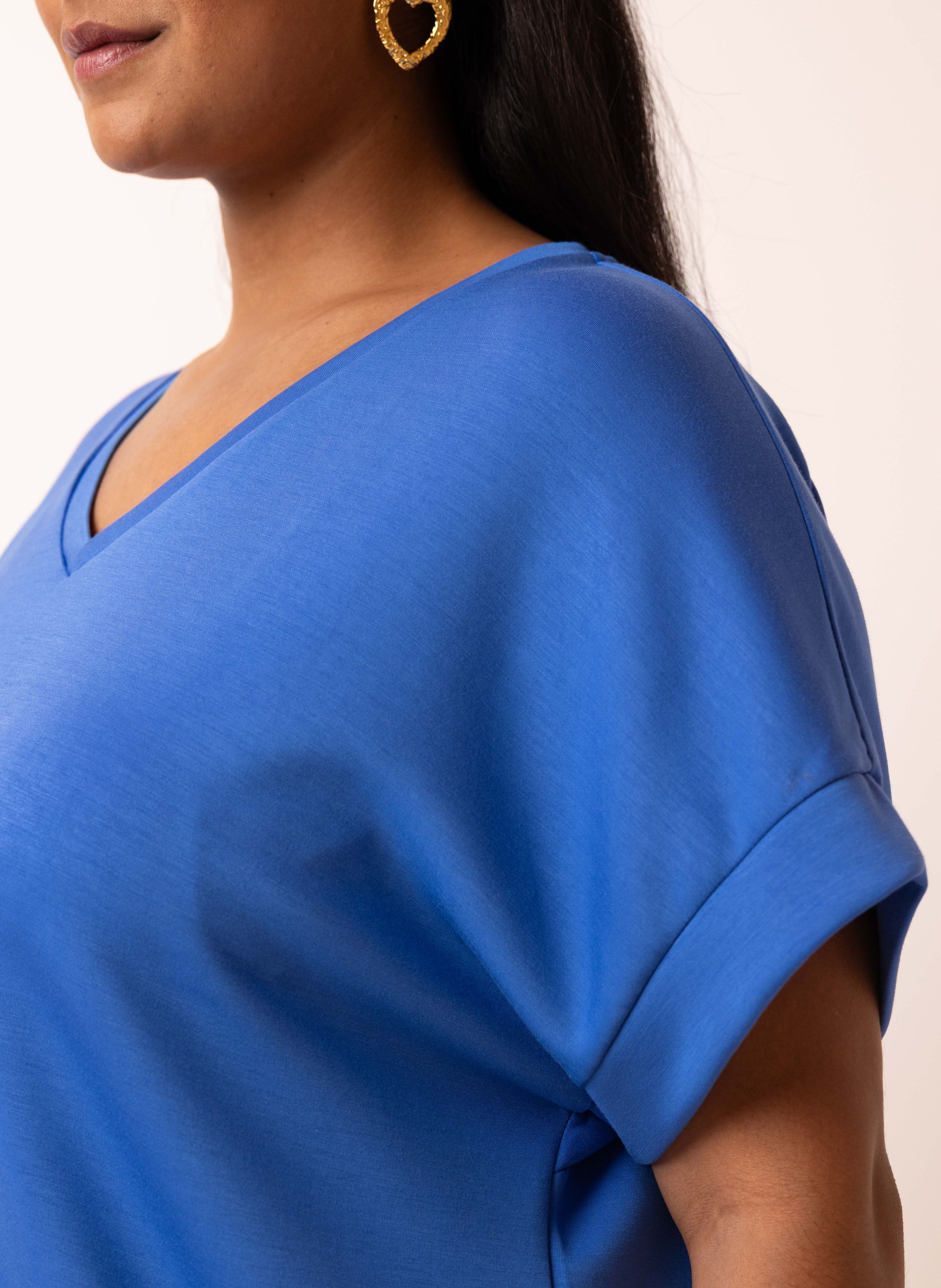 Dit shirt met V-hals heeft korte mouwen en kleine splitjes aan beide onderzijden.