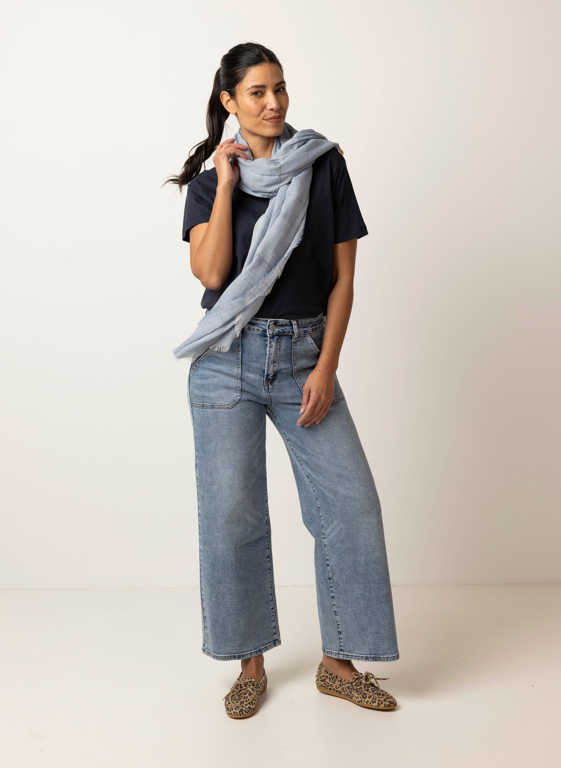 Deze fijngeweven sjaal met rafelrand is een licht en stijlvol accessoire.