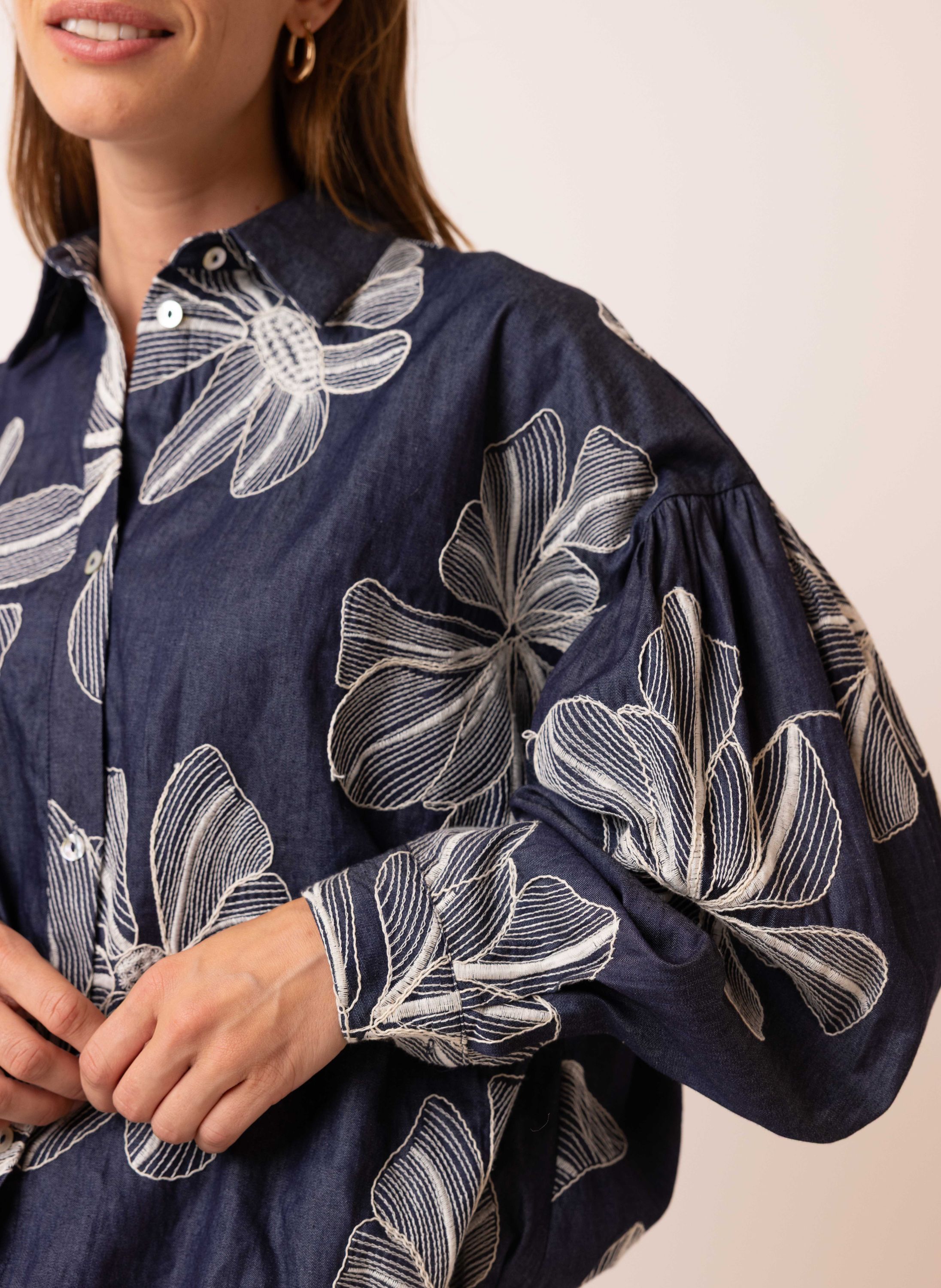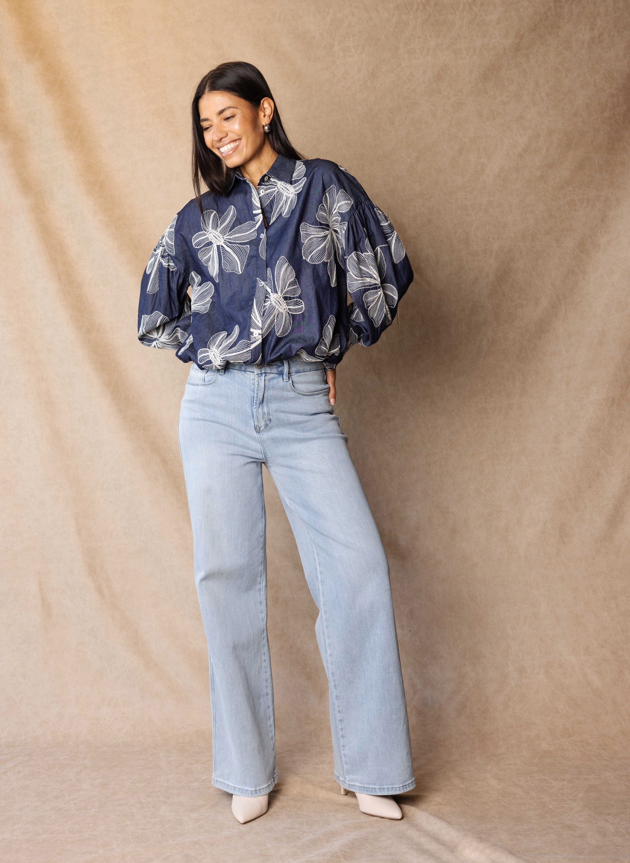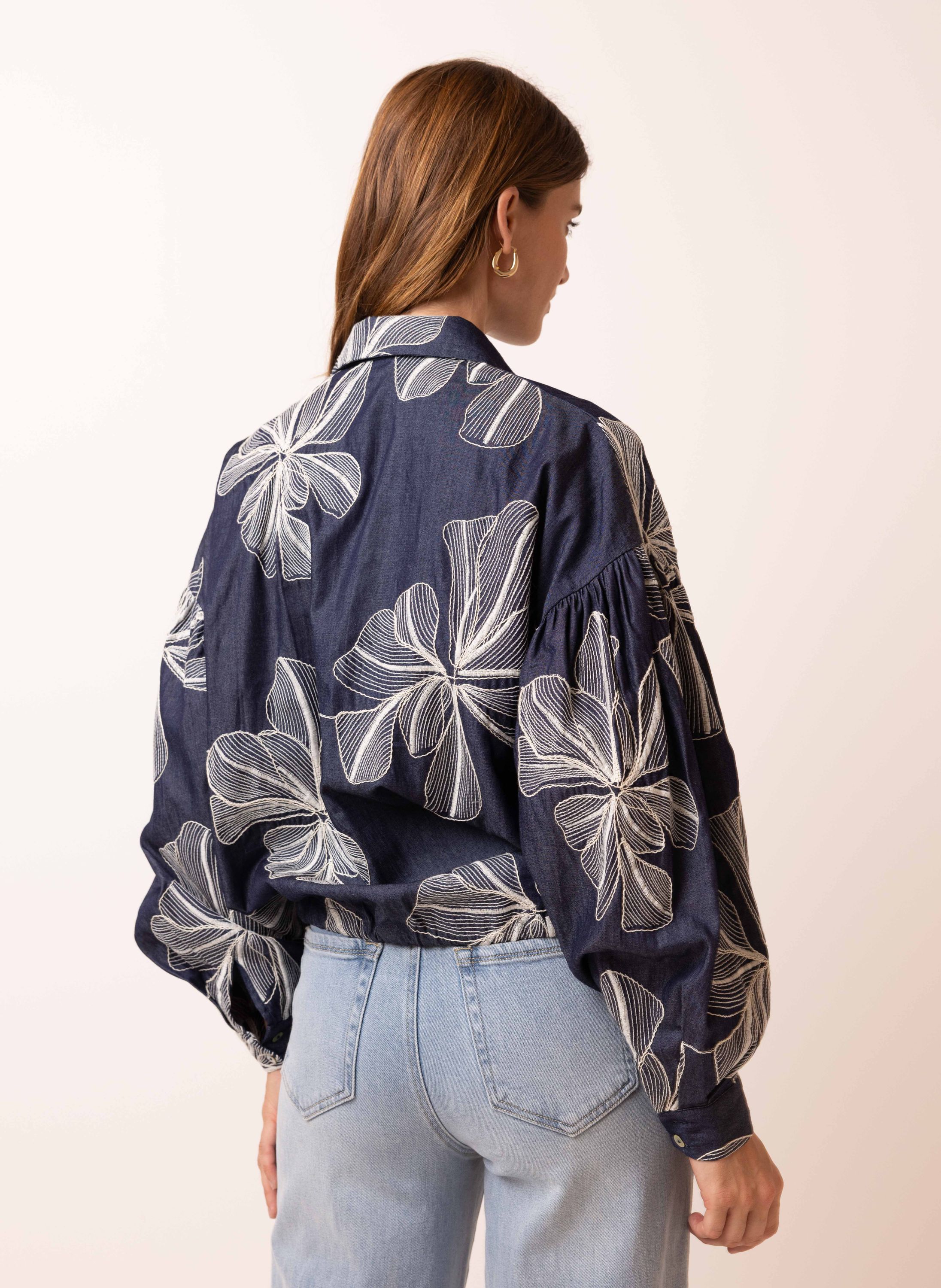 Deze katoenen blouse met klassieke kraag, knoopsluiting en lange pofmouwen is afgewerkt met een trekkoord aan de onderzijde.
