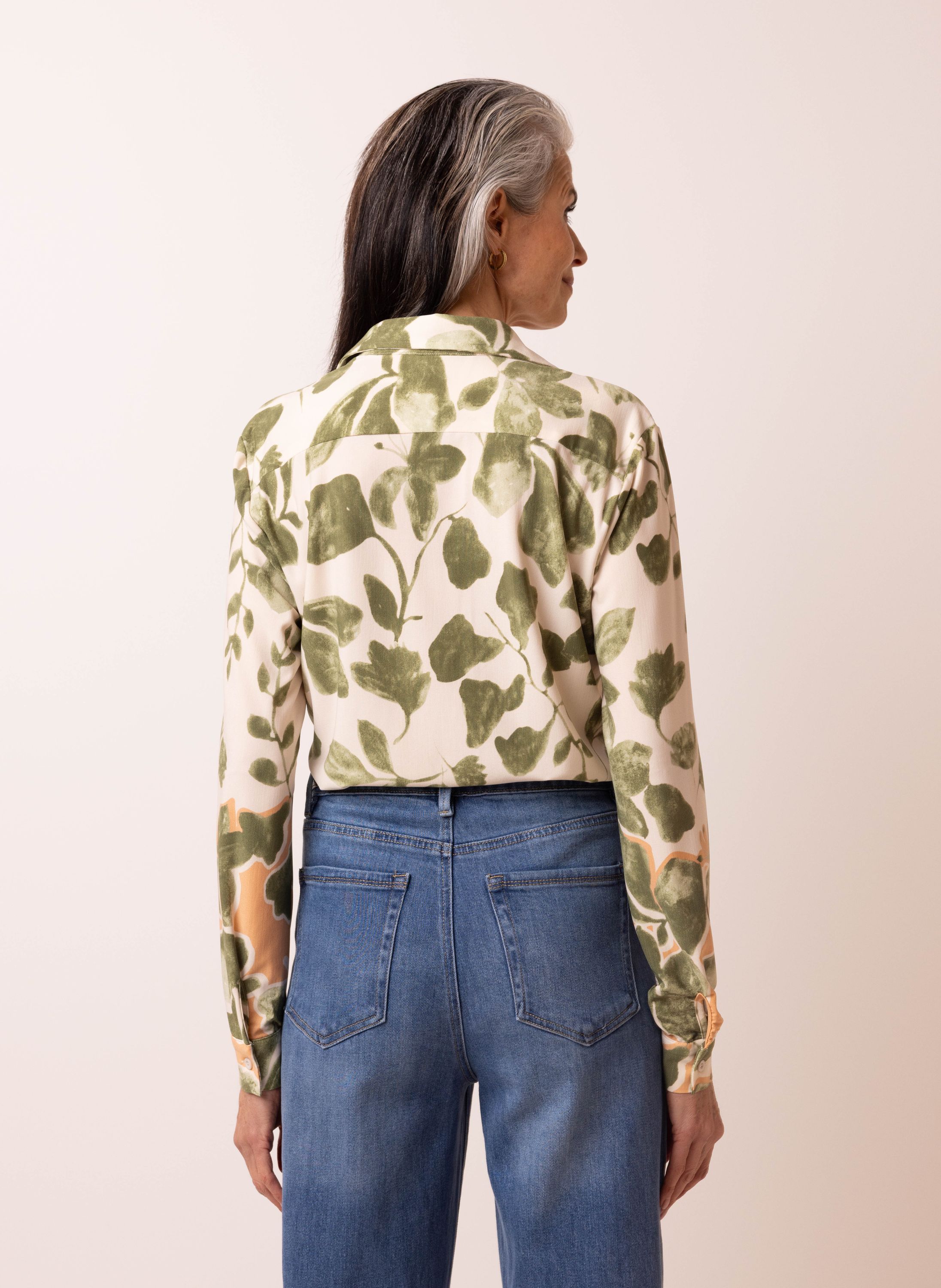 Deze blouse met V-hals heeft lange ballonmouwen met elastische boorden. De soepele stof valt mooi om het lichaam voor een vrouwelijke uitstraling.
