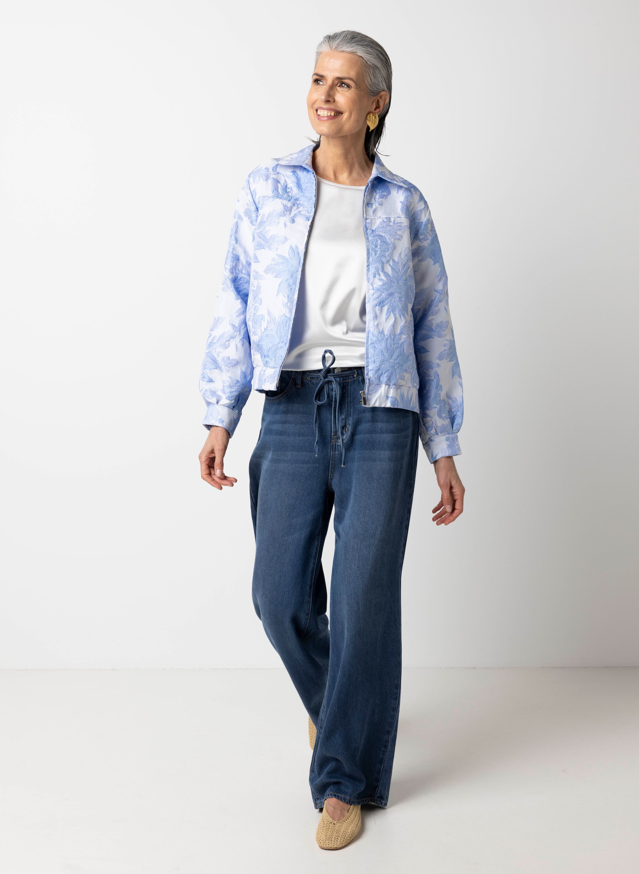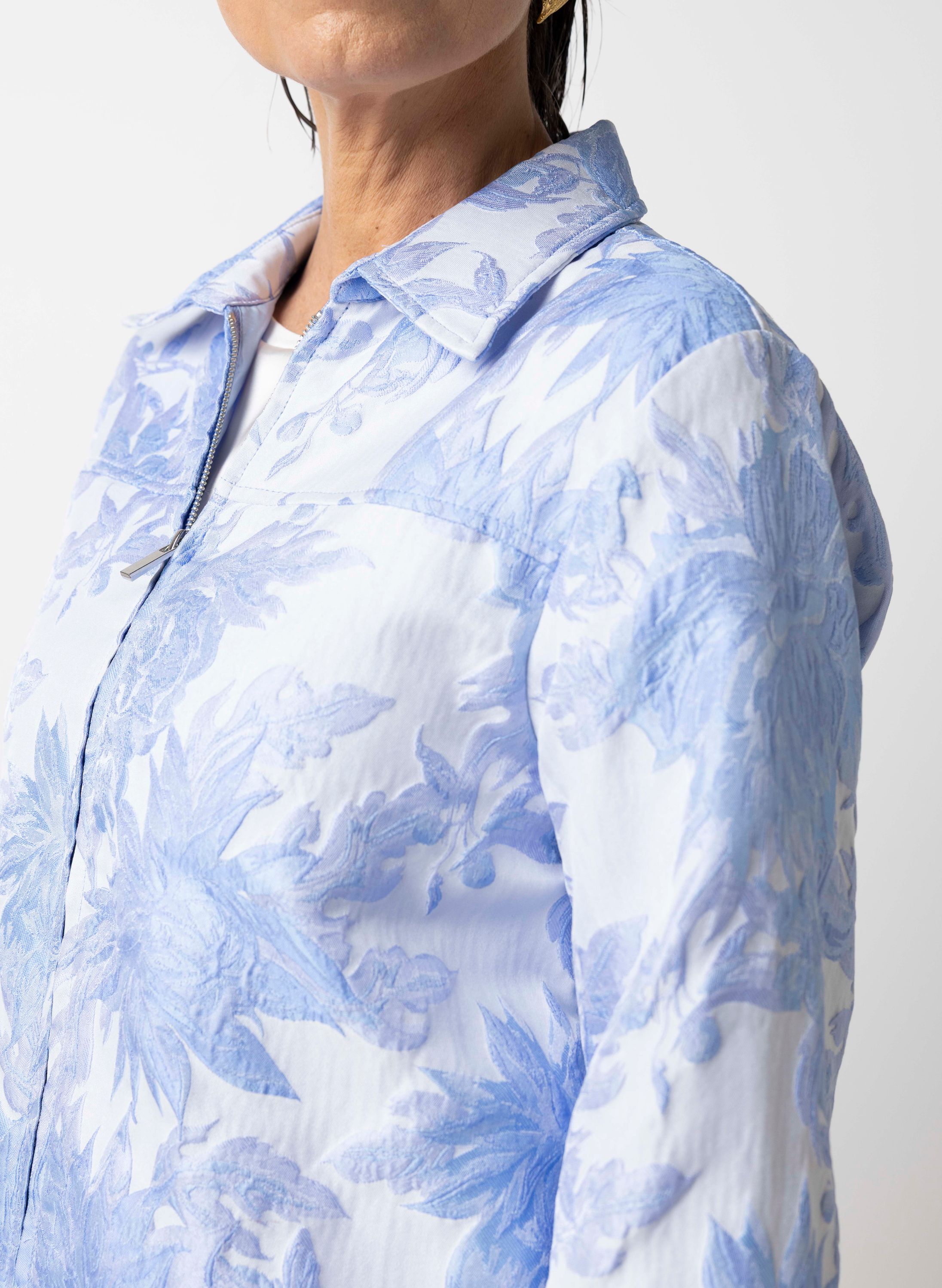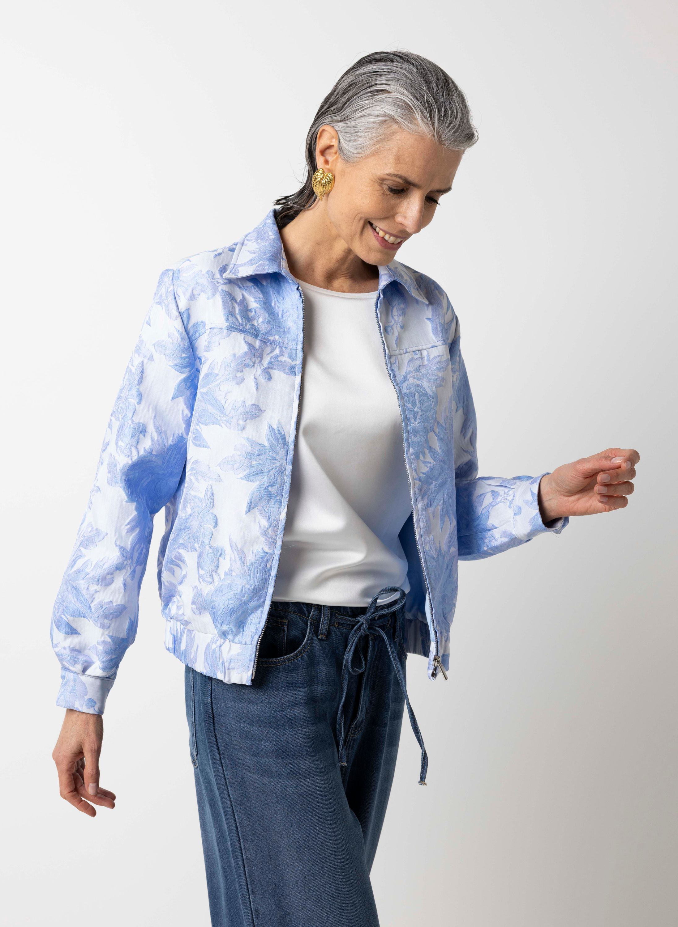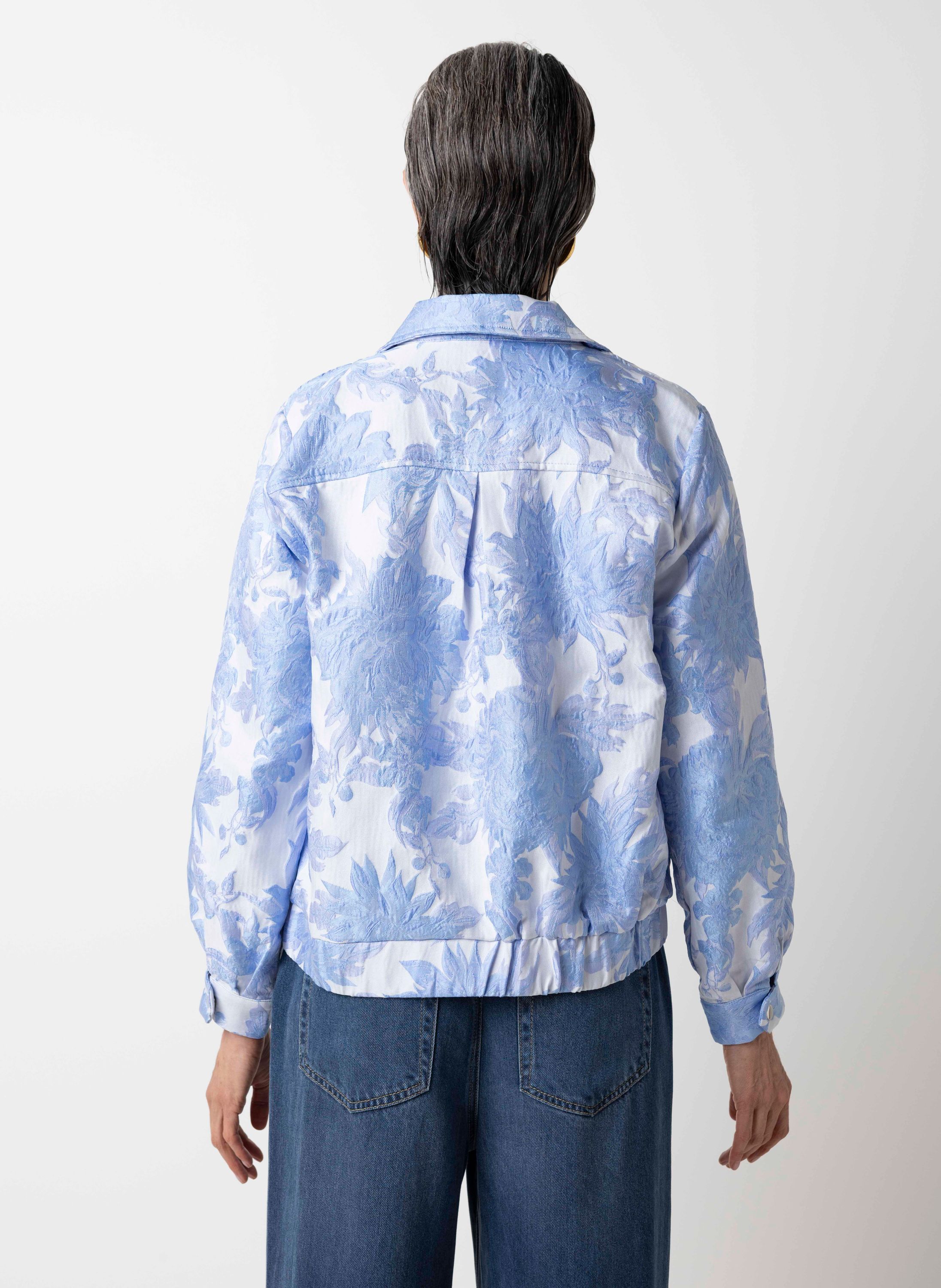 Blauwe bomberjas met bloemen