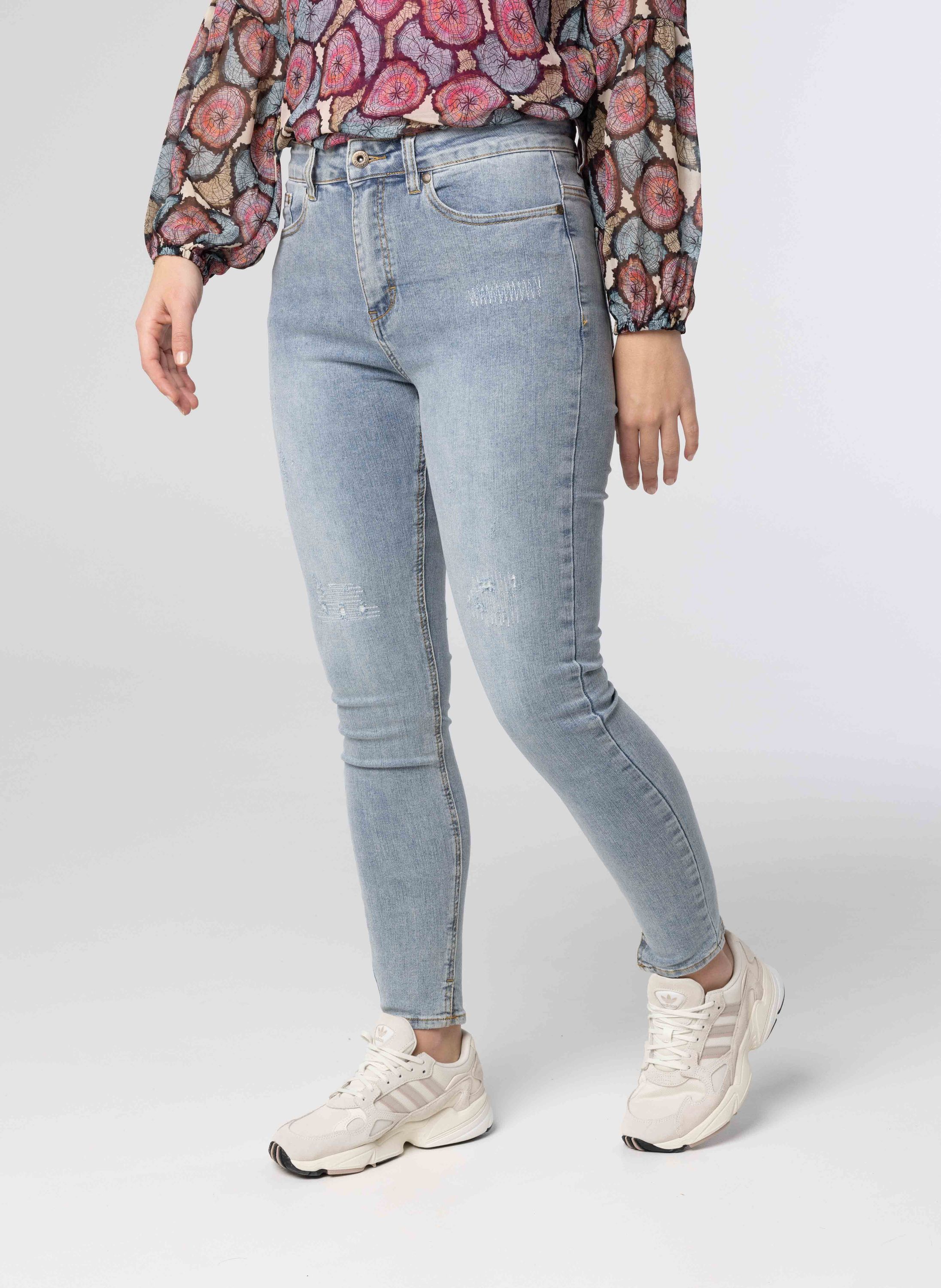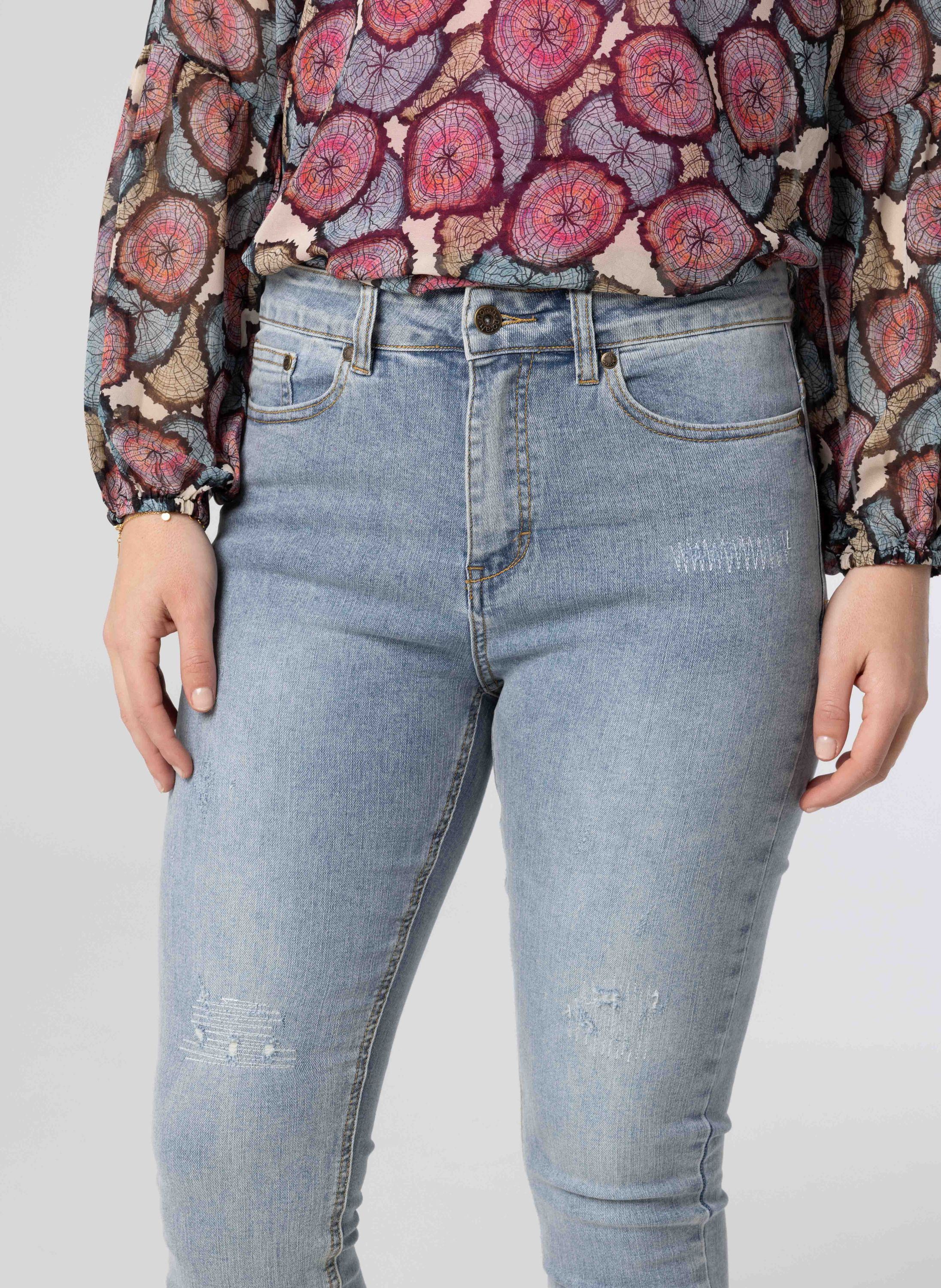 Deze 5-pocket skinny jeans is gemaakt van een rekbare katoenmix. De jeans heeft enkellange broekspijpen en een knoop- en ritssluiting. De korte splits onderaan de pijpen en de lichte scheuren aan beide zijden onderscheiden deze skinny jeans van onze andere spijkerbroeken.