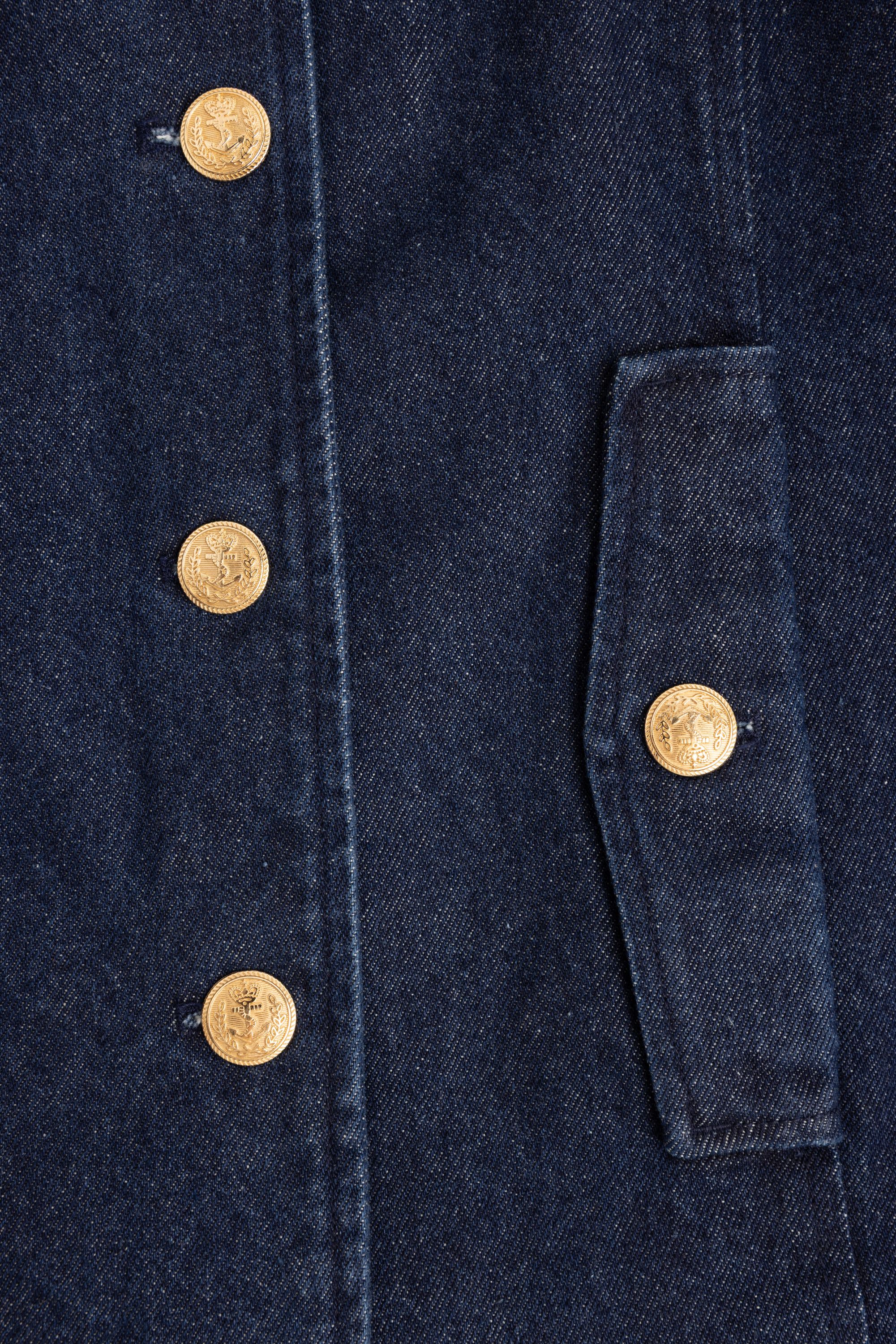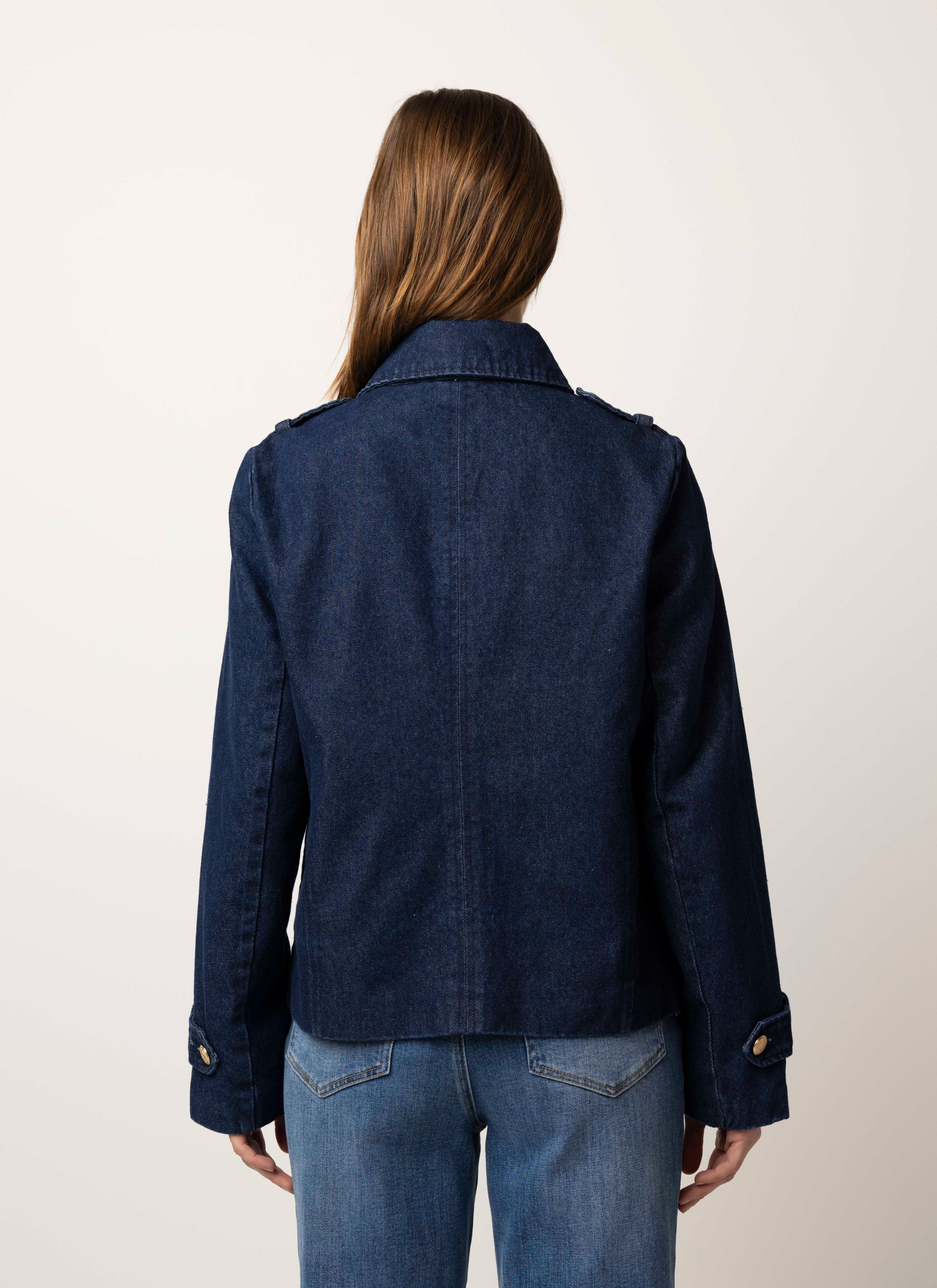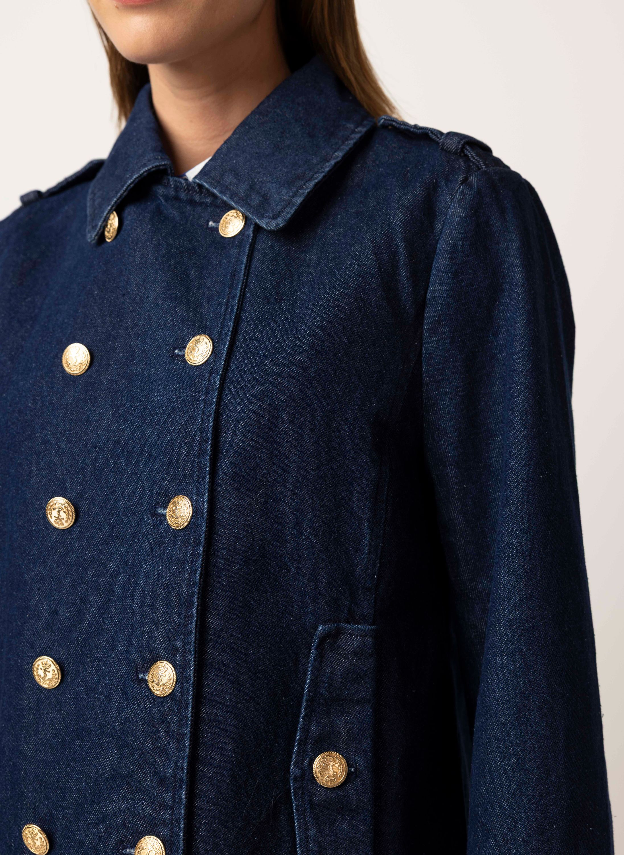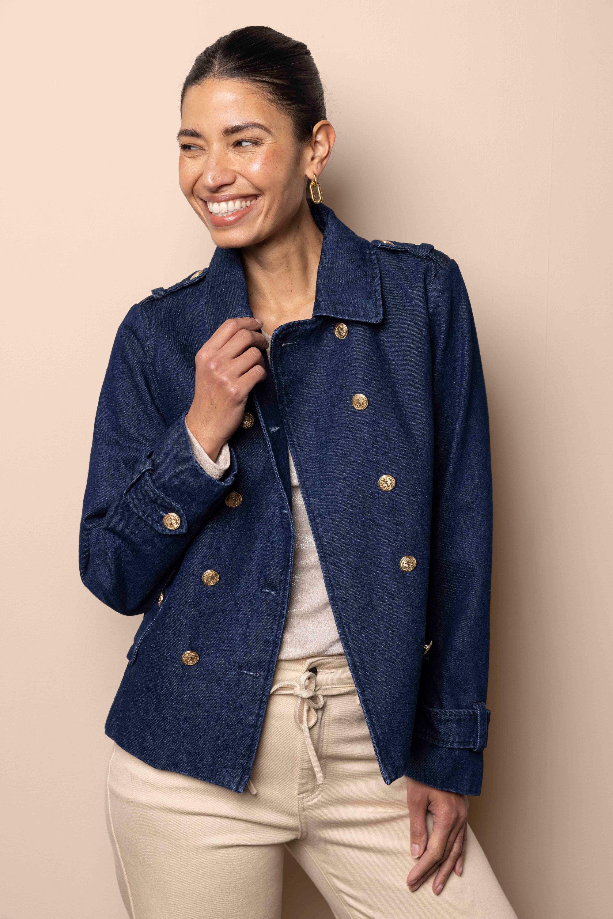 Deze jas is uitgevoerd in stevig denim en heeft een dubbele knoopsluiting met goudkleurige knopen voor een stijlvolle uitstraling. De reverskraag en steekzakken aan de voorzijde geven het ontwerp een klassieke touch, terwijl de pasvorm zorgt voor een vrouwelijke look. Ideaal om als jas te dragen in het voor- en najaar. Dit item is exclusief verkrijgbaar in geselecteerde winkels en online. Controleer de winkelvoorraad om de beschikbaarheid in een winkel bij jou in de buurt te bekijken.