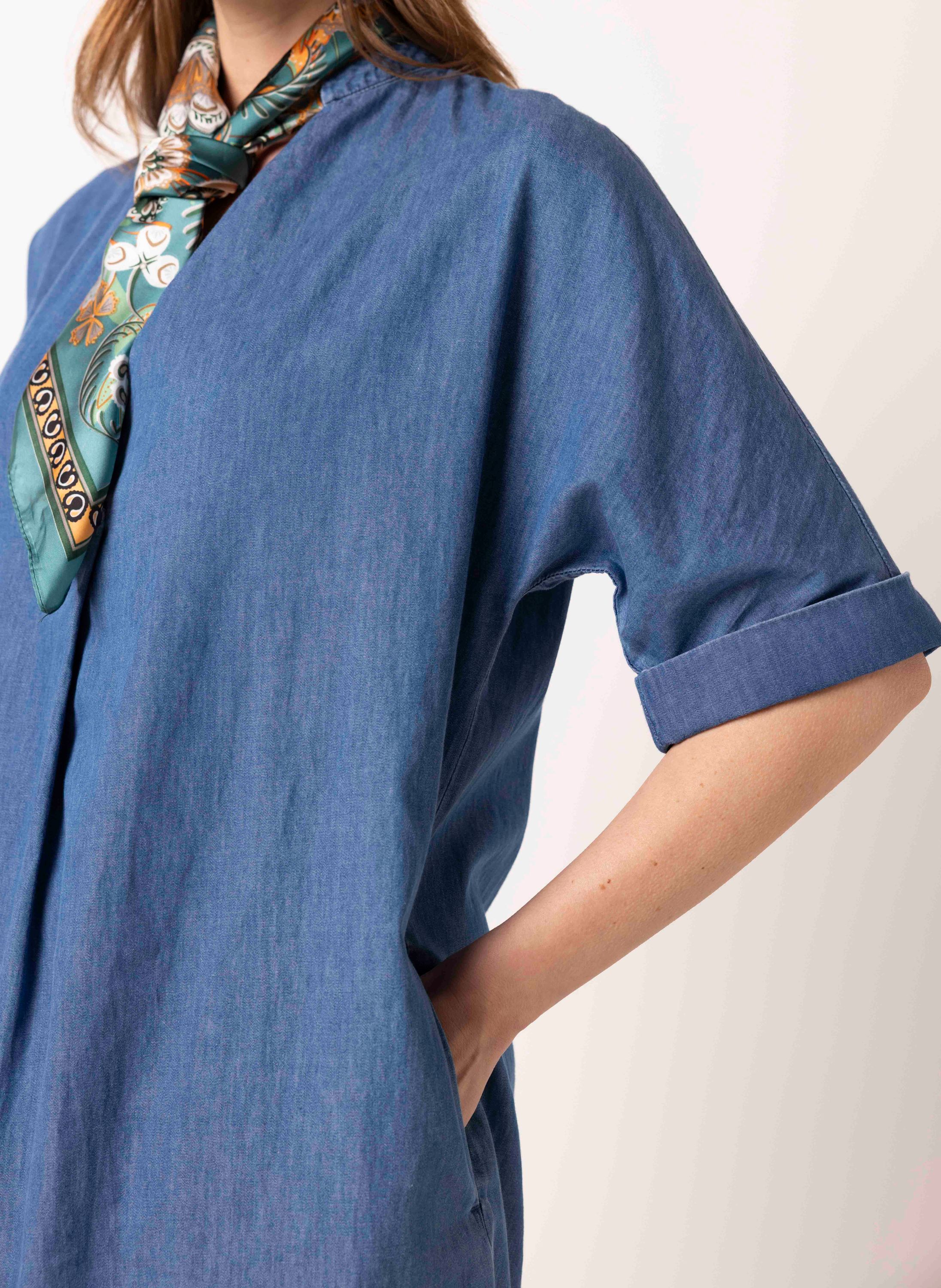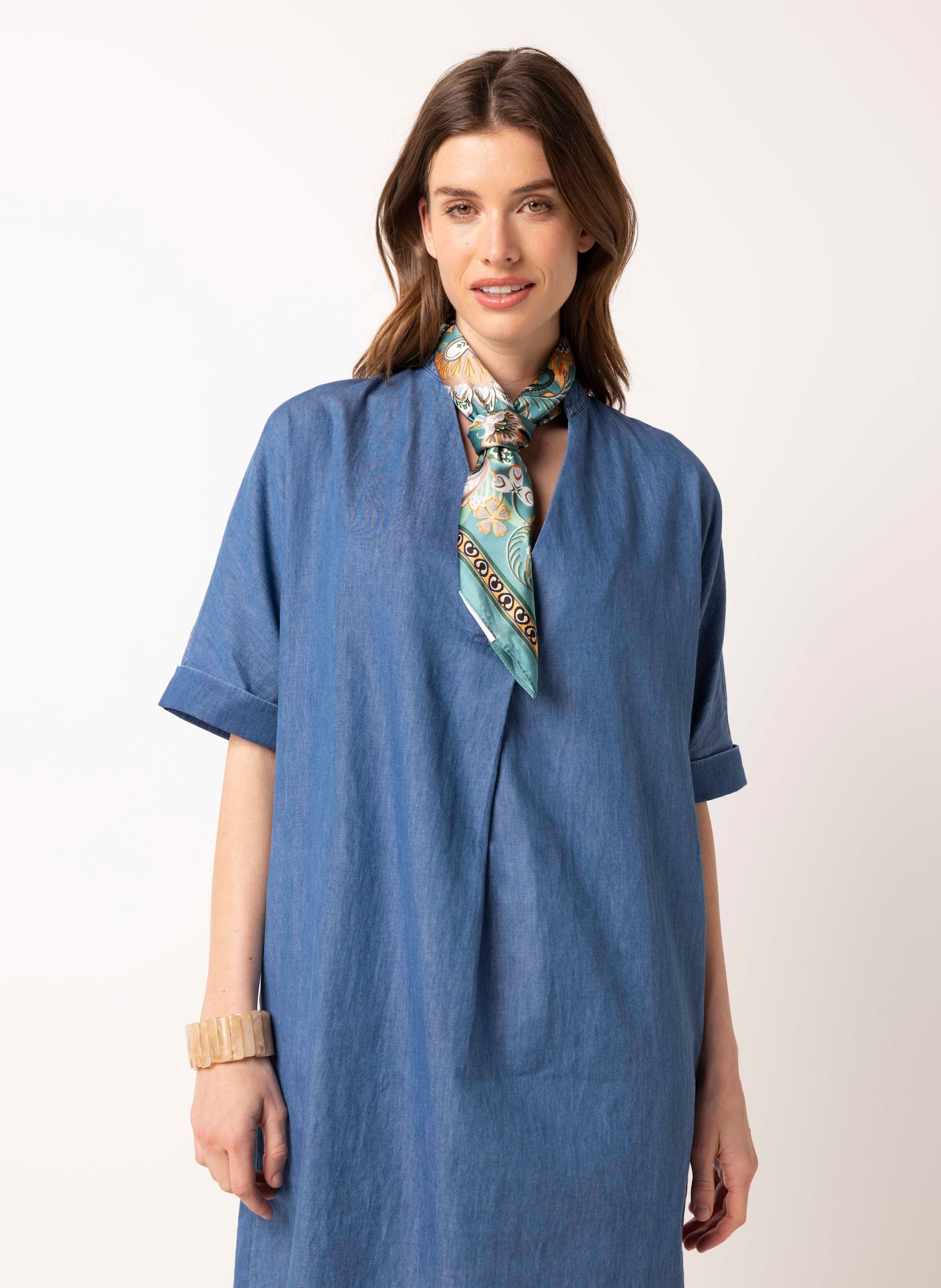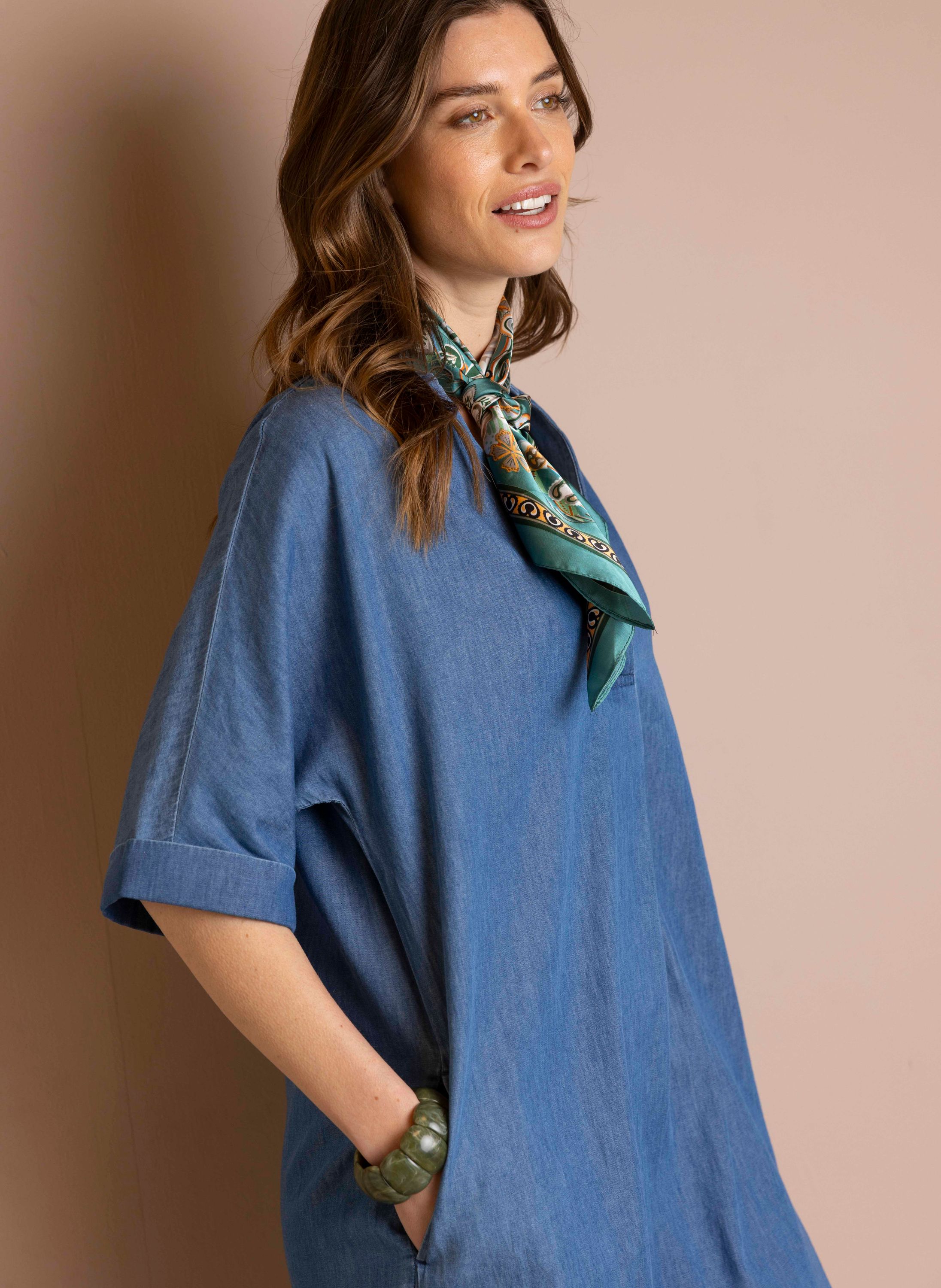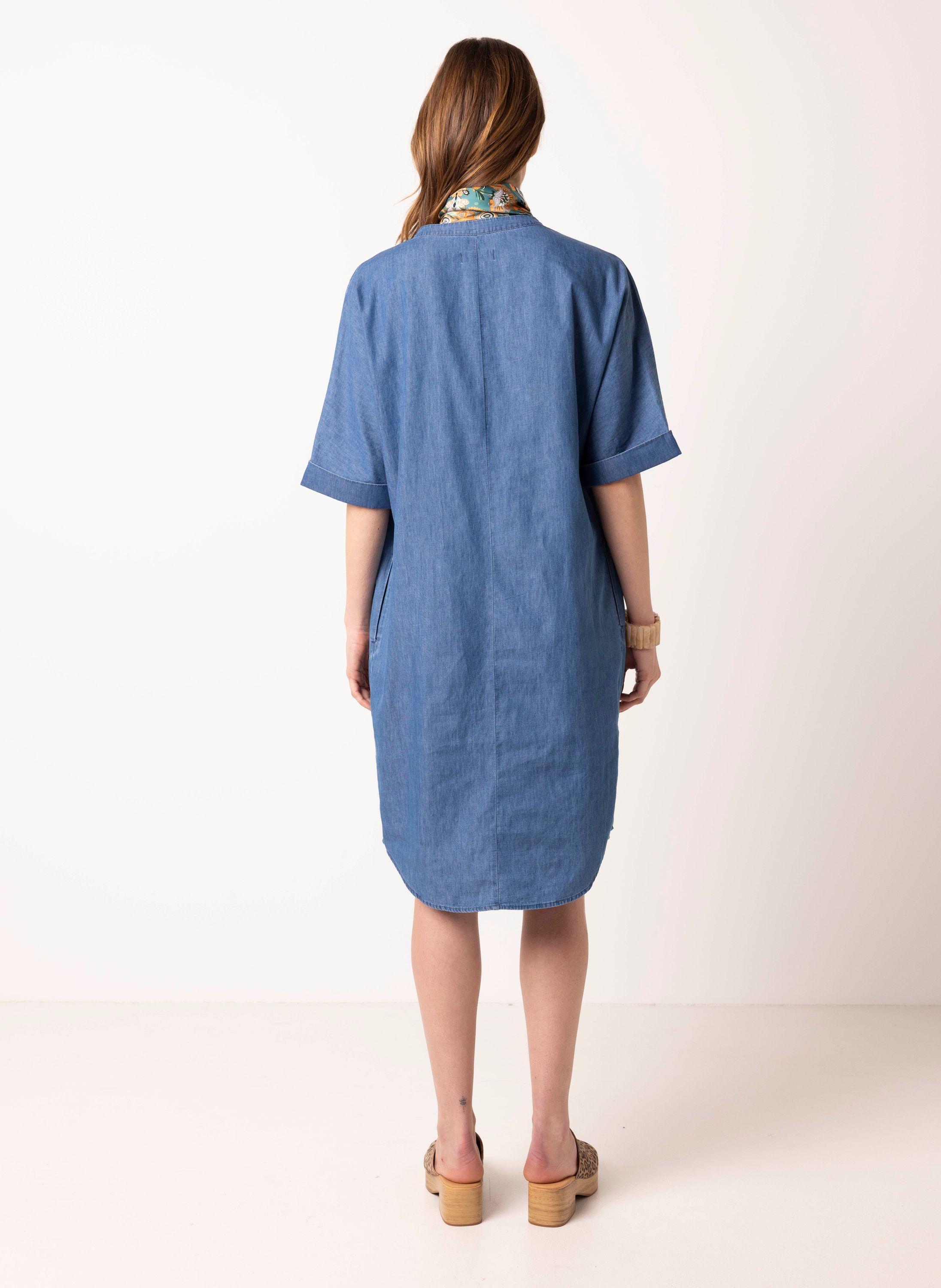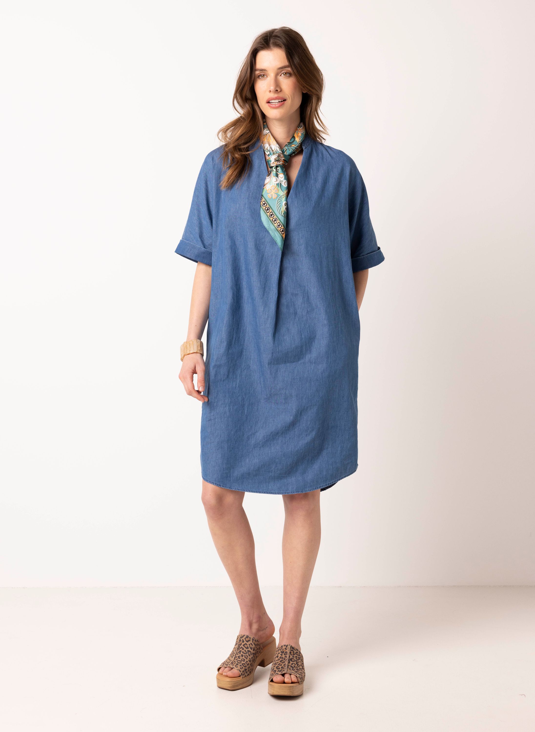 Deze midi jurk met V-hals, halflange mouwen en steekzakken heeft een elegante uitstraling.