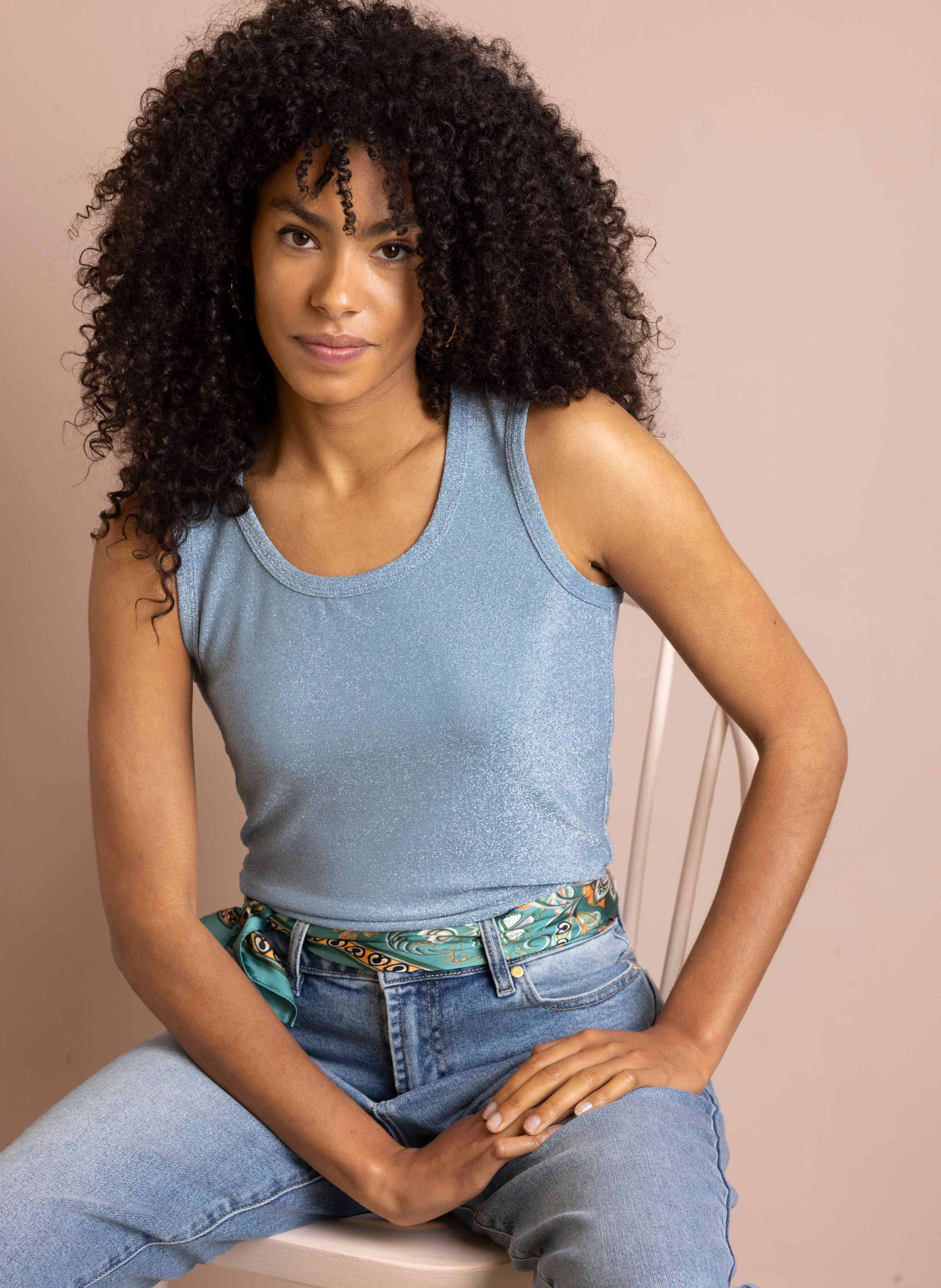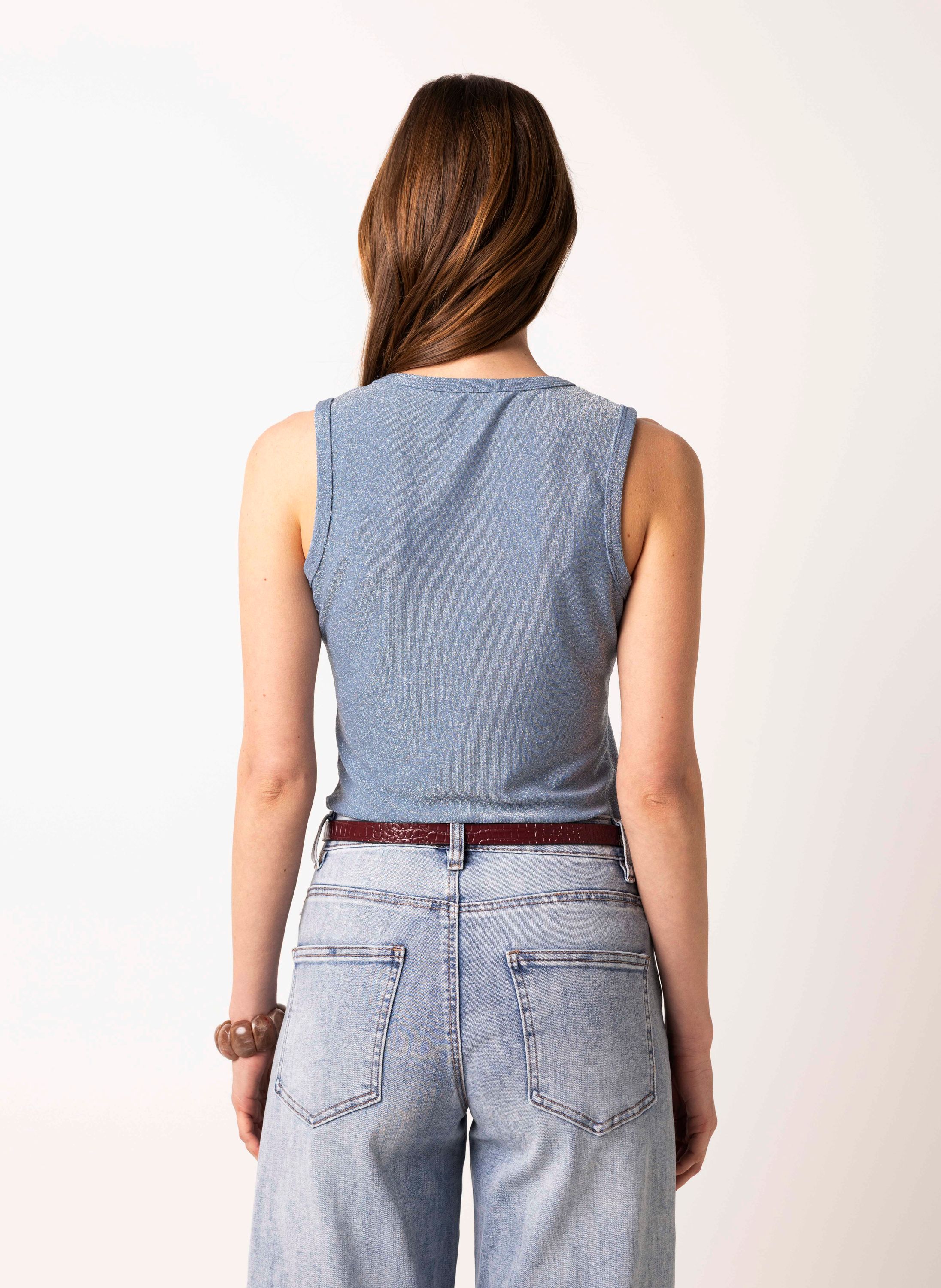 Deze mouwloze top met ronde hals is afgewerkt met zilverkleurig lurexdraad voor een subtiele glans.