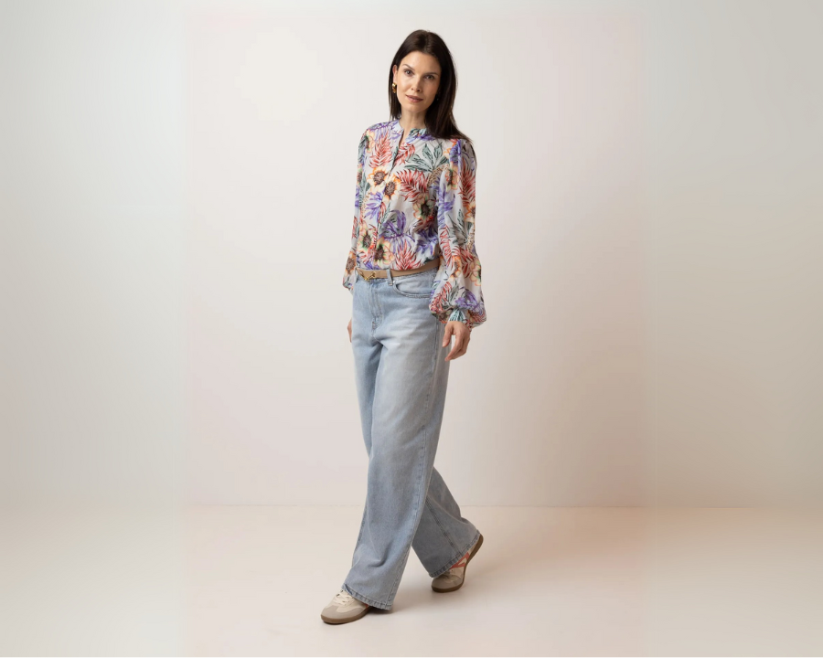 - Combineer met een blouse: Een luchtige blouse met bijvoorbeeld een bloemenprint zorgt voor een speelse en vrouwelijke touch.