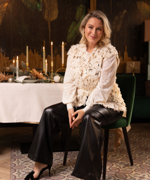 Van een shiny partylook tot een stijlvolle outfit met een opvallende blouse, en een gedurfde look met een statement gilet – Jeltje laat zien hoe veelzijdig feestelijk kan zijn.