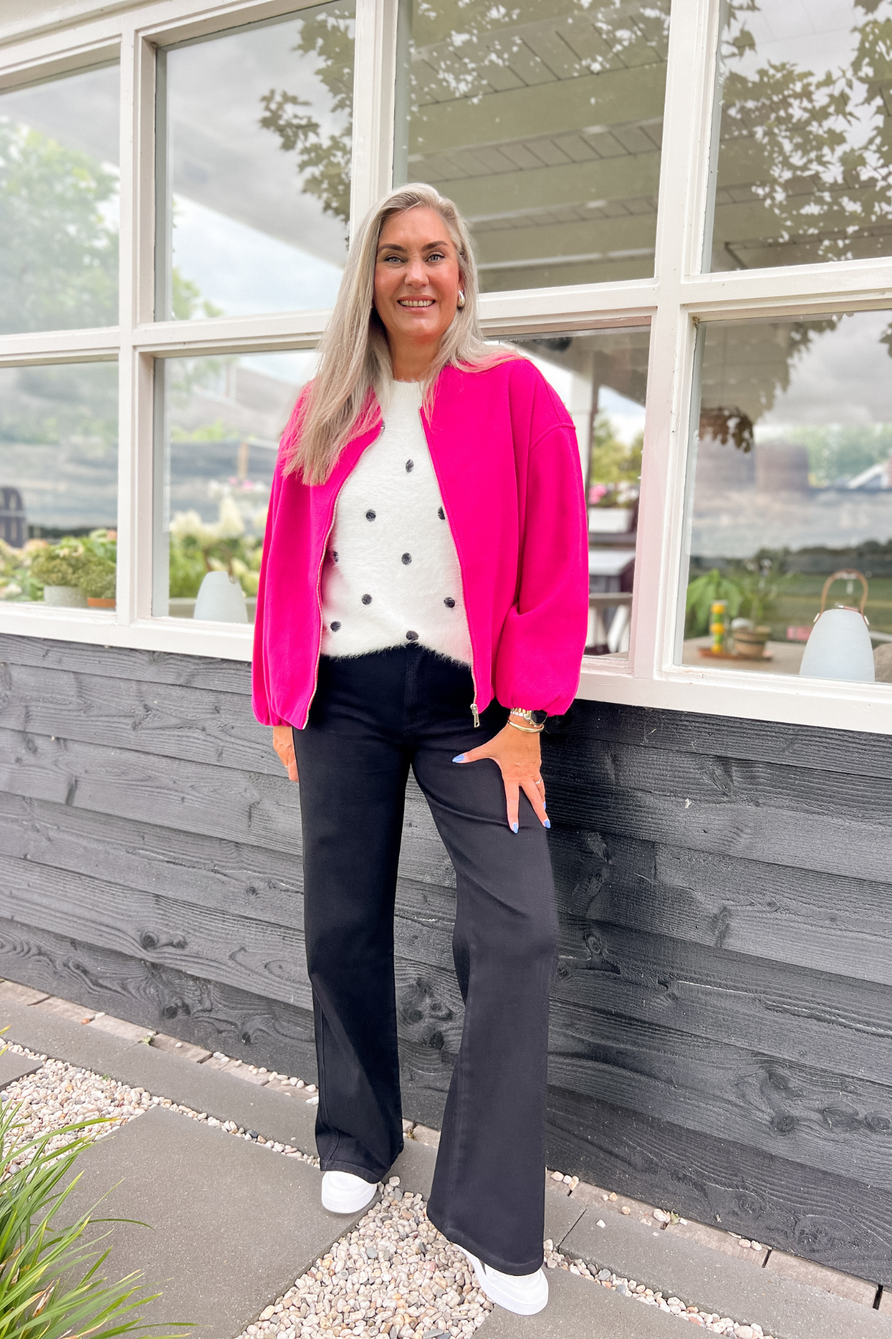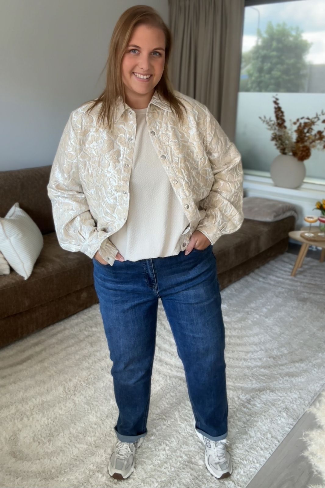 Ook Janna liep vaak tegen hetzelfde probleem aan als Marlous: broeken die net te kort zijn. Tot ze de Flora jeans ontdekte. “Het vinden van de perfecte jeans kan best lastig zijn. Zelf geef ik de voorkeur aan een donkerblauwe wassing, omdat je die zowel casual als chique kunt stylen. Voor mij is de juiste lengte heel belangrijk – met mijn lange benen is dat vaak een uitdaging. Gelukkig heb ik bij Norah eindelijk een perfecte fit gevonden!”