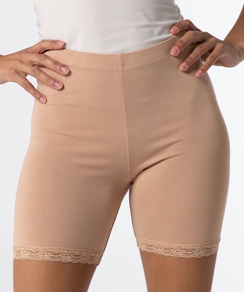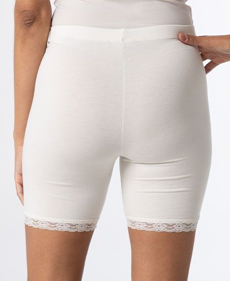 Deze zachte shorts zijn absoluut onmisbaar voor iedereen die van rokken en jurkjes houdt. Waar we in de wintermaanden dankzij panty’s en leggings geen last hebben van schurende bovenbenen, is dat in de zomermaanden helaas een ander verhaal. Dankzij biker shorts kun je jouw blote benen showen onder je jurk of rok zonder dat je vervelende schuurplekken krijgt tijdens het lopen. Bij Norah vind je fijne witte en zwarte basic shorts met voldoende stretch. Houd je van een vrouwelijke touch? Kies dan een variant die vrolijk is versierd met kant.