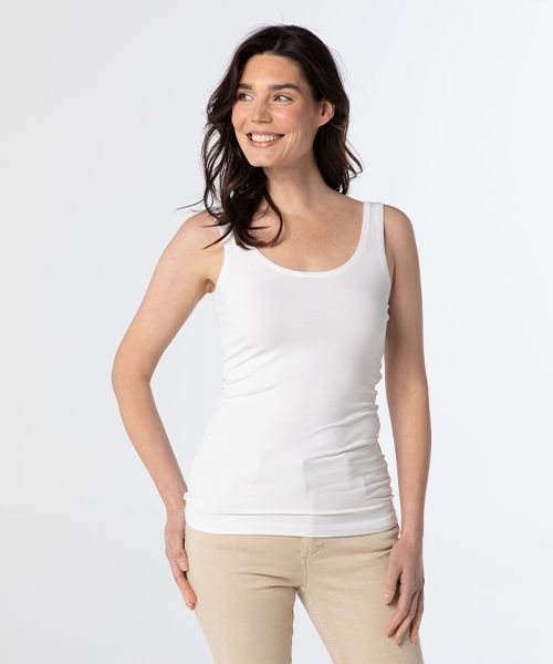 Basis tops zijn het hele jaar door onmisbaar en in de warme maanden grijpen we het liefst naar de lichte (trend)kleuren. Een fijne optie is onze Marianne top: gemaakt van zacht viscose wat je overdag heerlijk koel houdt en voorzien van genoeg stretch om je lichaam mooi te omhullen. Deze tops zijn perfect om te dragen onder een (doorschijnende) blouse of draag ‘m onder een luchtig vest of spijkerjas.