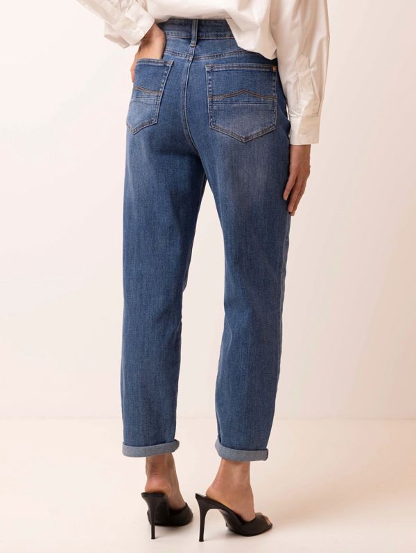 Deze high waist 5-pocket boyfriend fit jeans met rits- en knoopsluiting is een tijdloze denimstijl.