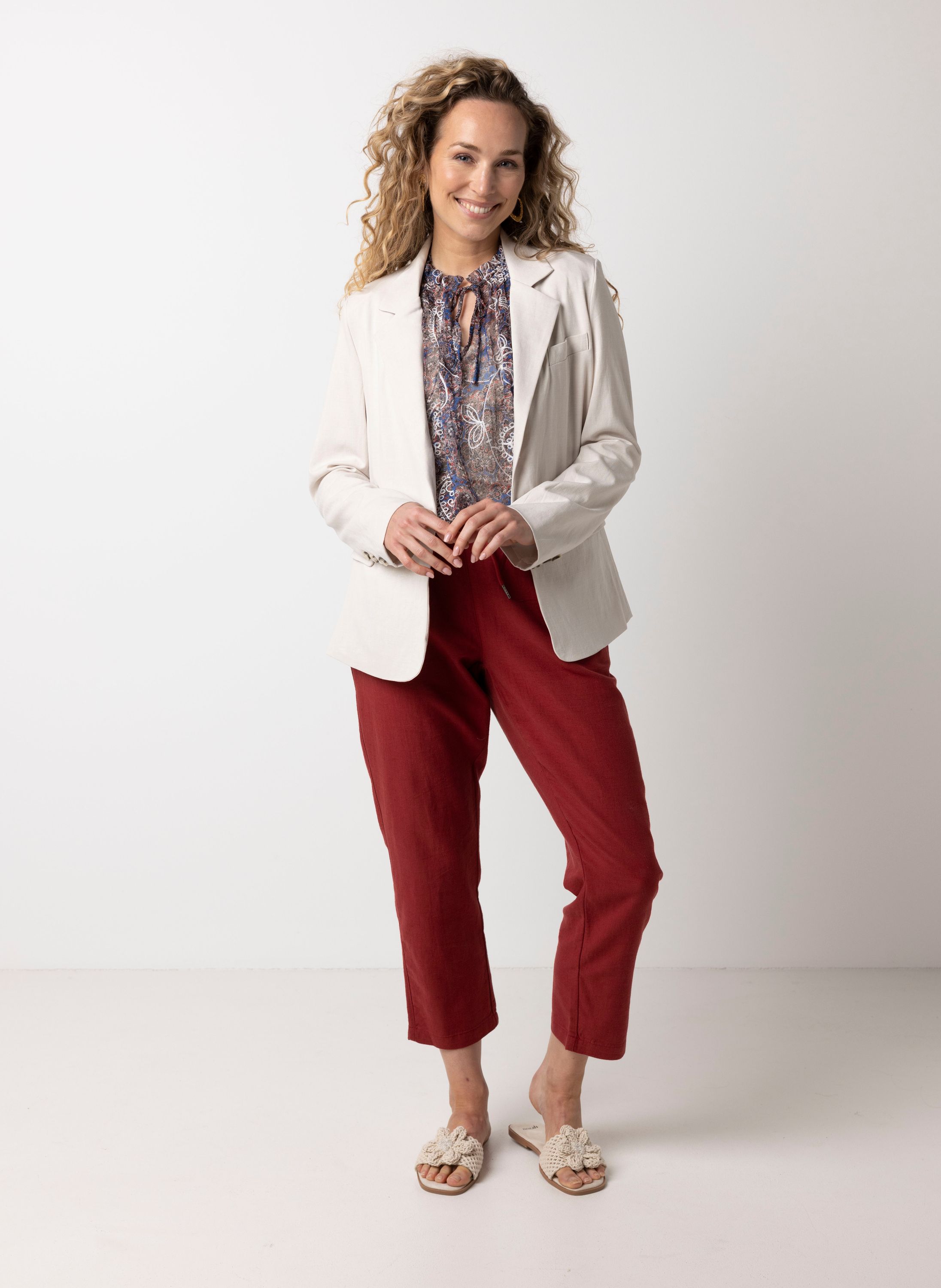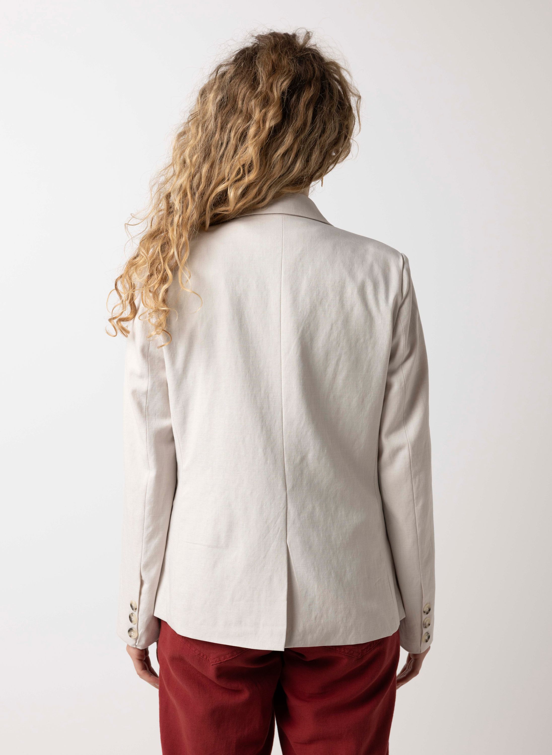 Deze blazer met reverskraag, lange mouwen, knoopsluiting en decoratieve zakken heeft een subtiele glans door het lurexdraad voor een elegante uitstraling.