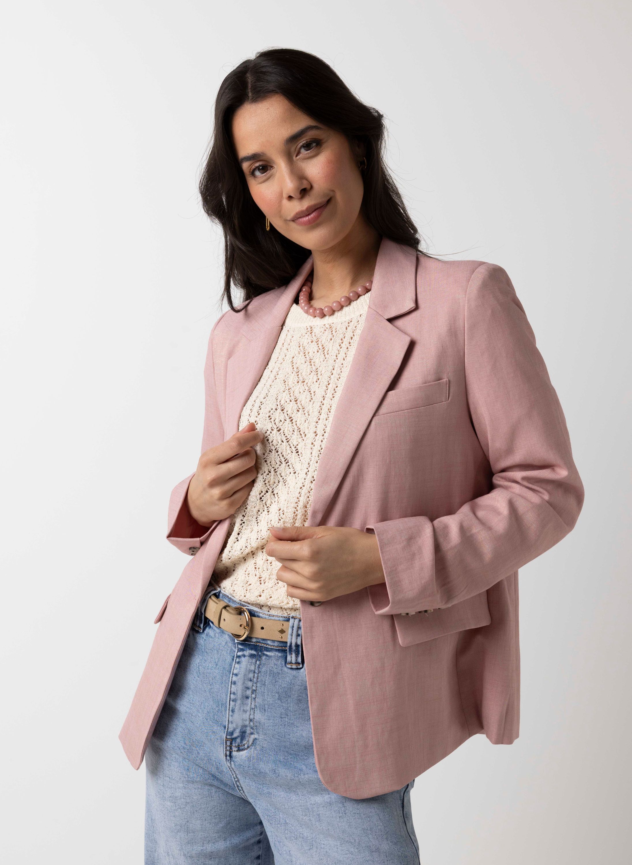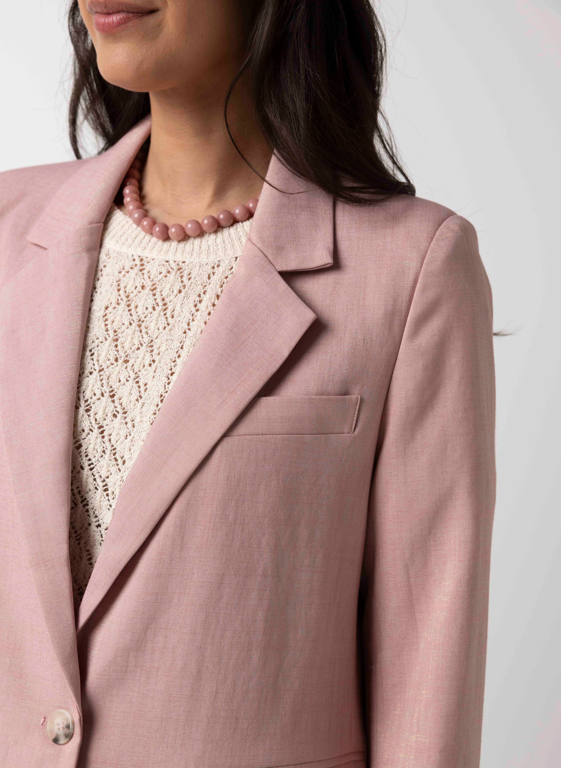 Deze blazer met reverskraag, lange mouwen, knoopsluiting en decoratieve zakken heeft een subtiele glans door het lurexdraad voor een elegante uitstraling.