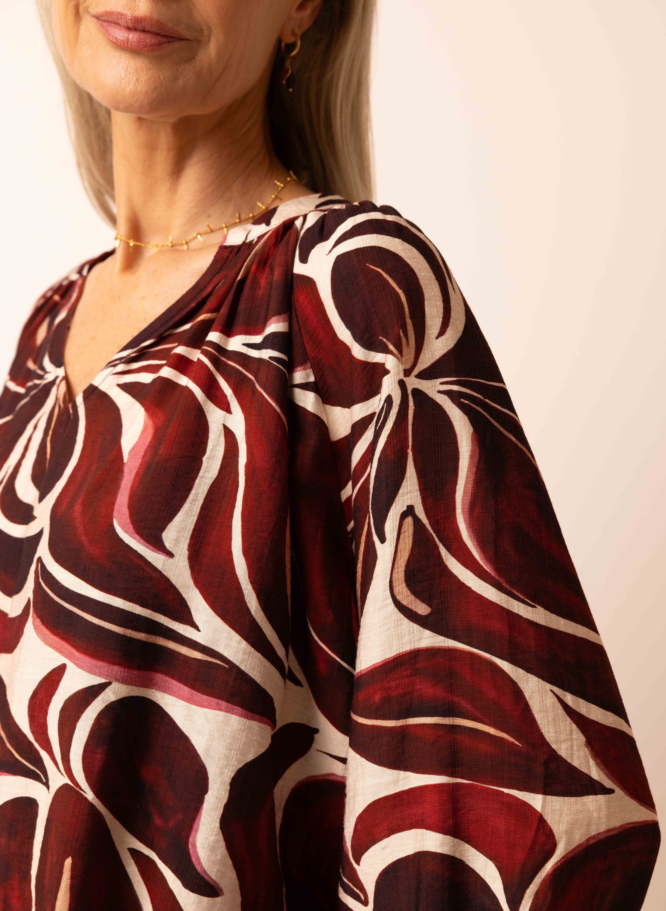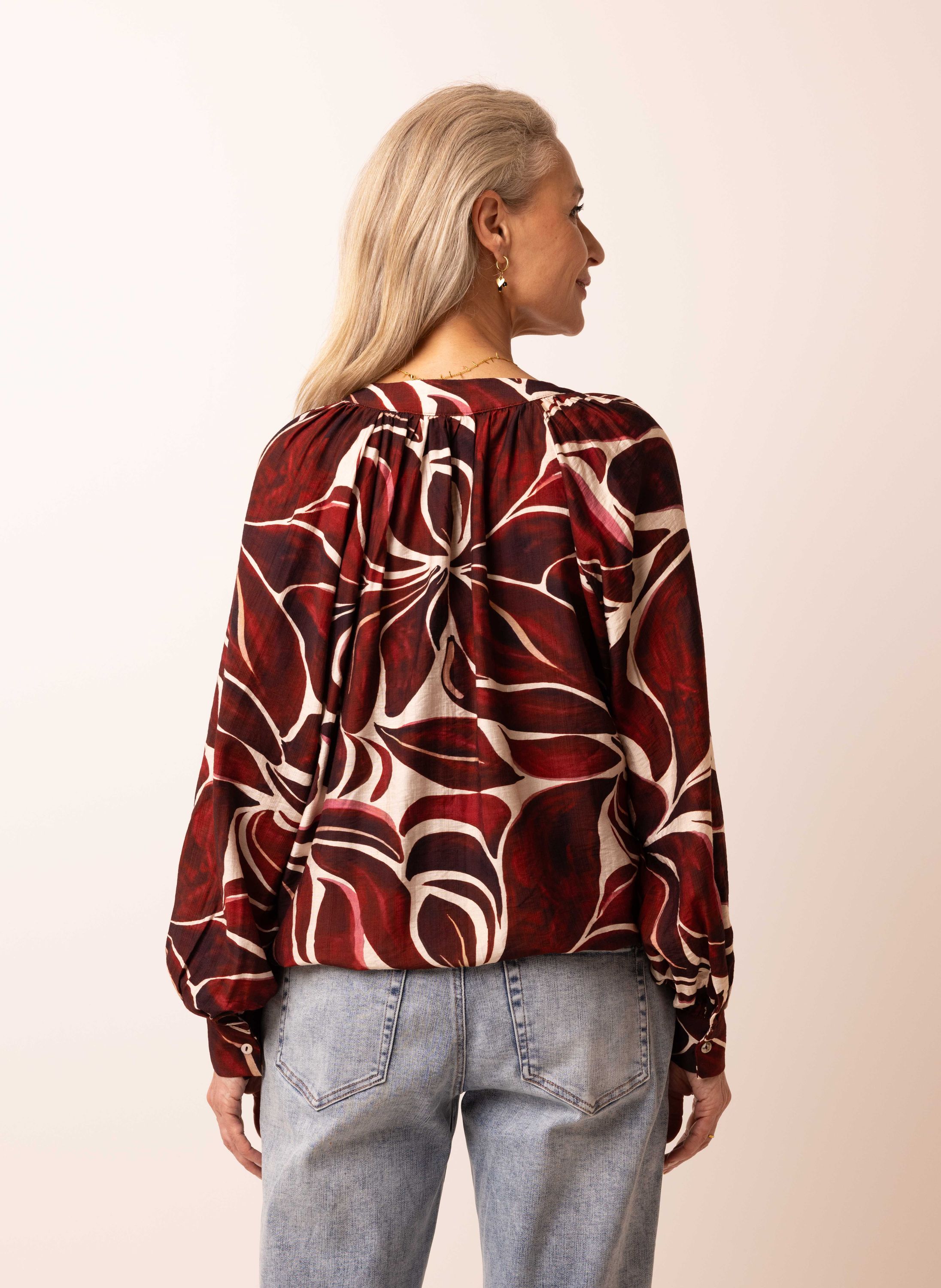 Bordeaux blouse met bloemenprint
