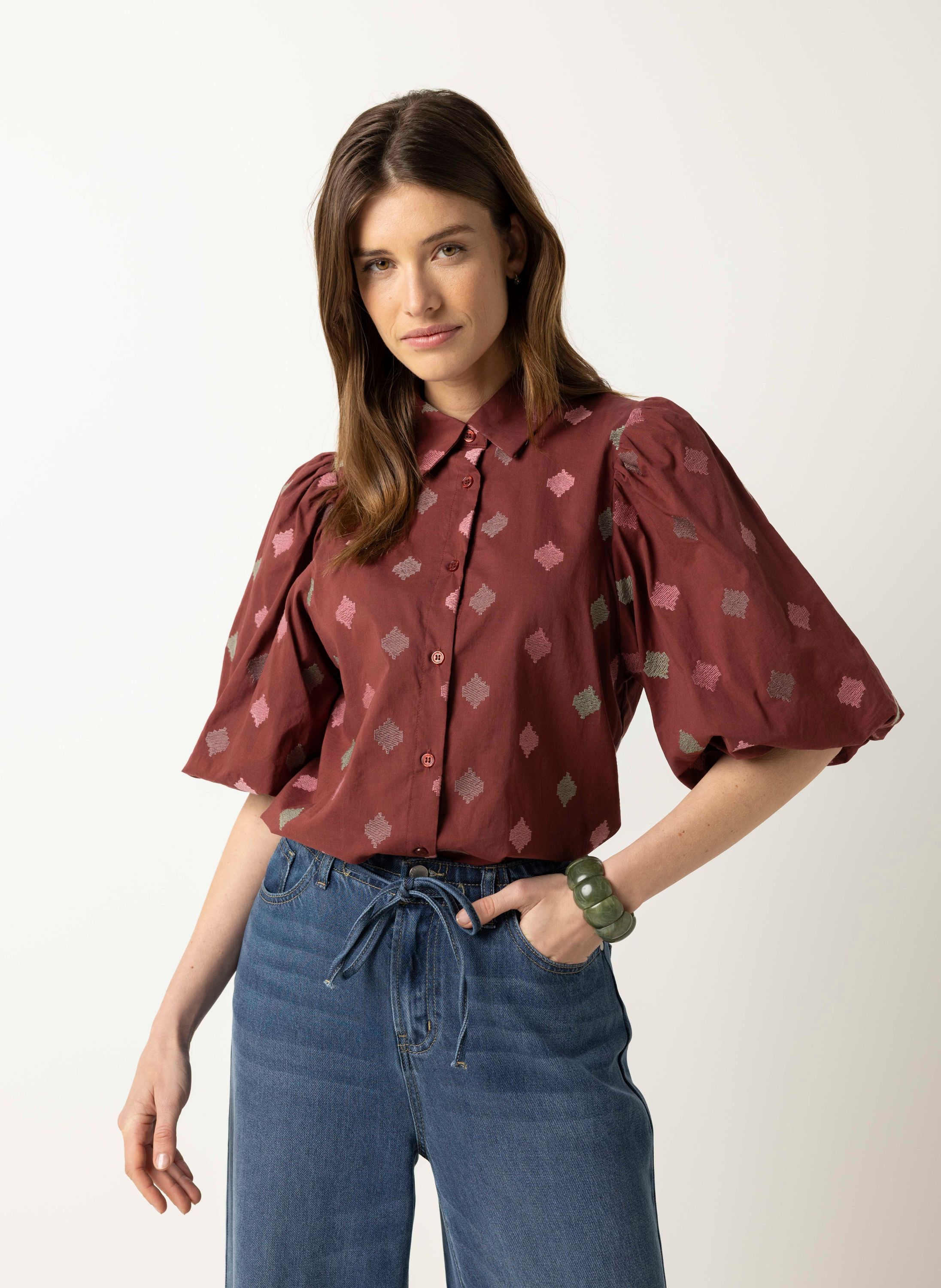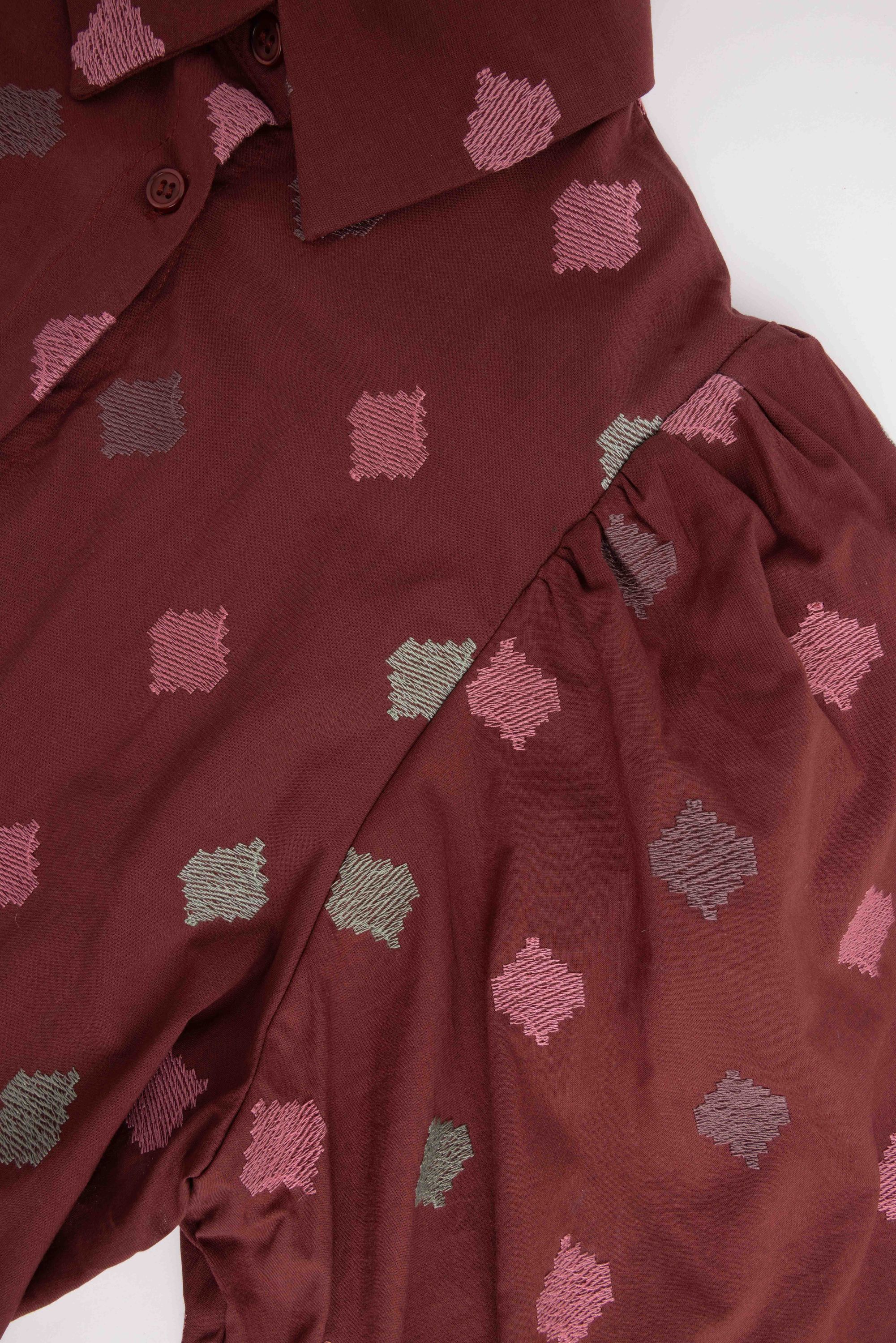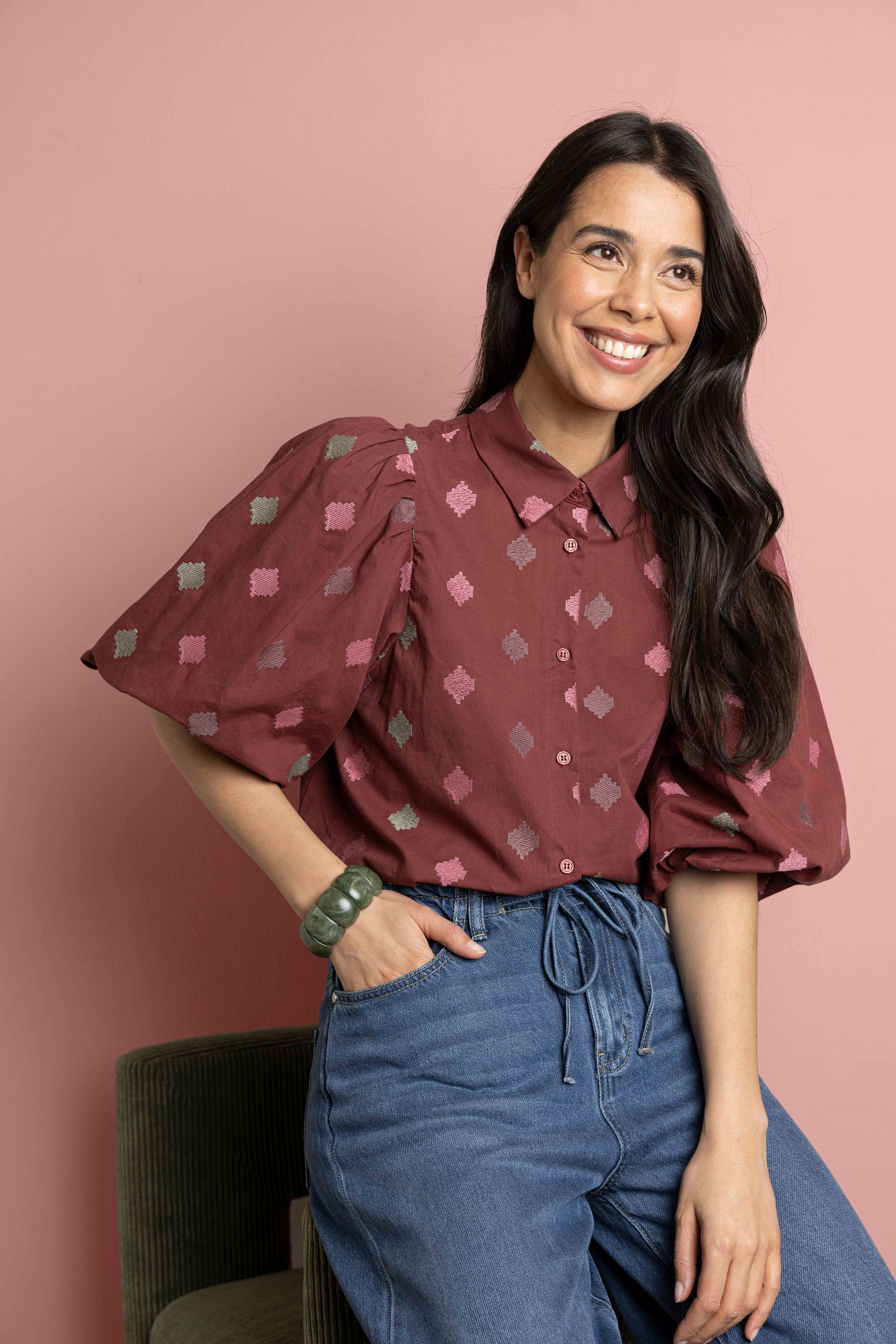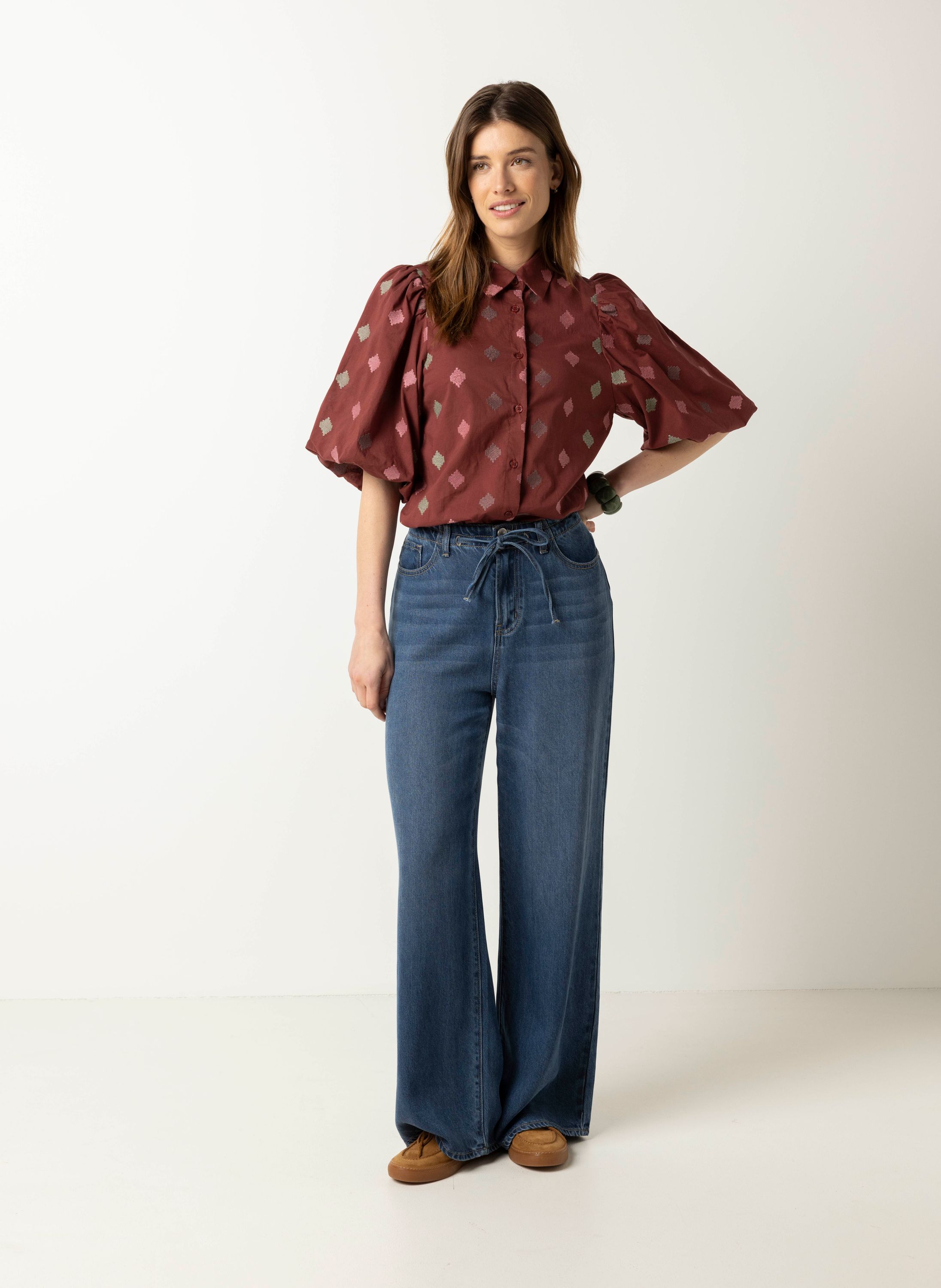 Bordeaux blouse met borduursels