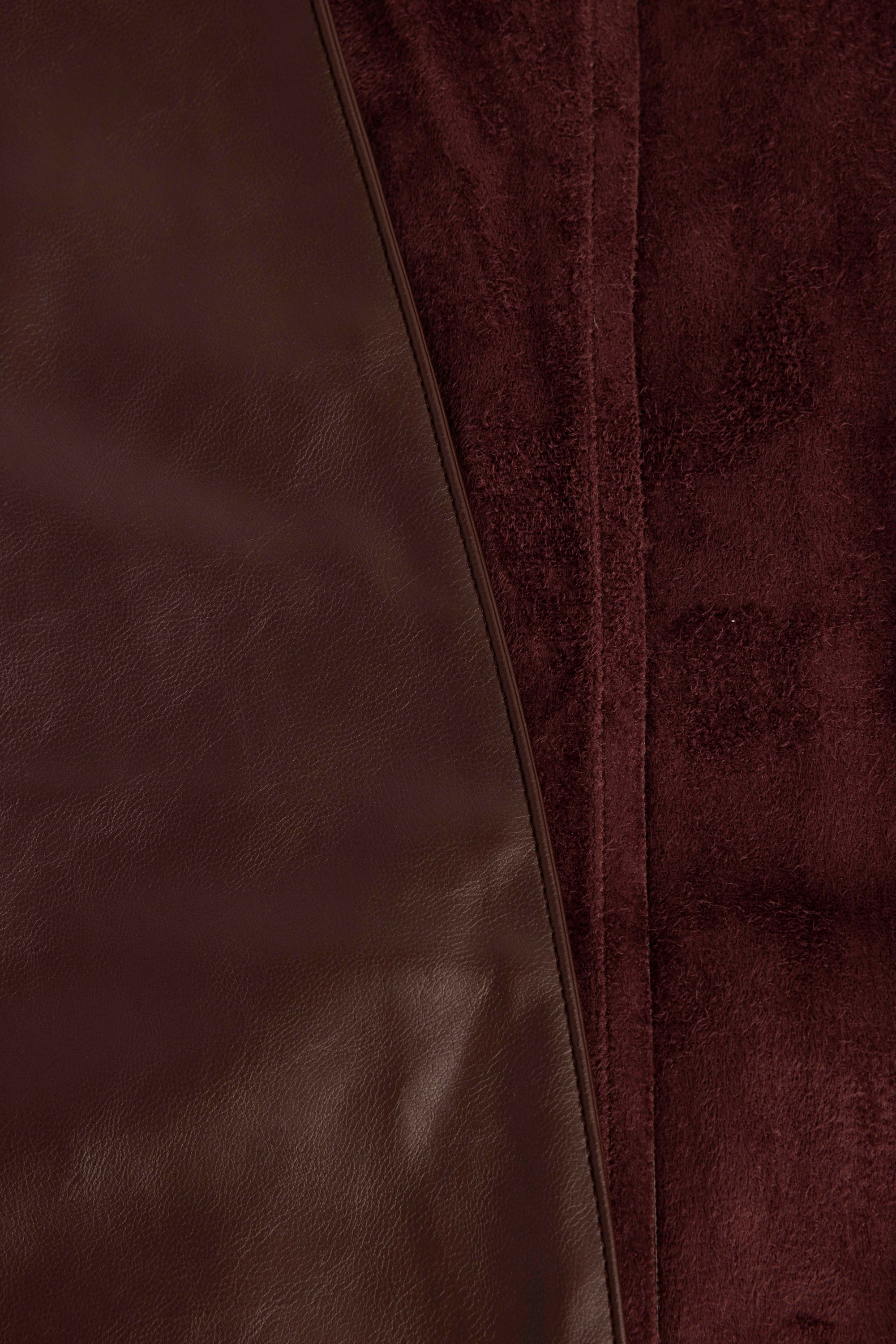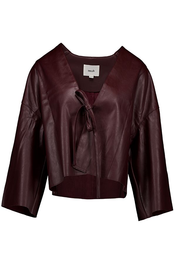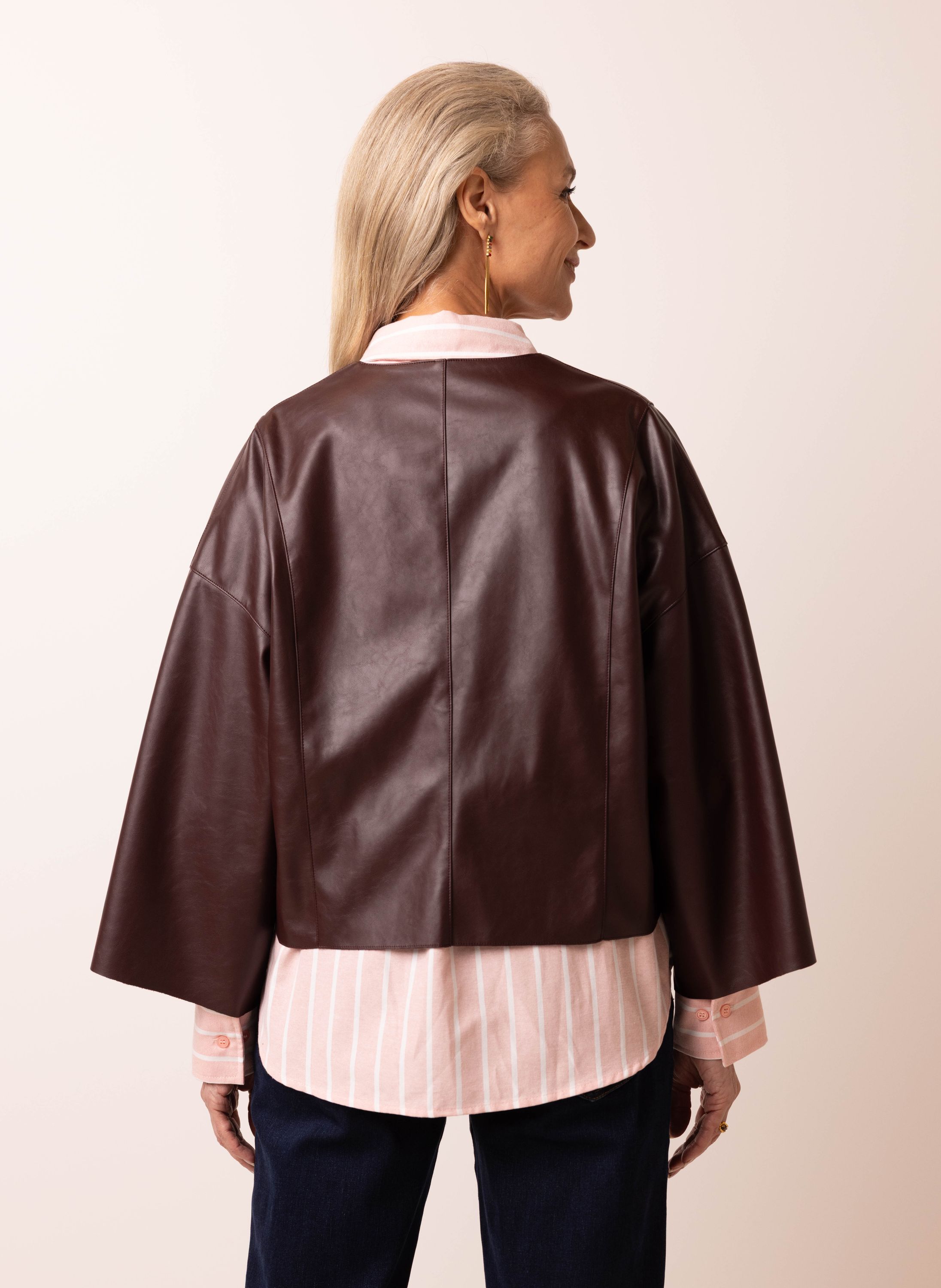 Dit jasje van imitatieleer heeft een striksluiting aan de voorzijde voor een vrouwelijke uitstraling. Het jasje heeft lange mouwen en een soepele look, waardoor het gemakkelijk te combineren is over een blouse of top.