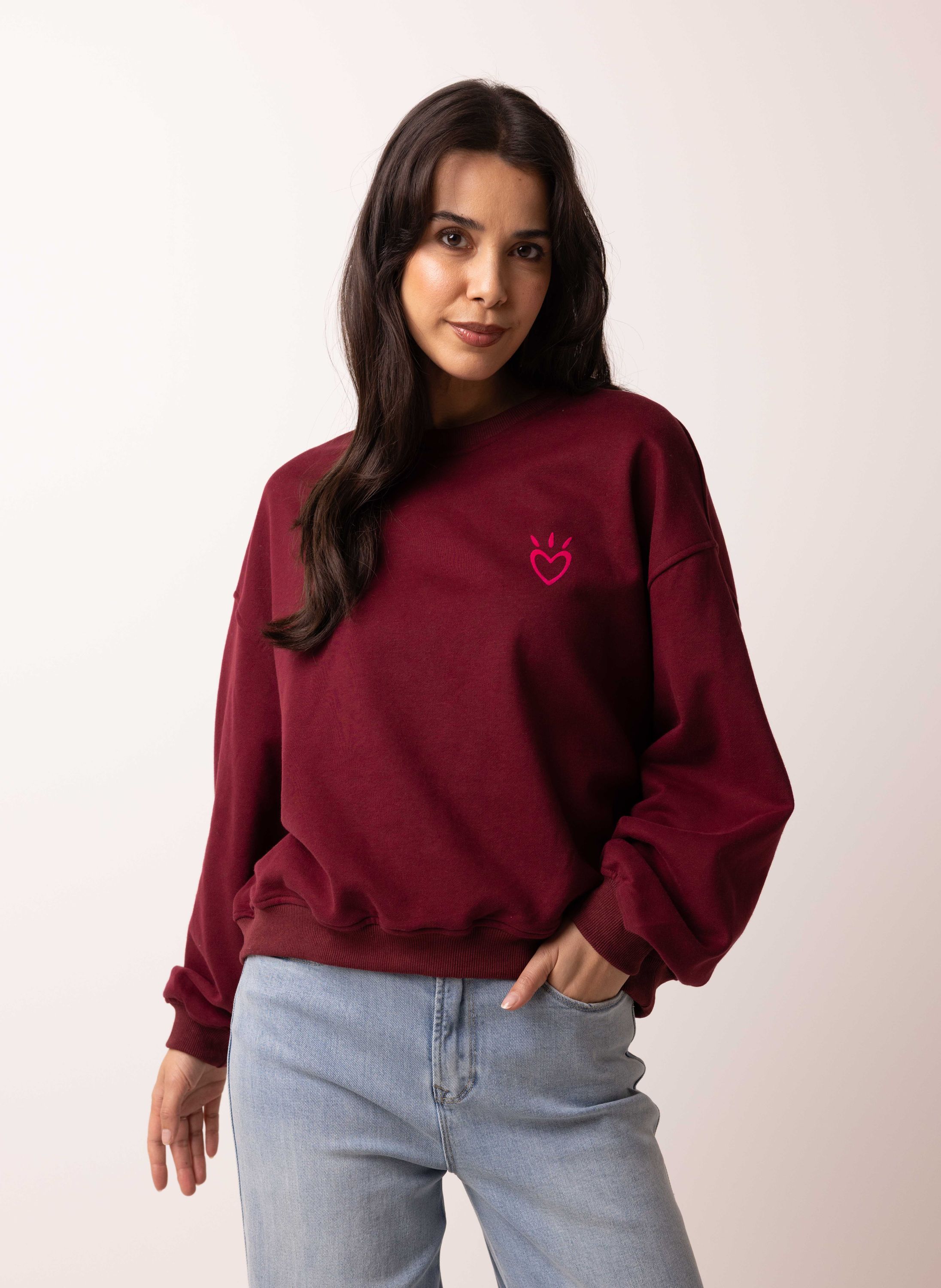 Deze sweater met ronde hals heeft lange mouwen en een print op de achterzijde.
