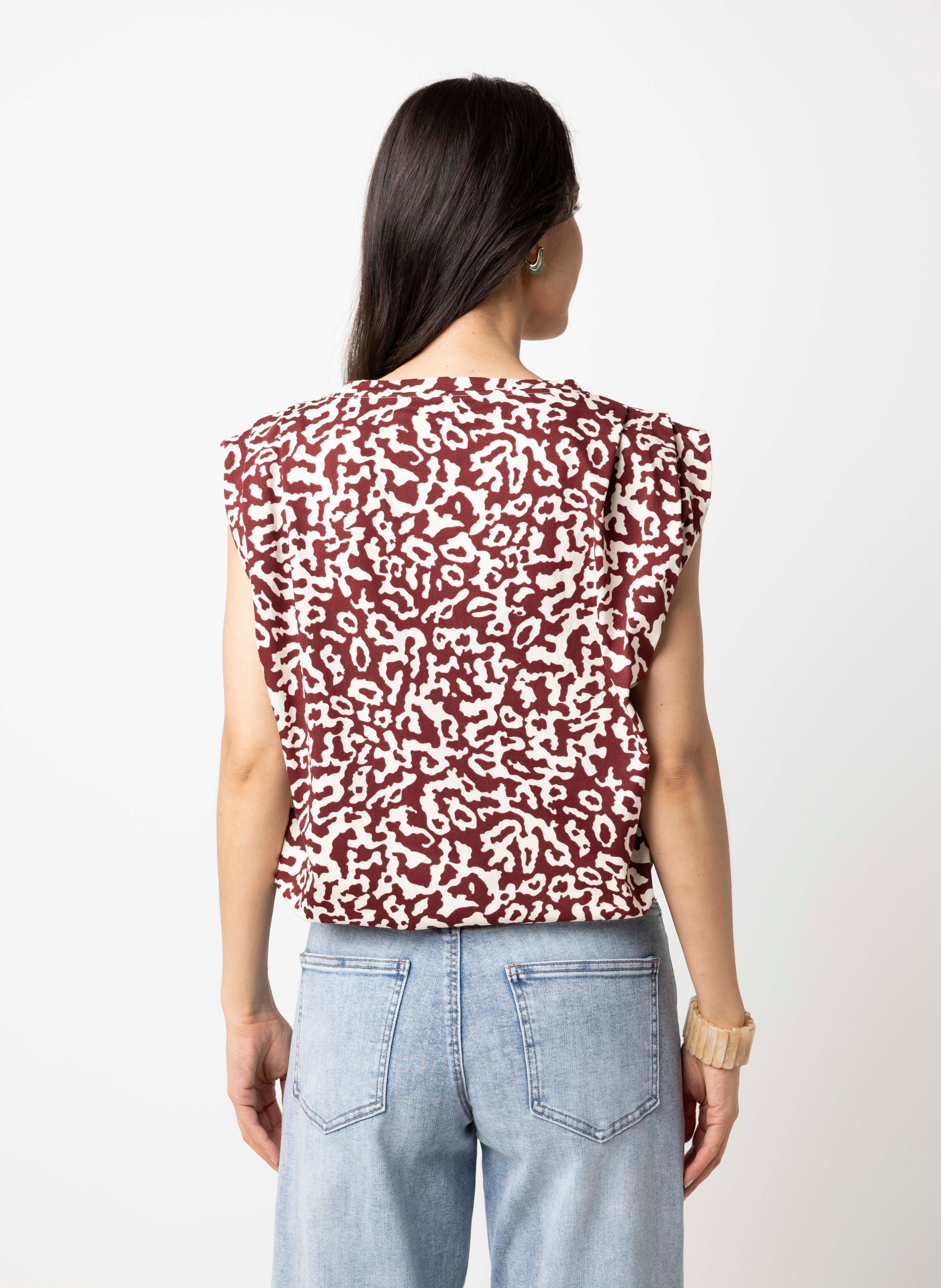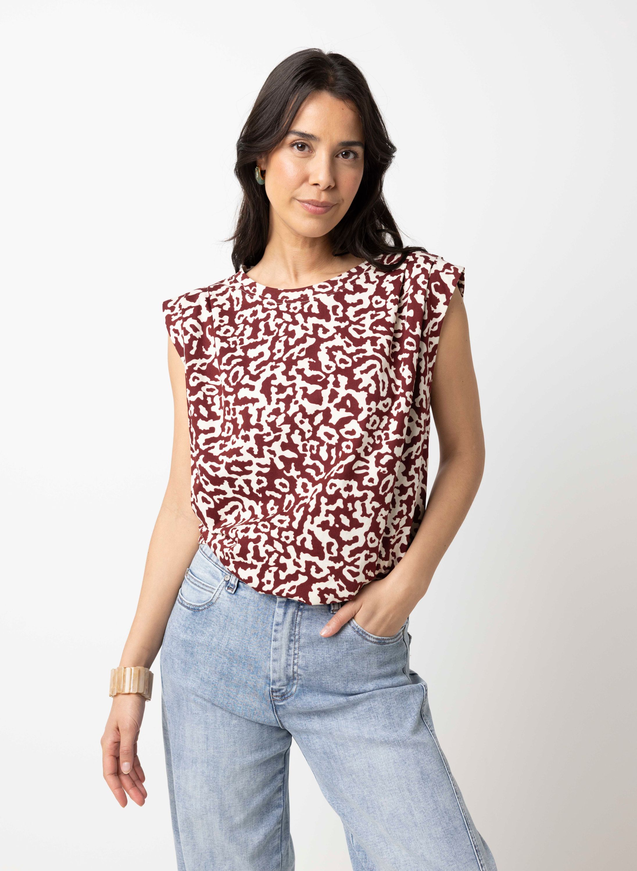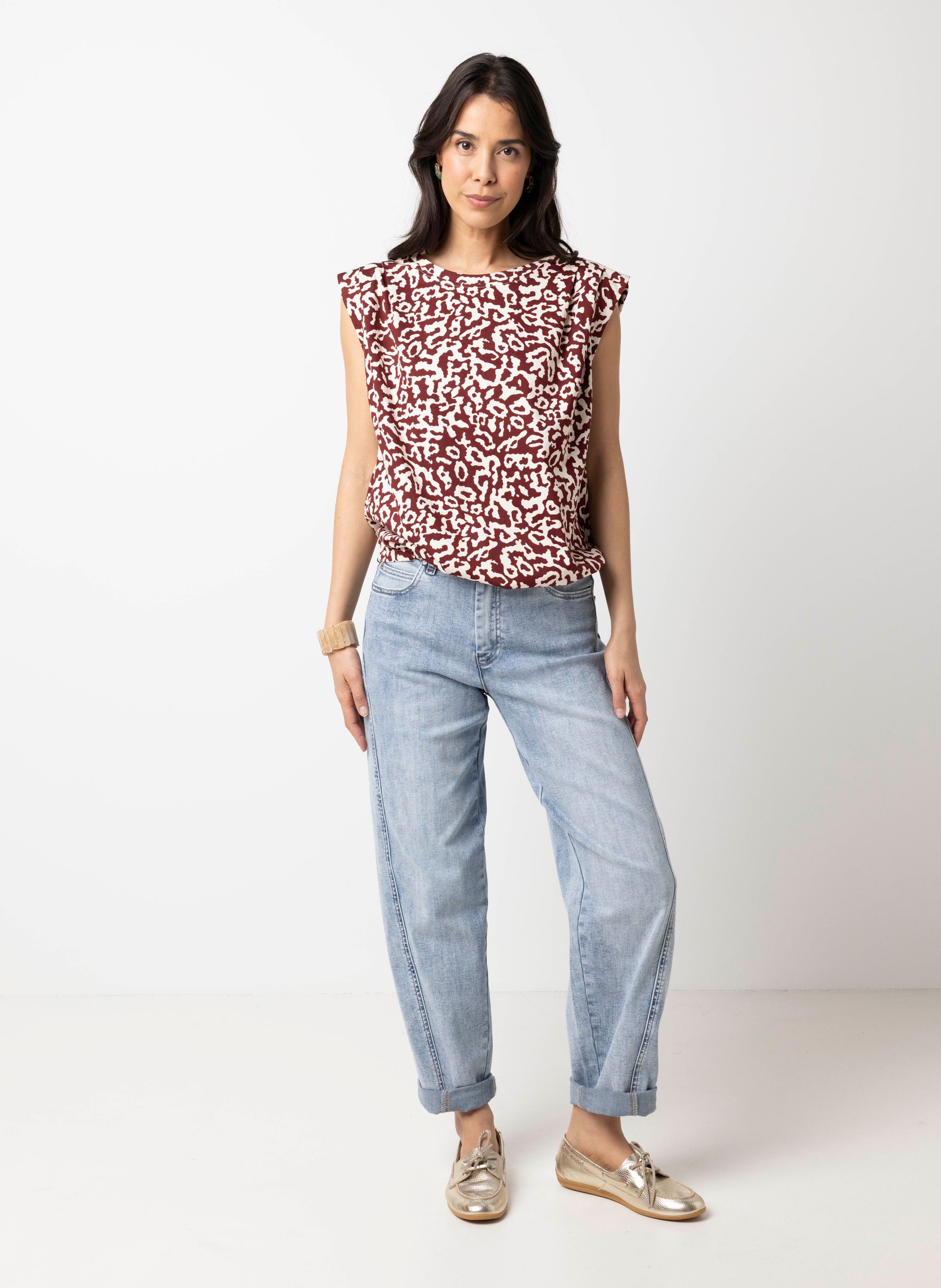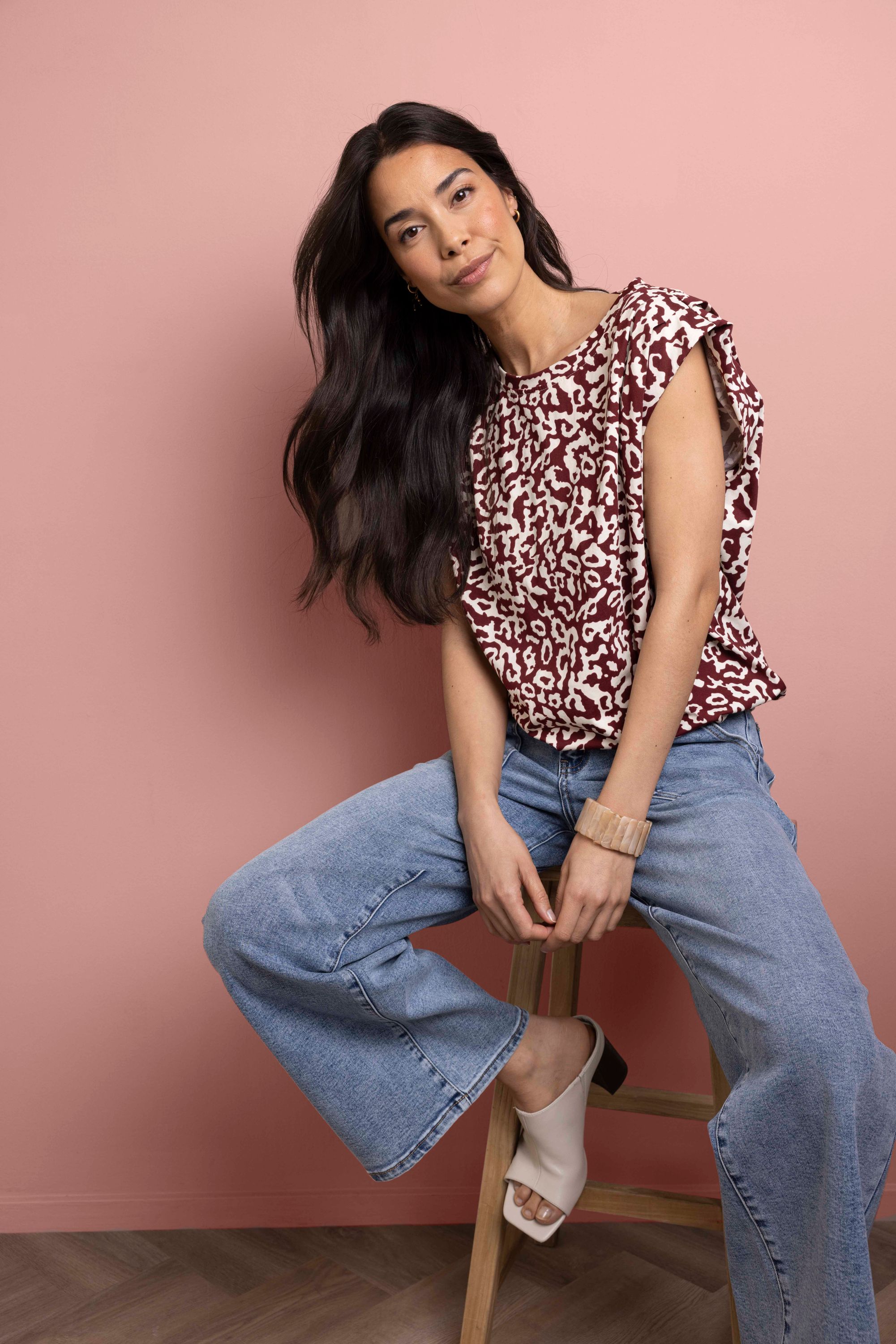 Dit shirt met ronde hals en aangeknipte korte mouwen met plooien heeft een trekkoord aan de onderzijde voor een speels detail.