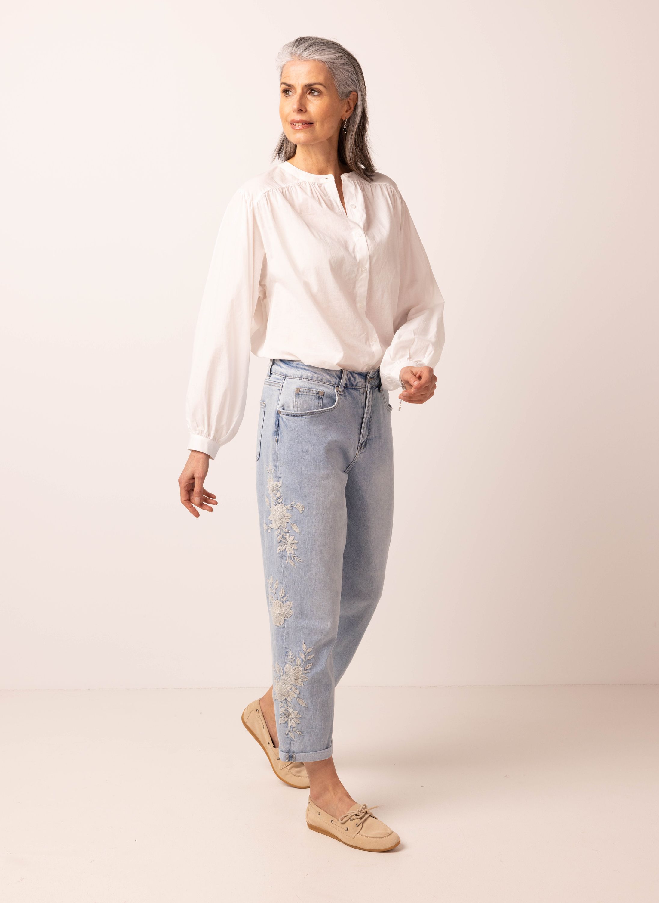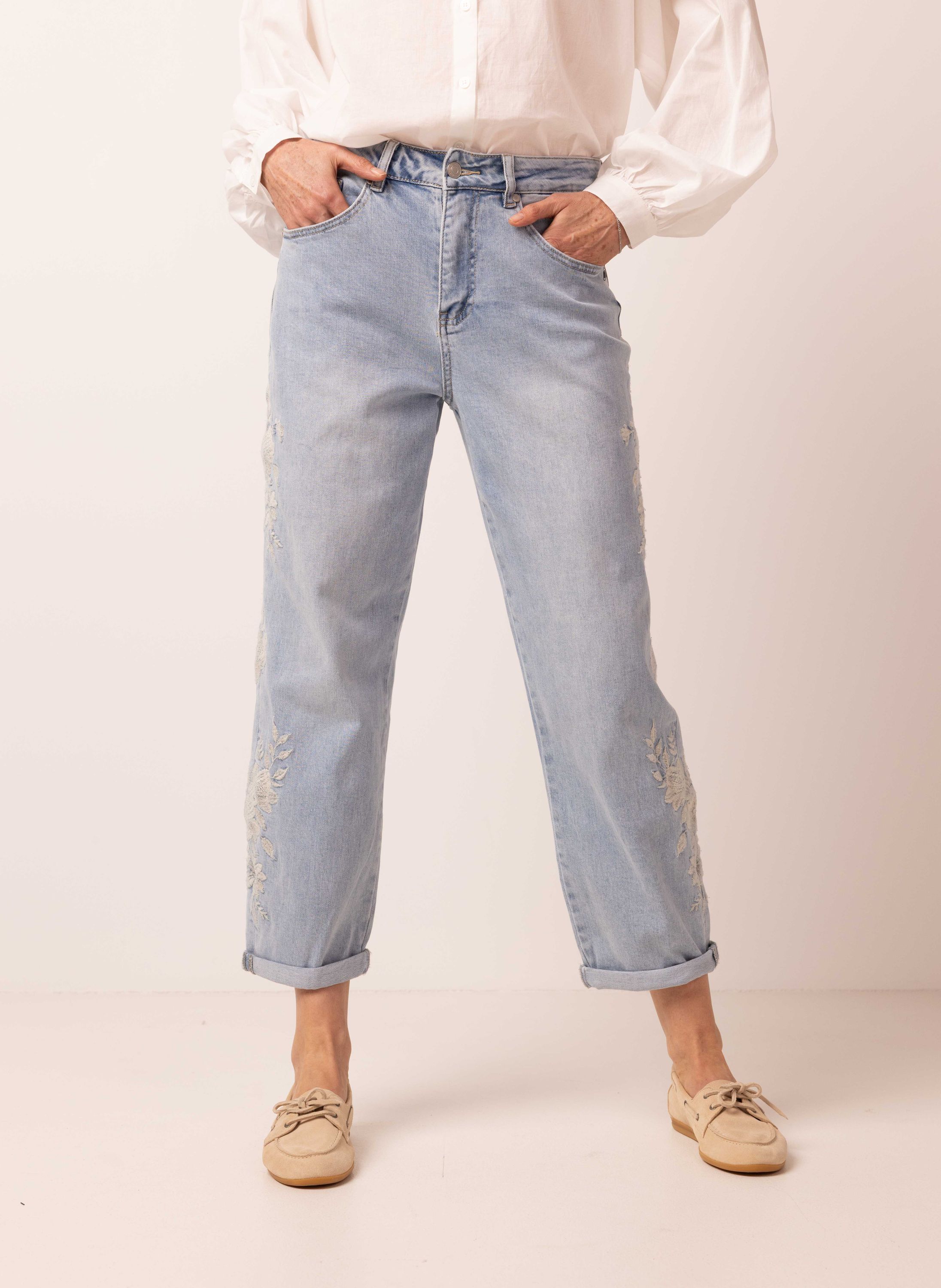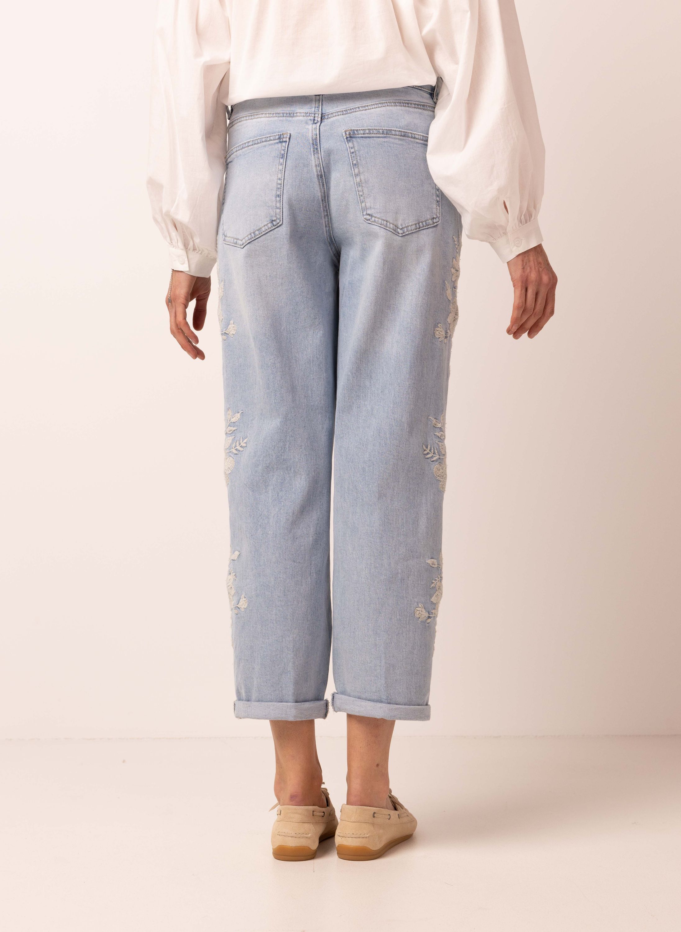 Boyfriend fit jeans | Lichtblauw | Borduursels | Cropped