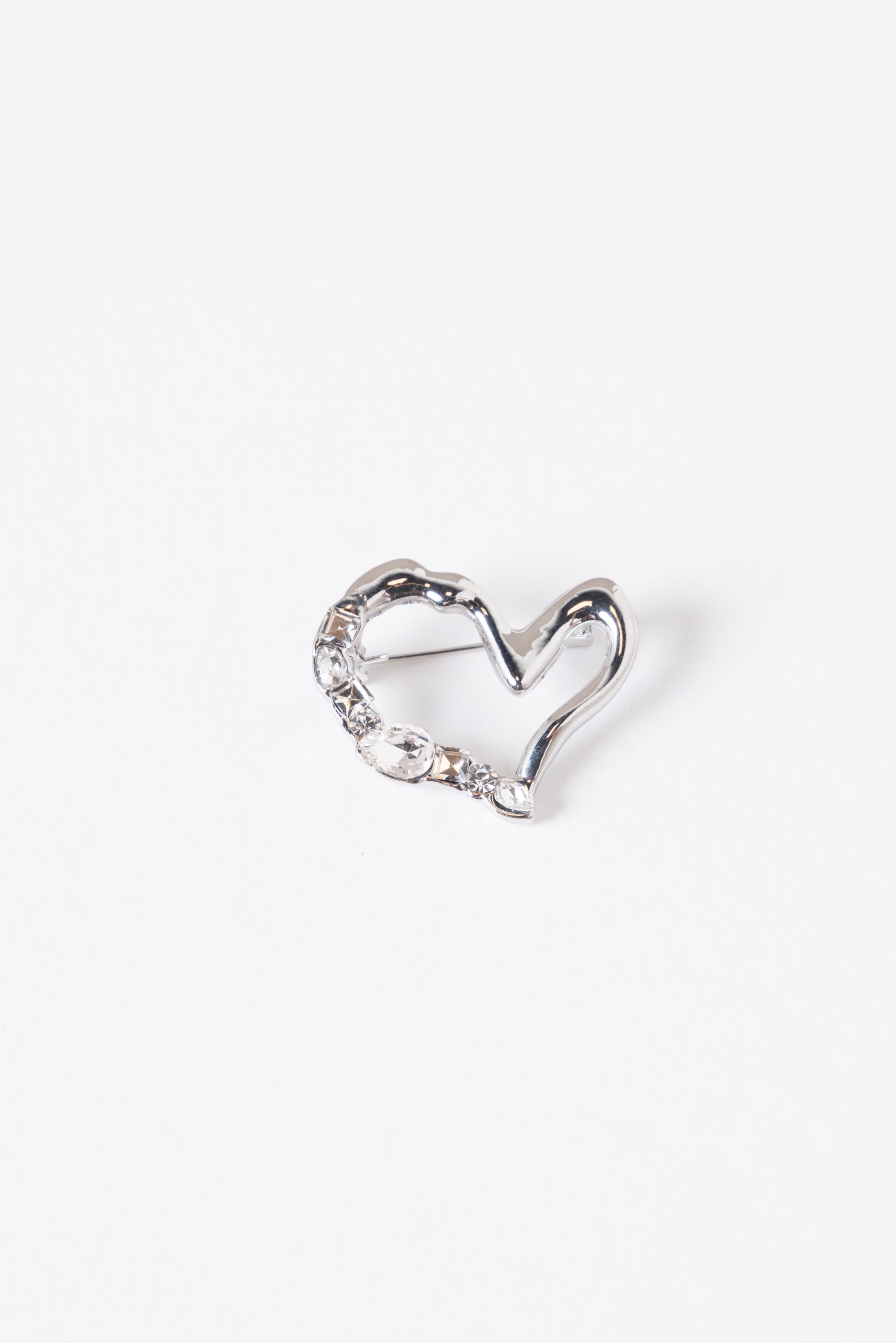 Deze broche met steentjes in de vorm van een hartje geeft je look een subtiel accent.