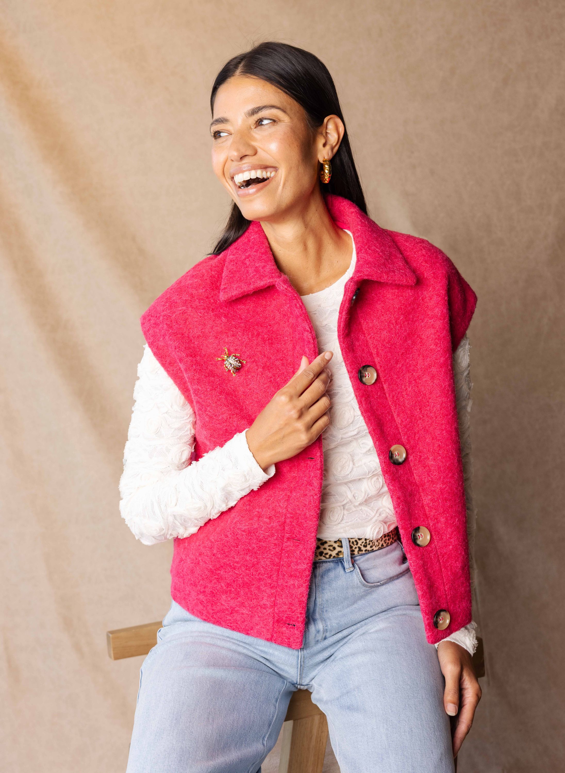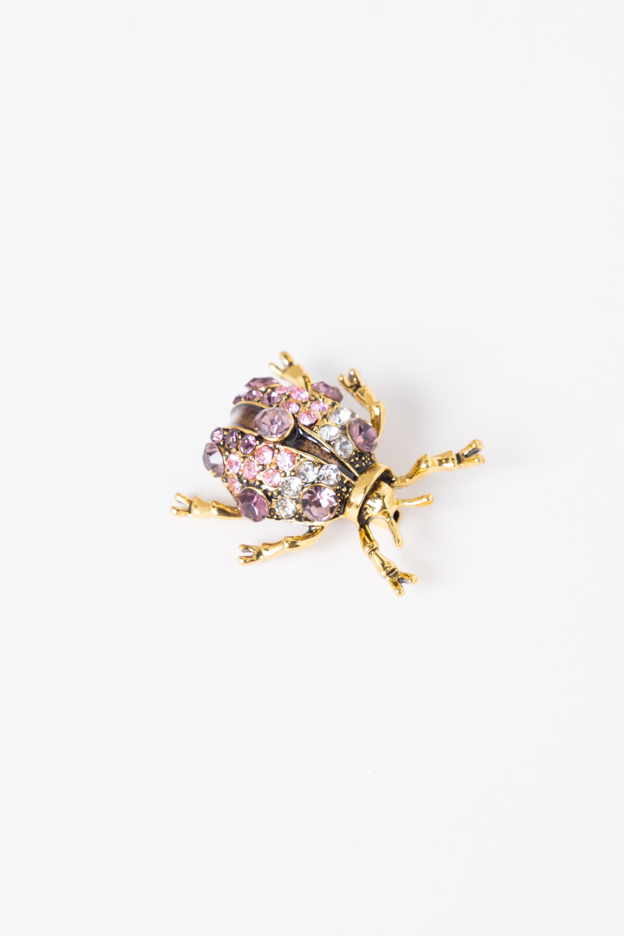 Deze broche met gekleurde steentjes in de vorm van een kever geeft een speels accent aan je look.