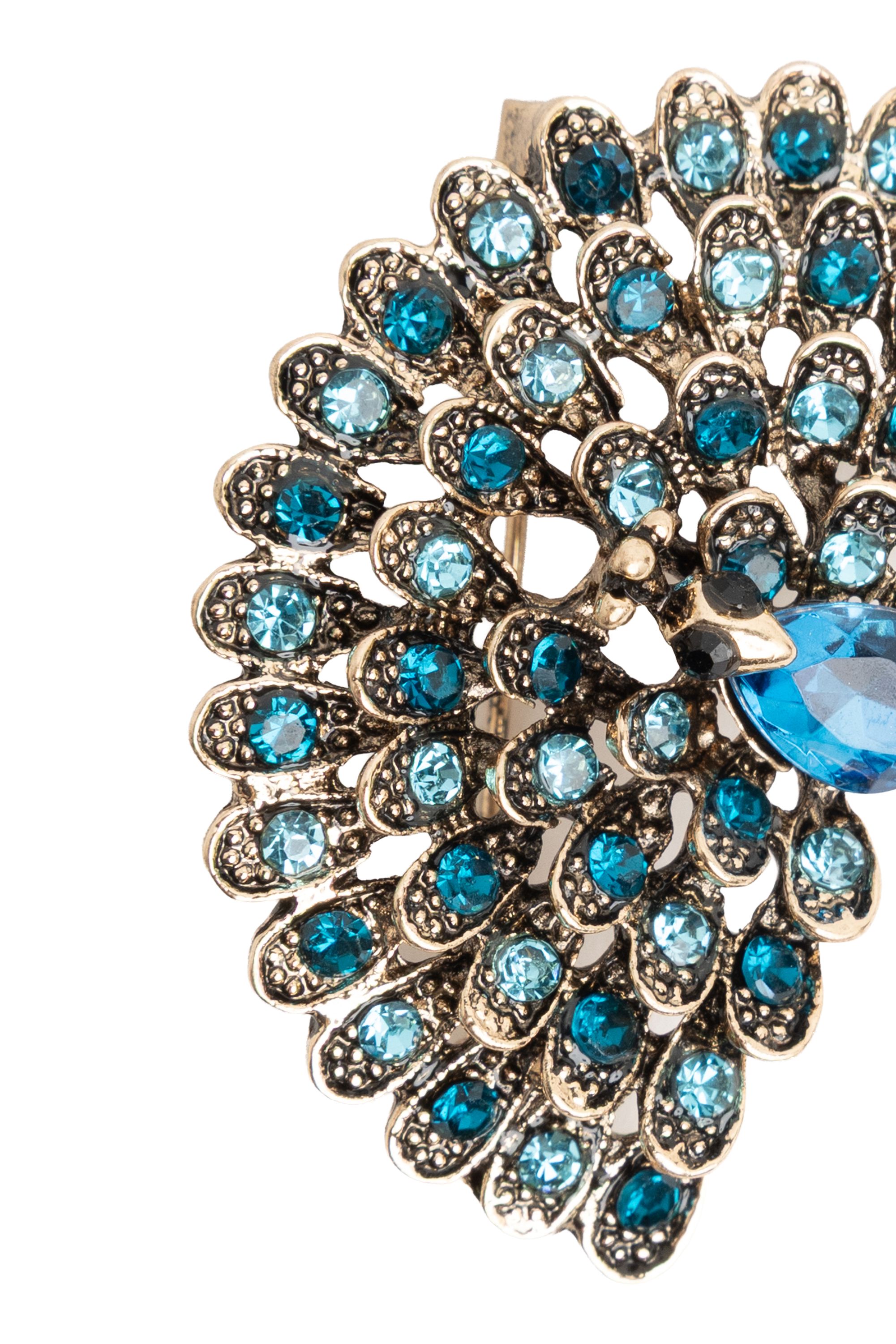 Broche in de vorm van een pauw. Afmeting: 5 cm.