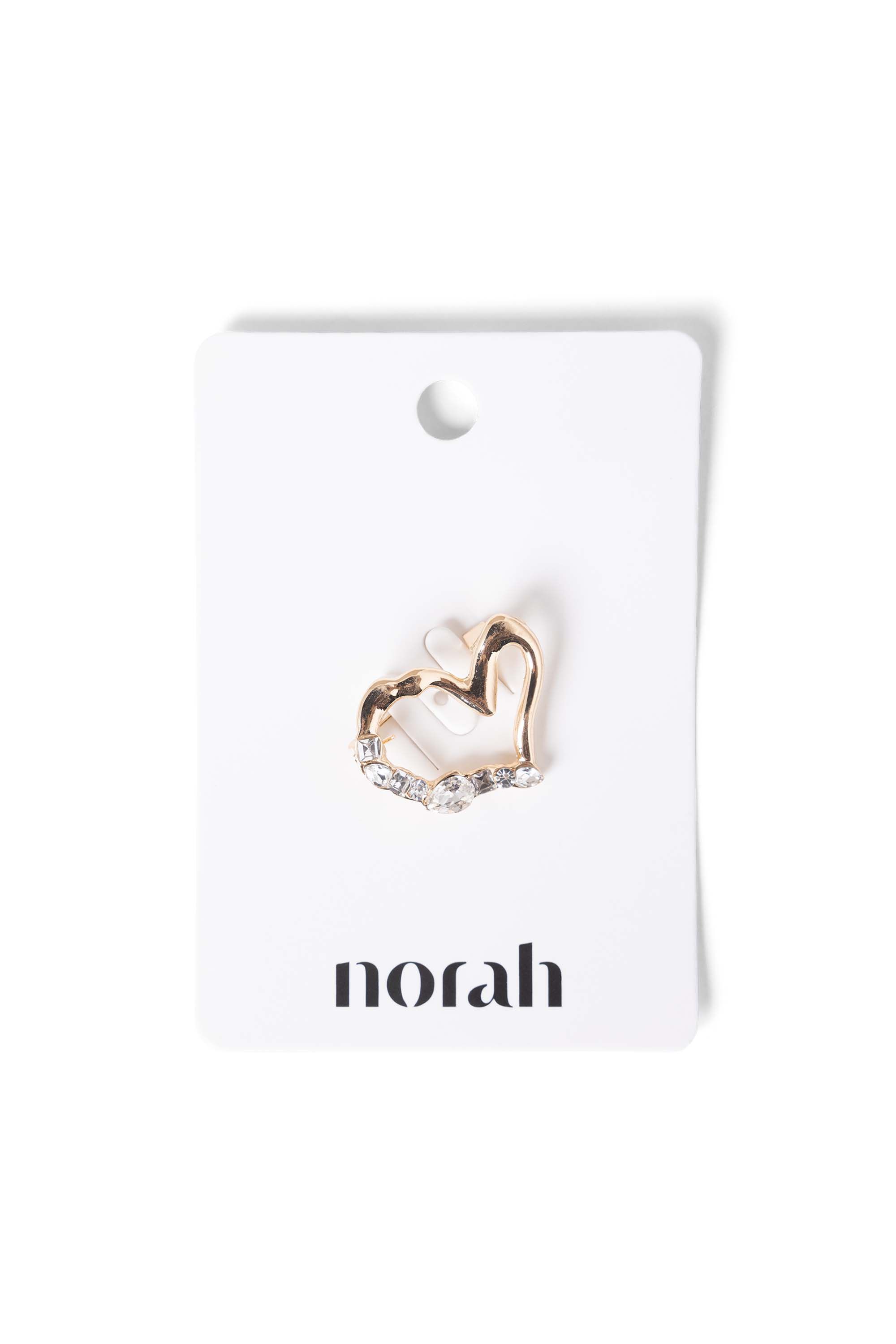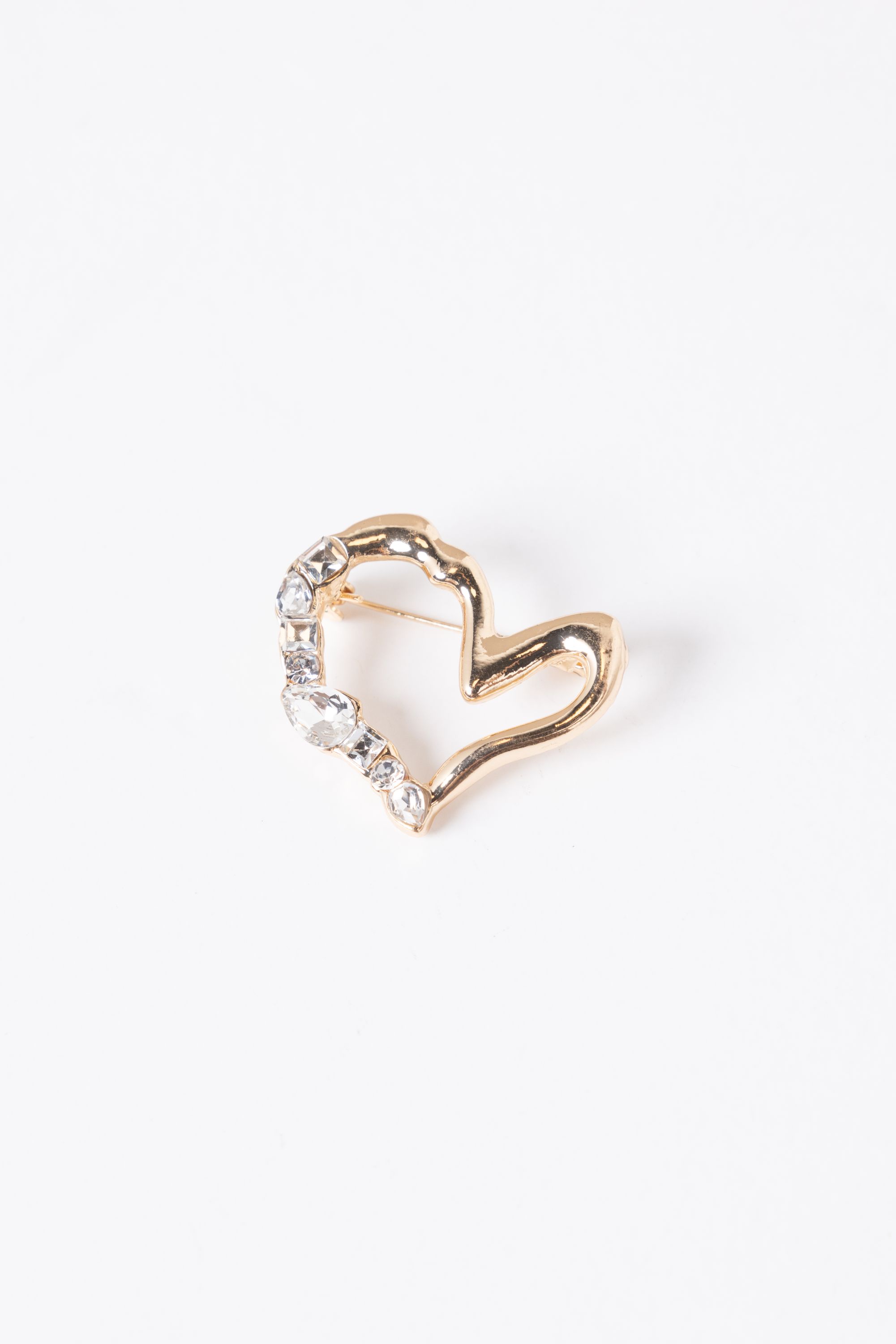 Deze broche met steentjes in de vorm van een hartje geeft je look een subtiel accent.
