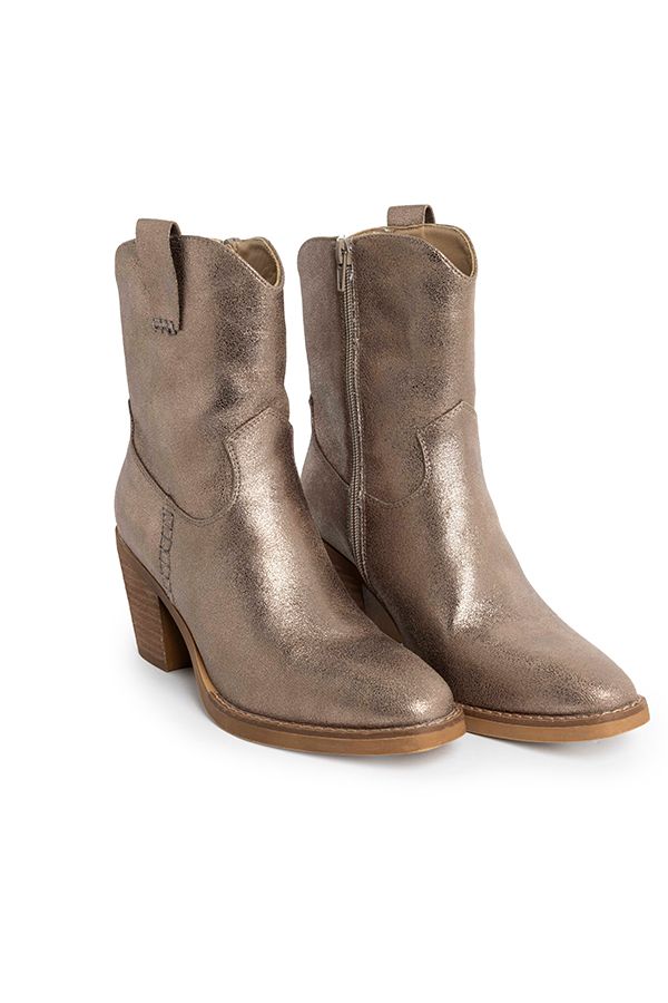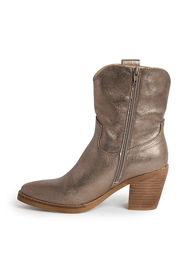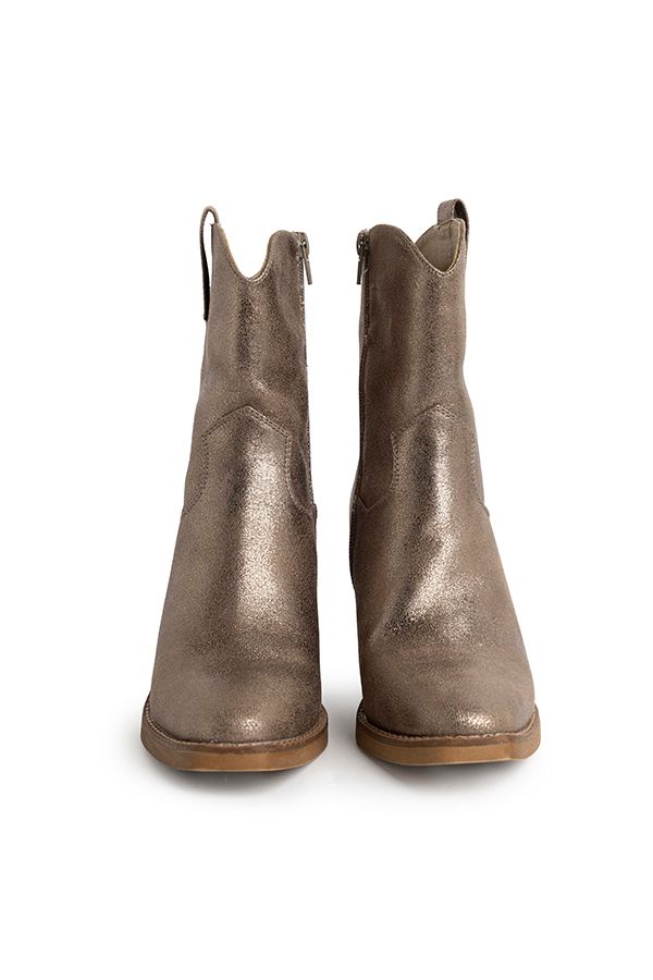 Bronzen enkellaars met blokhak