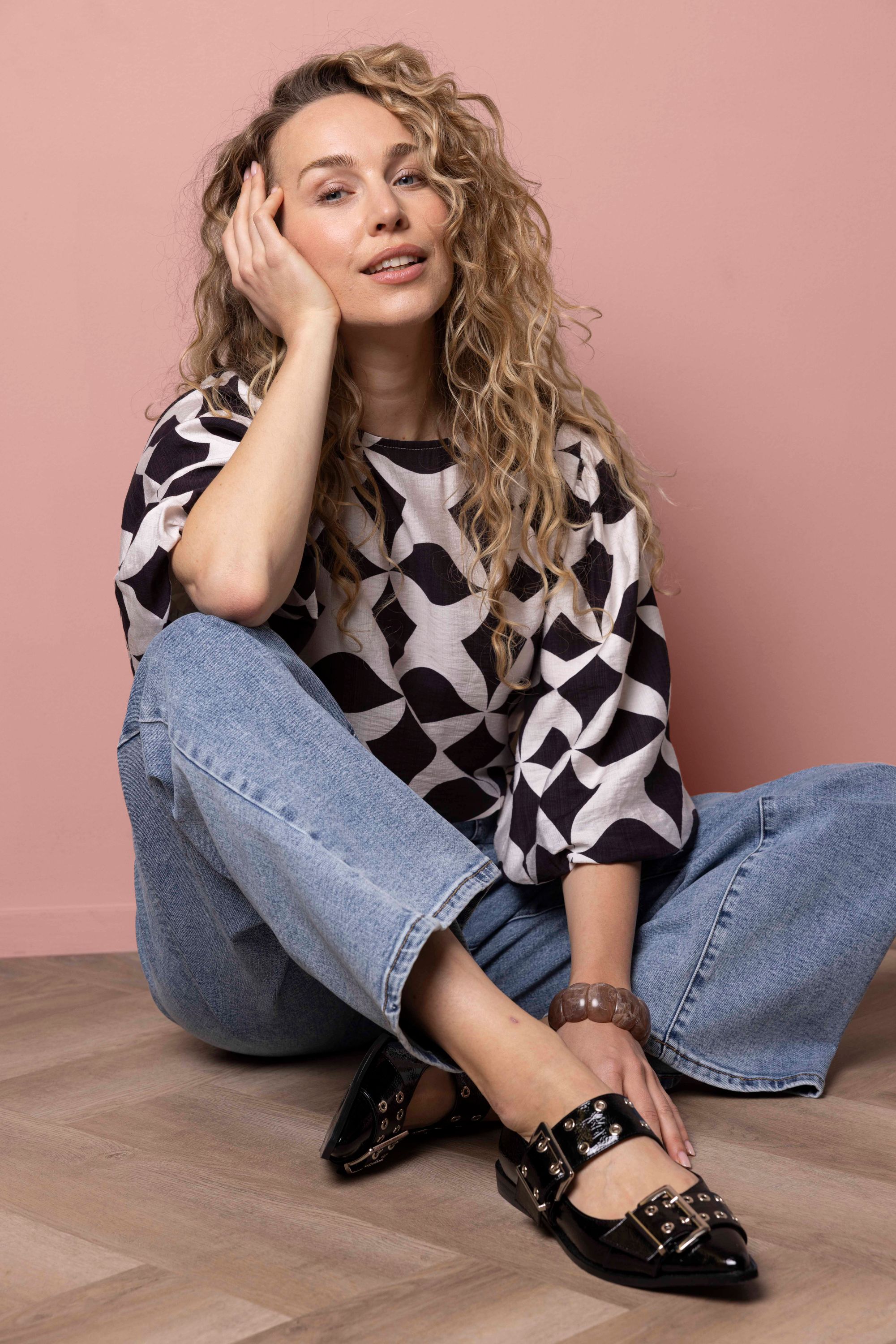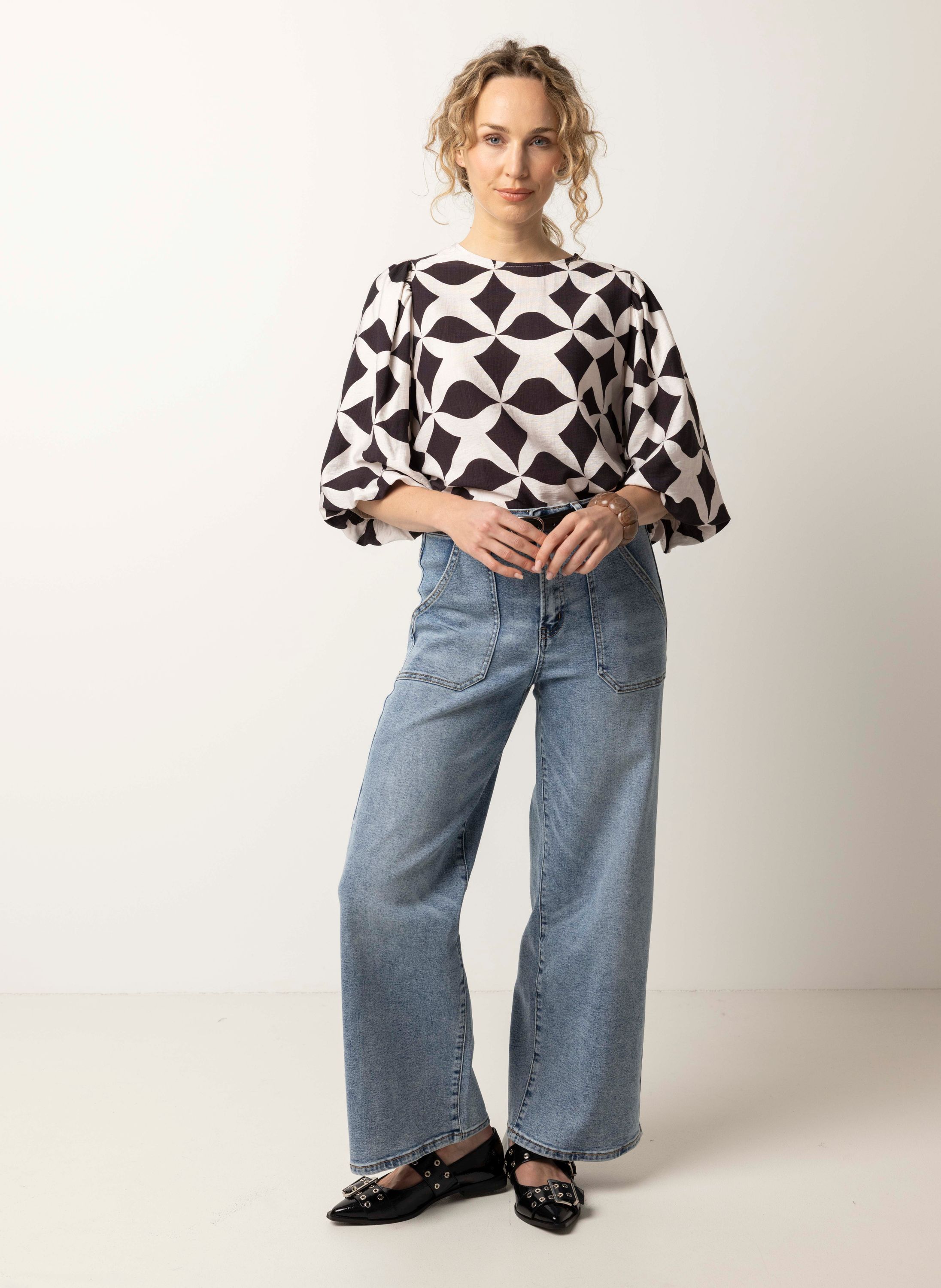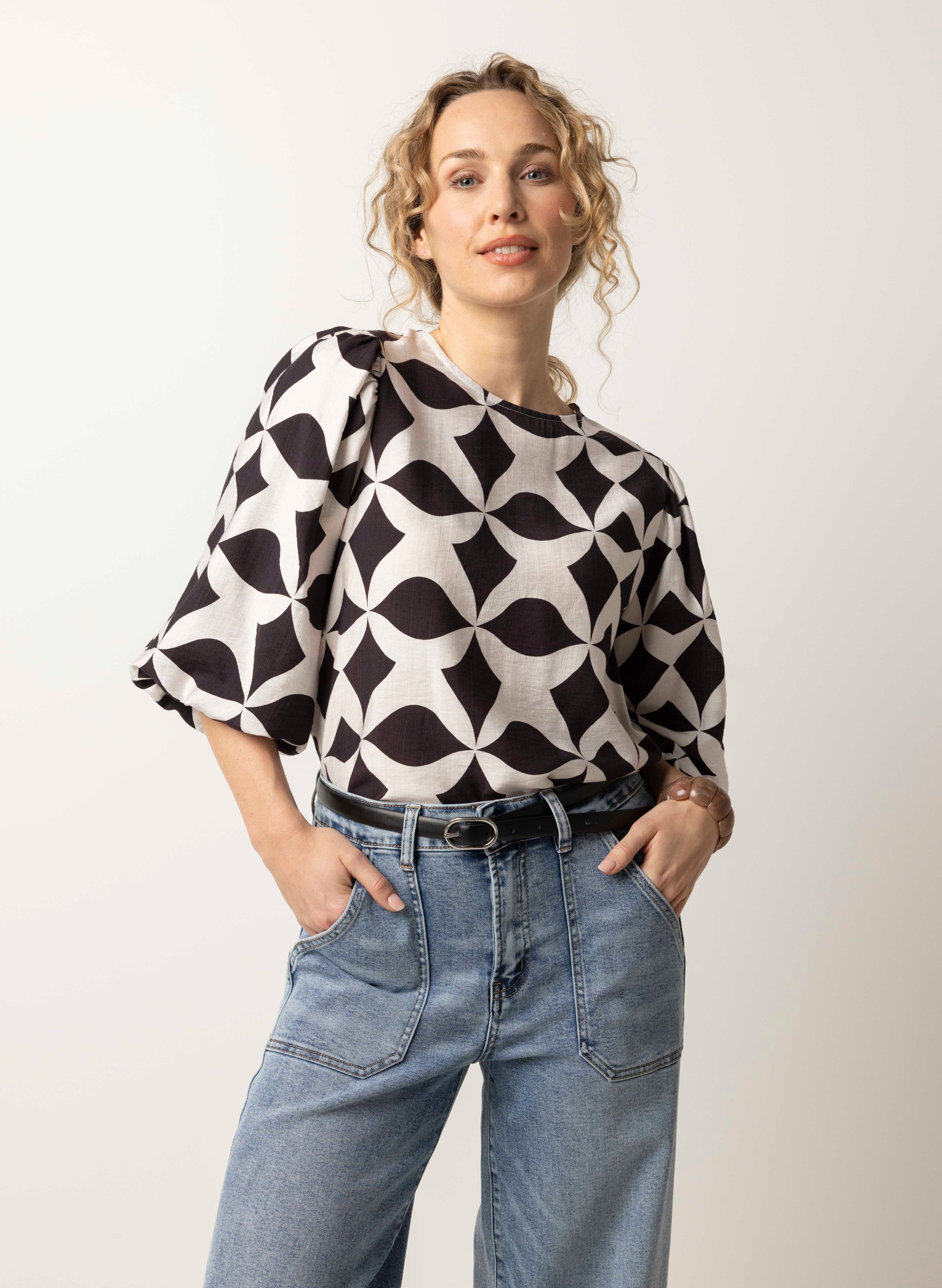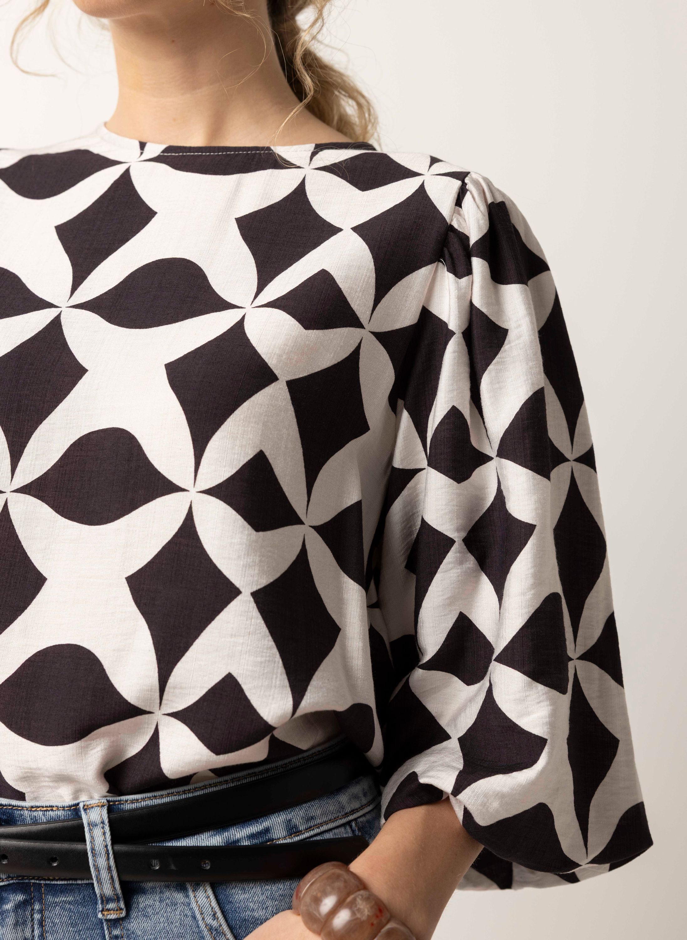 Bruin/ecru blouse met grafische print