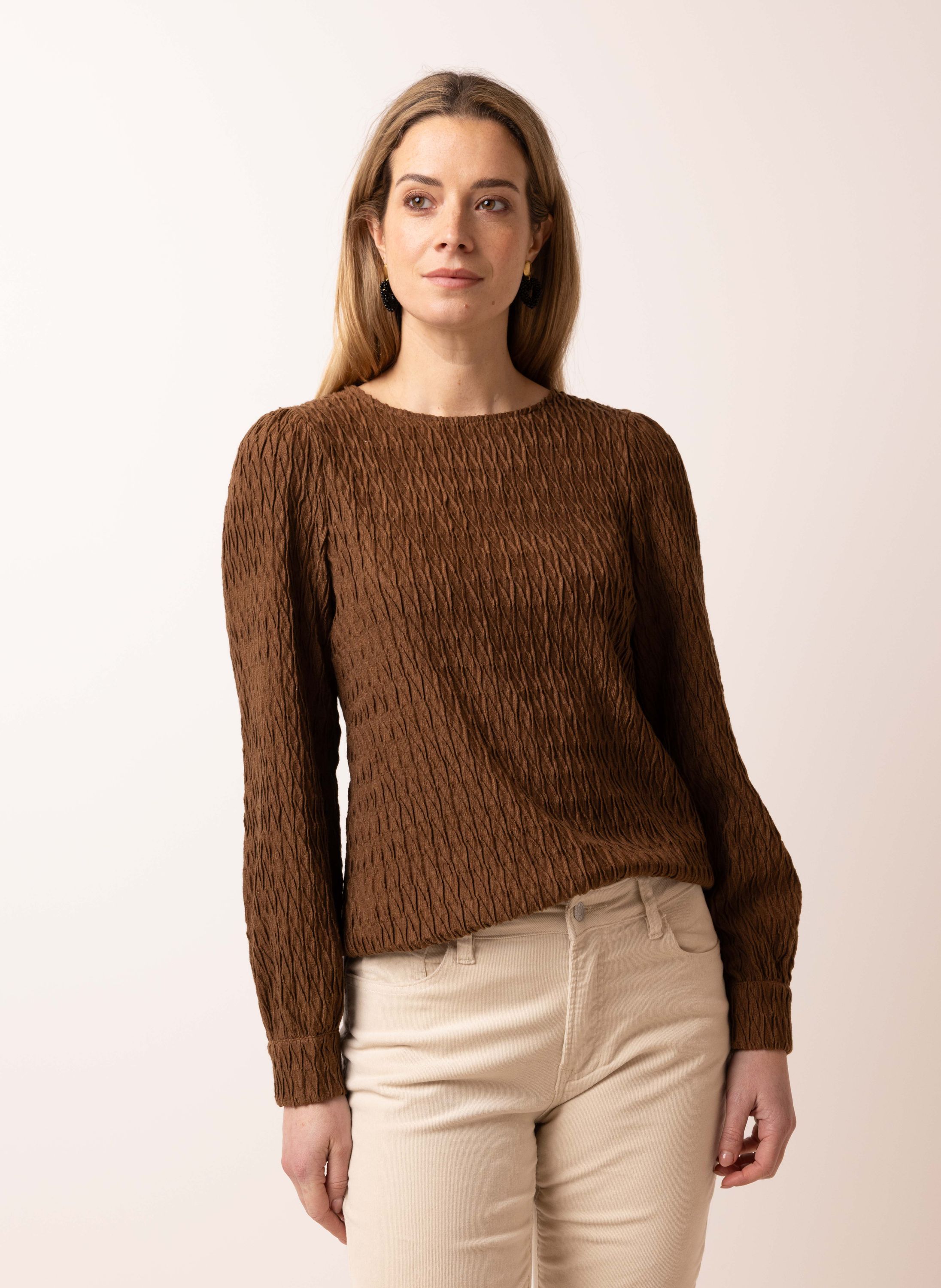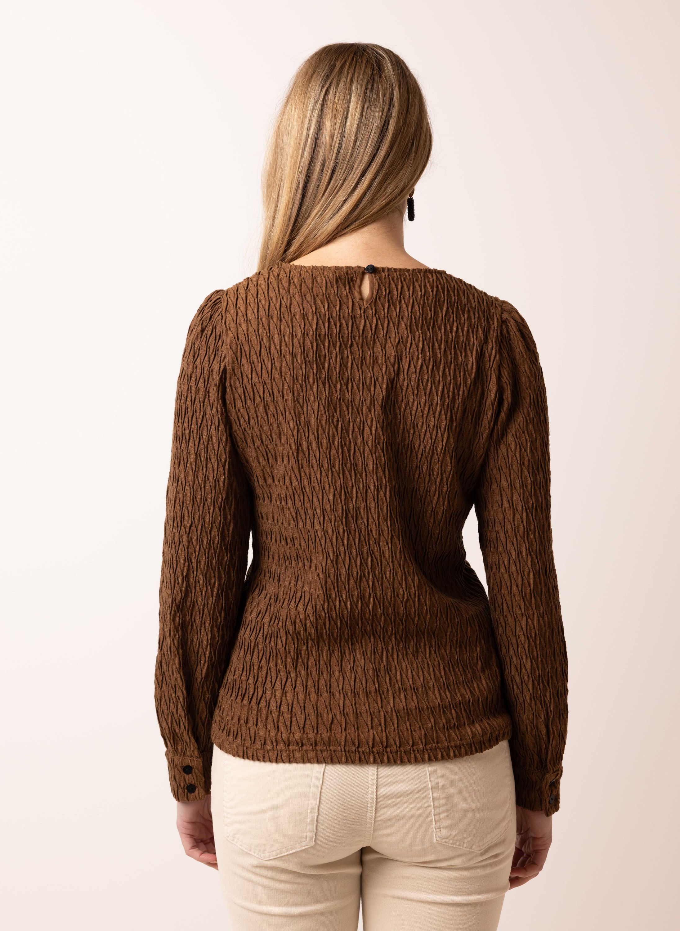 Dit shirt met ronde hals heeft lange mouwen en een knoopsluiting in de nek.