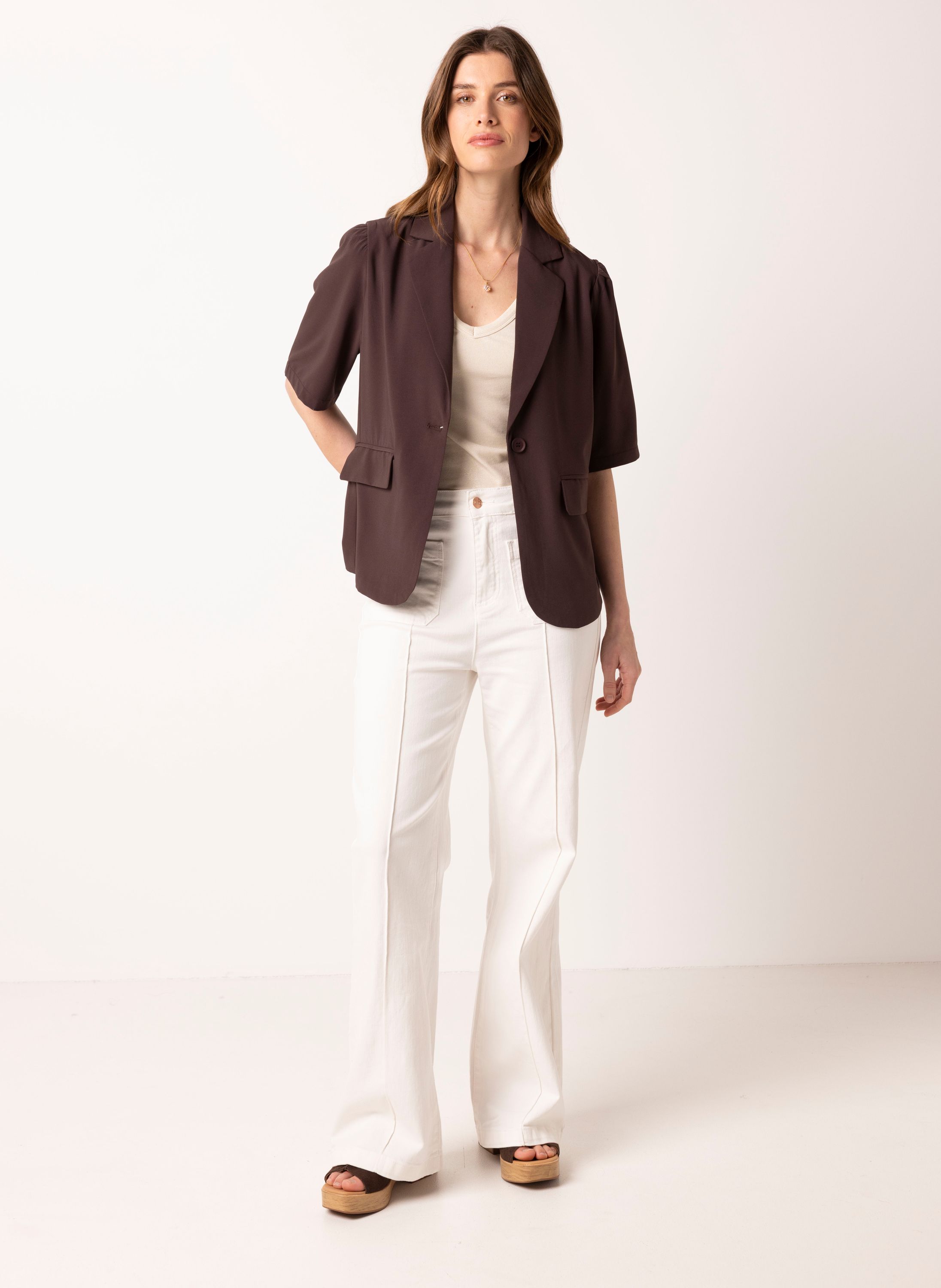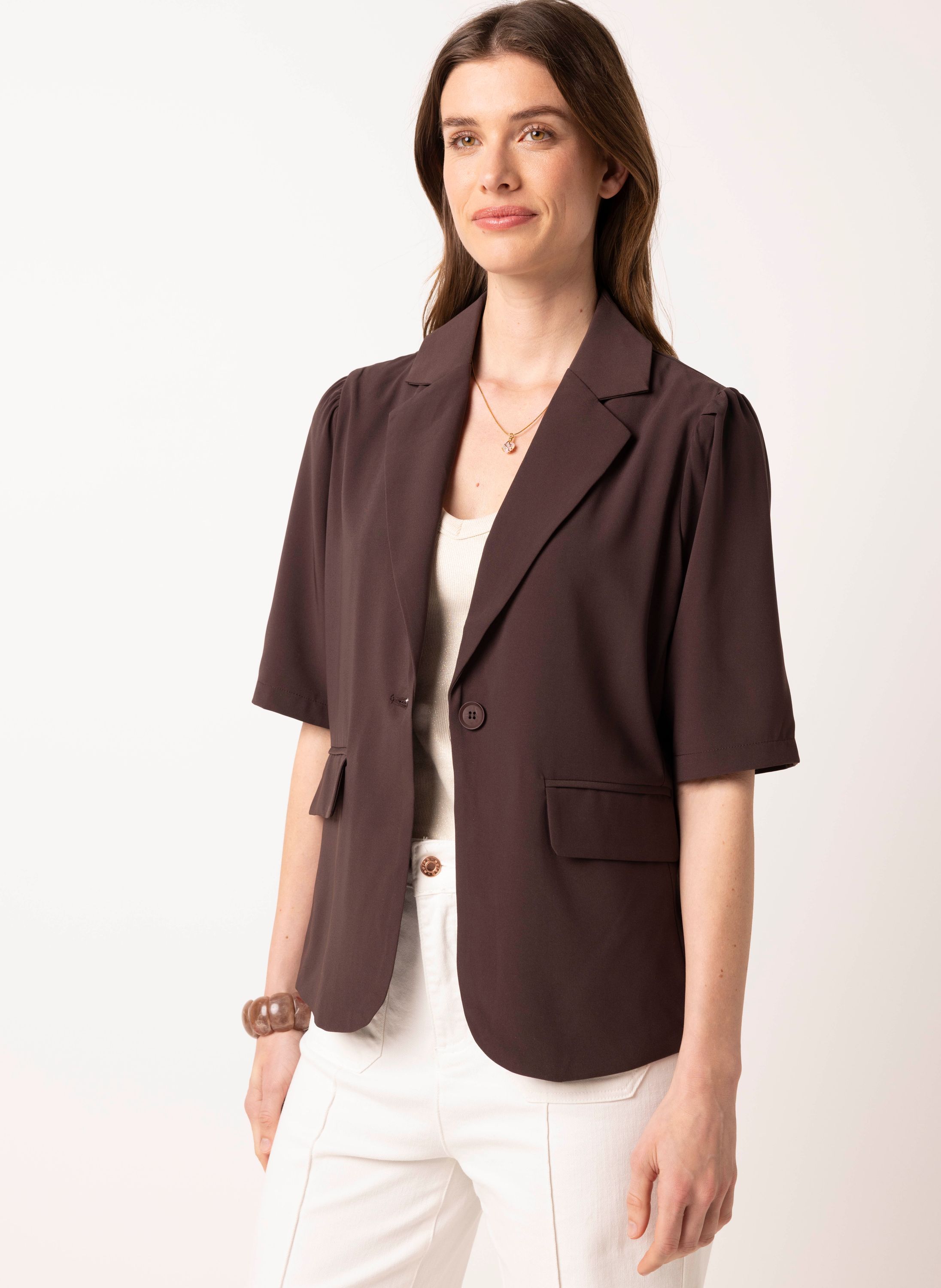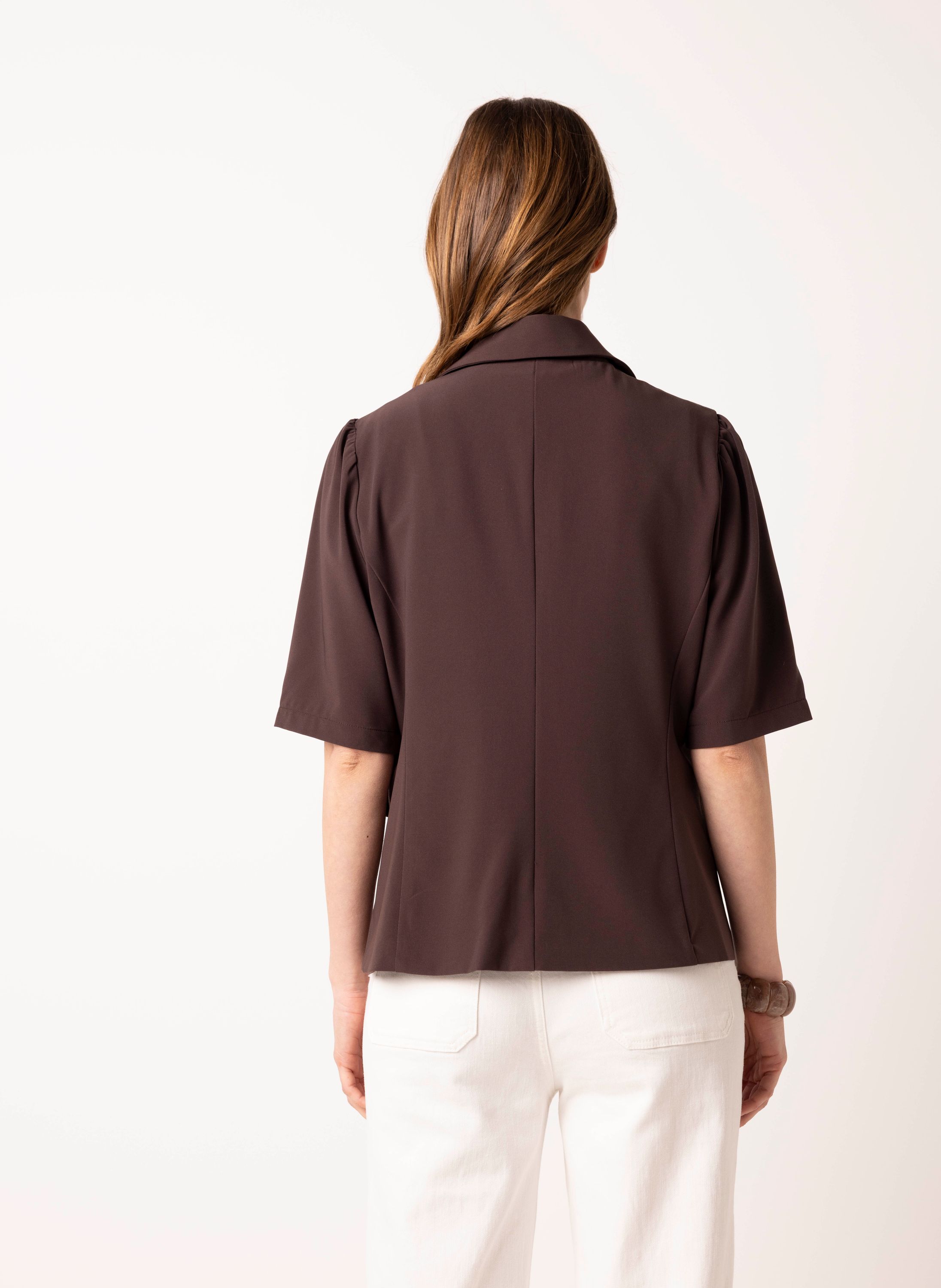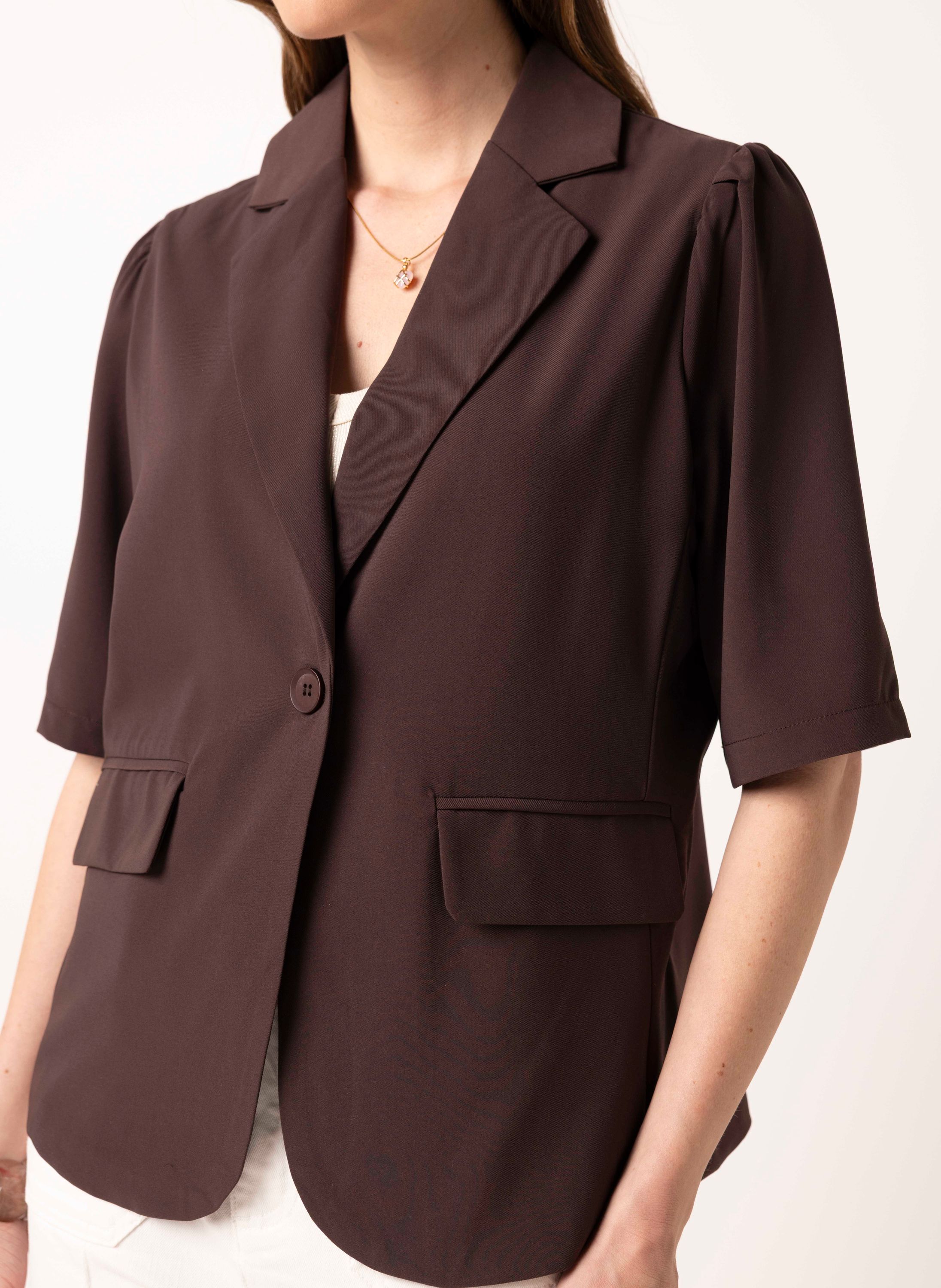 Bruine blazer met korte pofmouwen