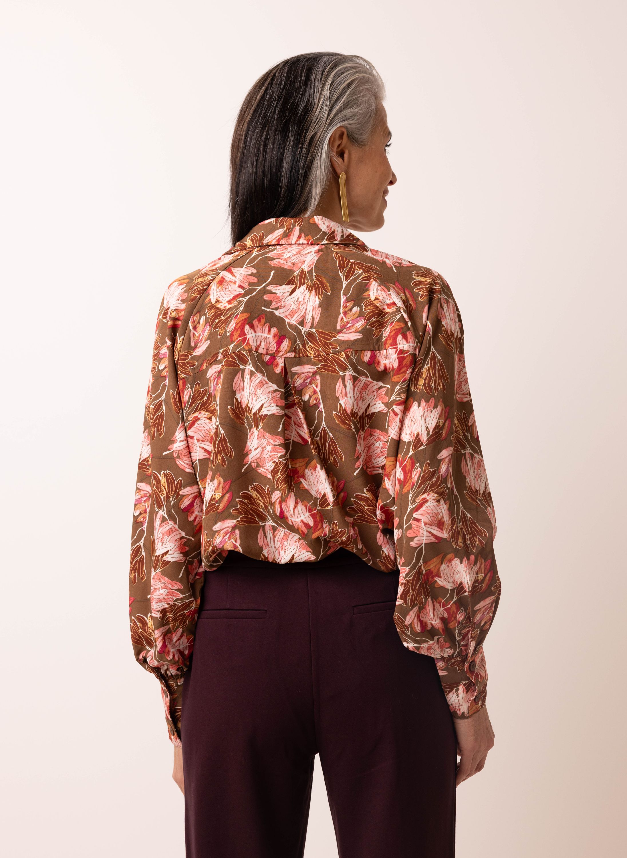 Deze blouse met klassieke kraag, knoopsluiting, lange mouwen, plooirand aan de achterzijde en borstzak is een stijlvolle toevoeging aan je kledingkast. Dit item is exclusief verkrijgbaar in geselecteerde winkels en online. Controleer de winkelvoorraad om de beschikbaarheid in een winkel bij jou in de buurt te bekijken.
