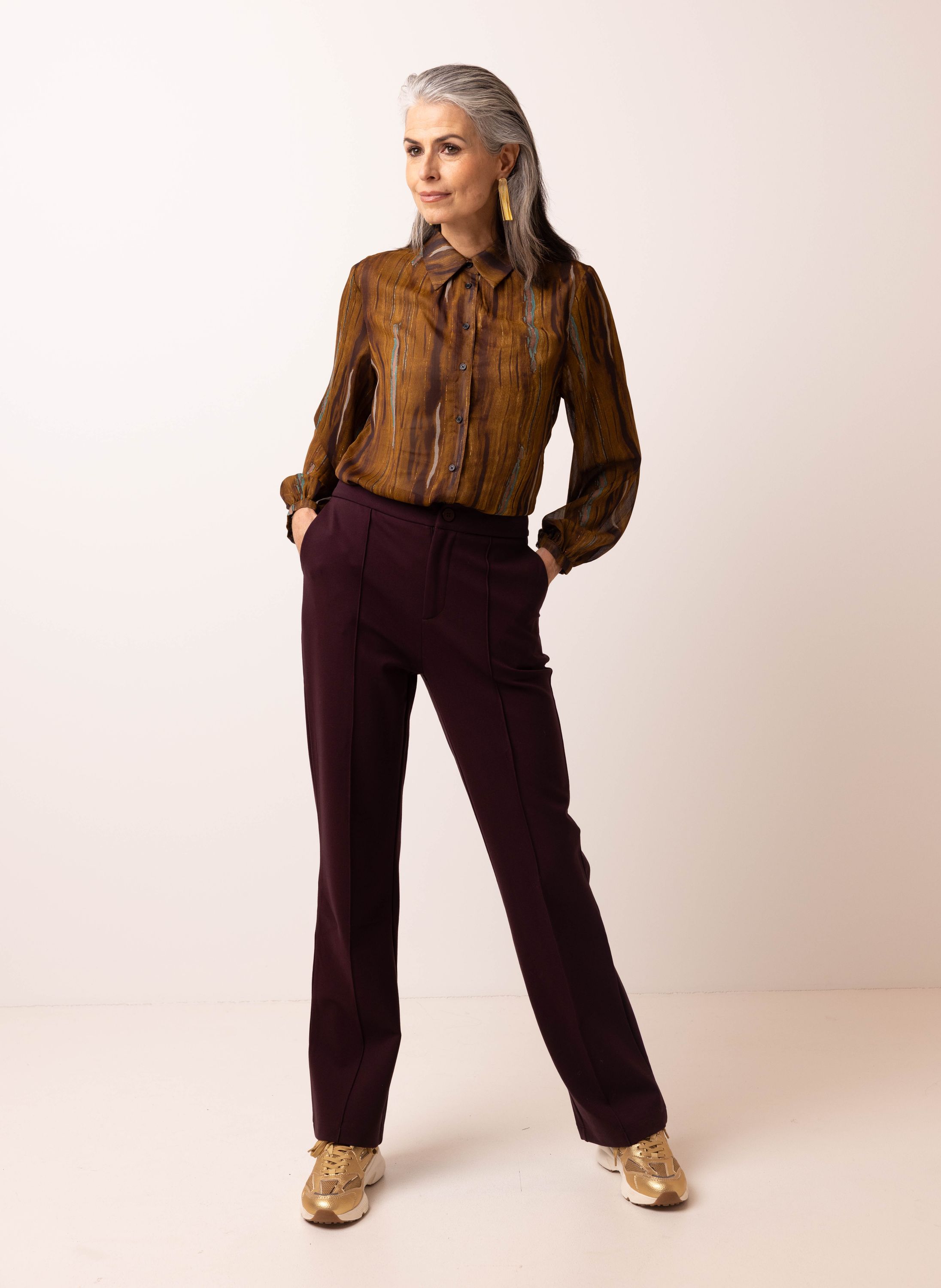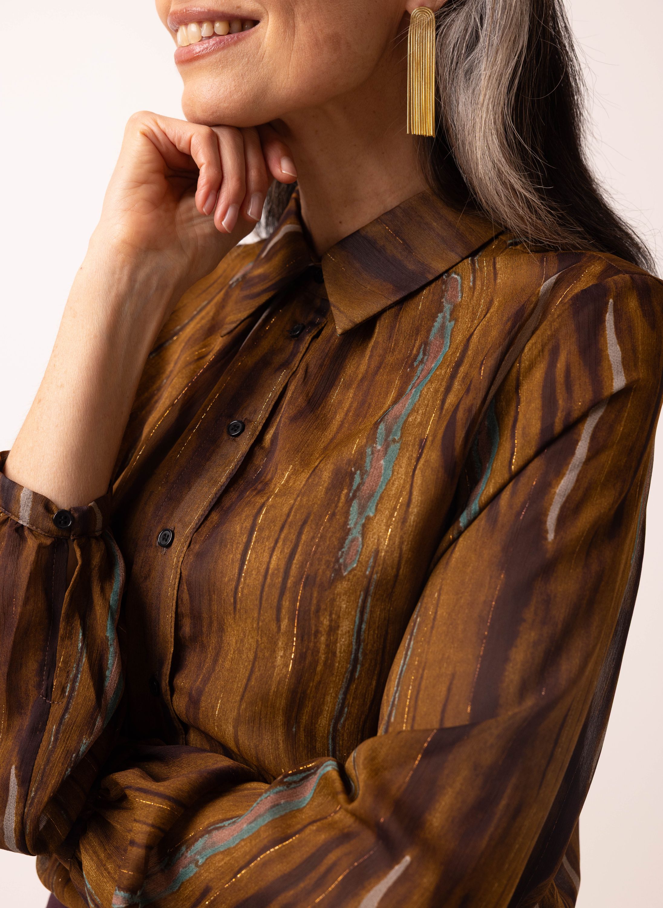 Deze blouse met klassieke kraag, knoopsluiting en lange mouwen is voorzien van subtiel goudkleurig lurexdraad voor een stijlvolle glans. Dit item is exclusief verkrijgbaar in geselecteerde winkels en online. Controleer de winkelvoorraad om de beschikbaarheid in een winkel bij jou in de buurt te bekijken.