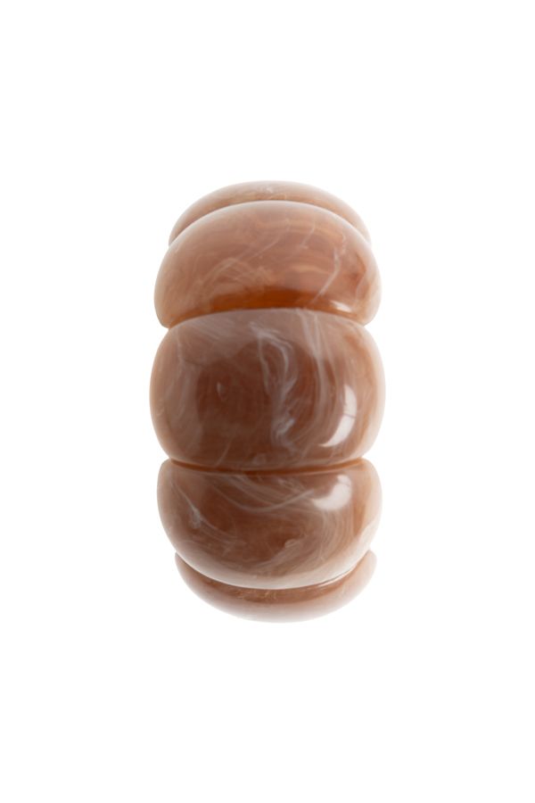 Deze brede armband is gemaakt van grote, gladde kralen met een subtiele glans. Het elastische ontwerp zorgt voor een comfortabele pasvorm en maakt de armband makkelijk om te dragen.