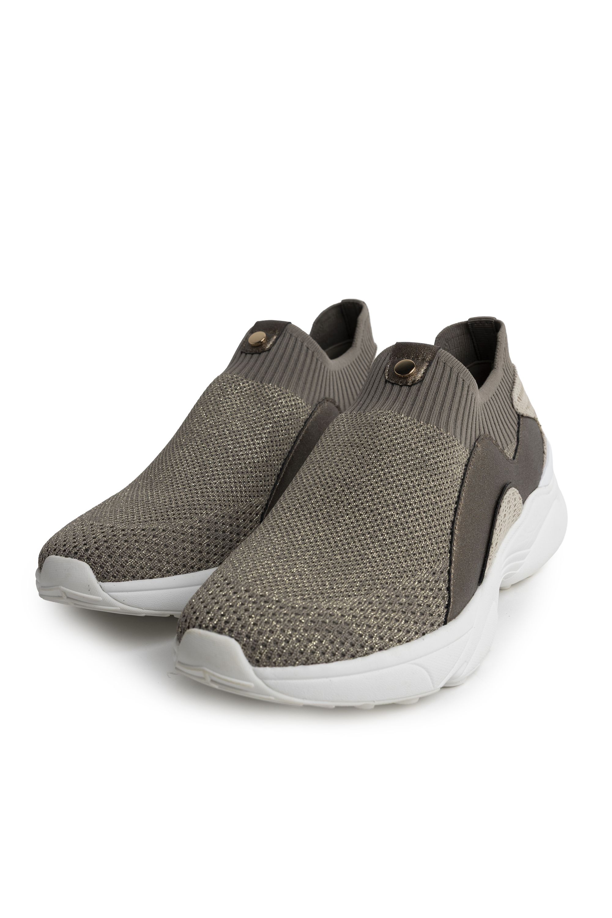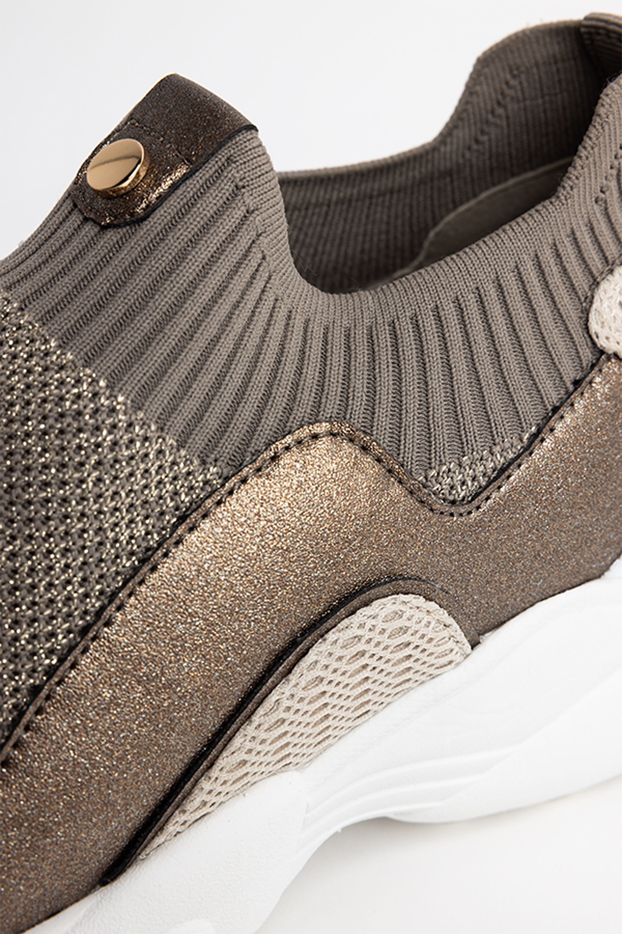 Bruine instapsneaker met contrasterende details
