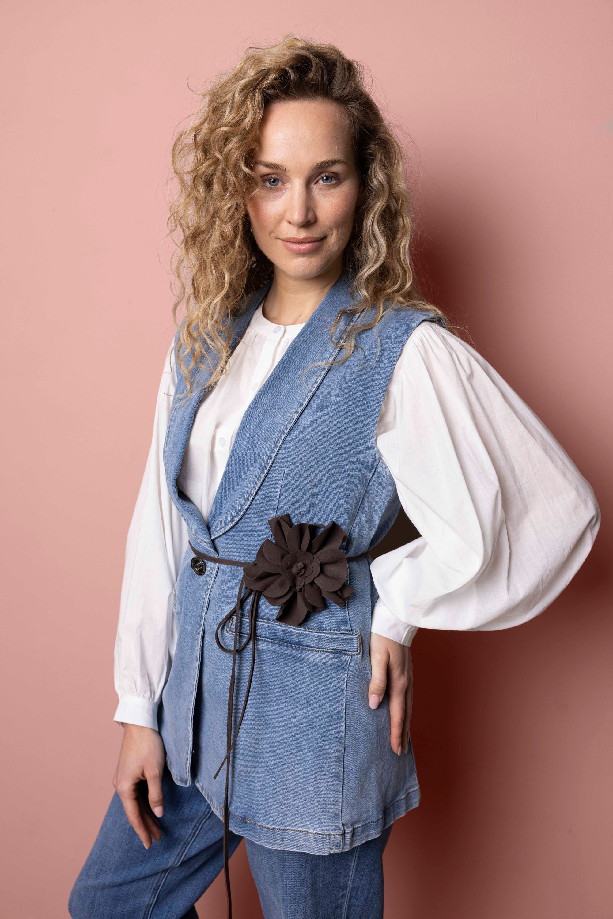 Deze suèdelook riem met bloemvormig detail kan gestrikt worden en maakt je outfit compleet. Afmeting: S/M: 115 cm, L/Xl: 130 cm.